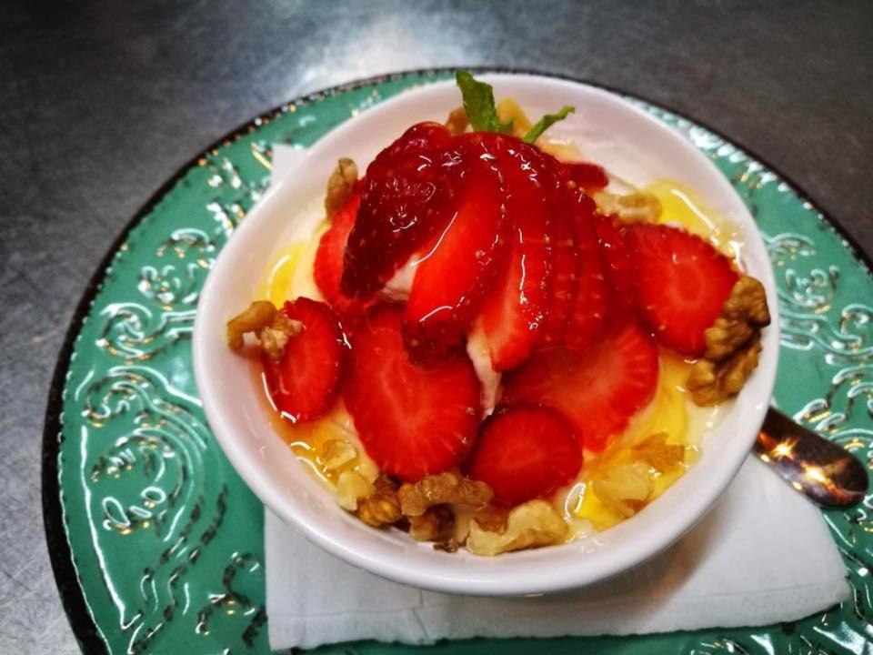 Het eten was prima en zeer overvloedig. Met elke dag 4 dagspecialiteiten naast de reuliere kaart. De glazen wijn hadden een kop erop zitten, zo vol zat glas. En geen idiote prijzen en altijd een toetje van het huis.