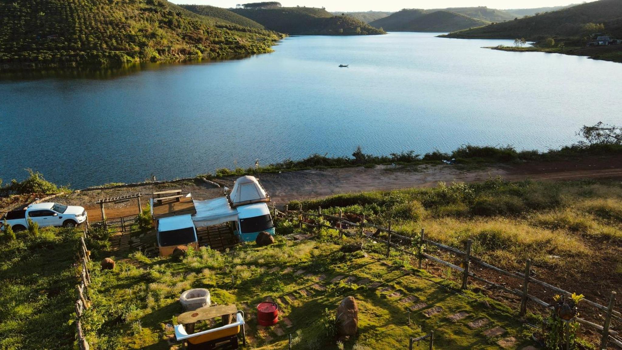 I stayed at the mobile home. Amazing place, very secluded and relaxing, in the middle of nature. I didn’t really look at the photos before booking because I was in a hurry and this was the only place available in the area, but I was very pleasantly surprised. The bed is super comfortable, especially in the morning if you open the backdoors for a lakeview and a refreshing cool breeze. It even had a small outside kitchen with a stovetop, a kettle, a sink, a bunch of dishes and some spices and coffee, also free noodles. I never cook while traveling but the vibe of this place was so great that I had to visit the small village nearby and buy some groceries to cook and eat on the roof. I was supposed to stay only for the night since I was in a hurry but I couldn’t just leave in the morning, had to stay one more night haha
