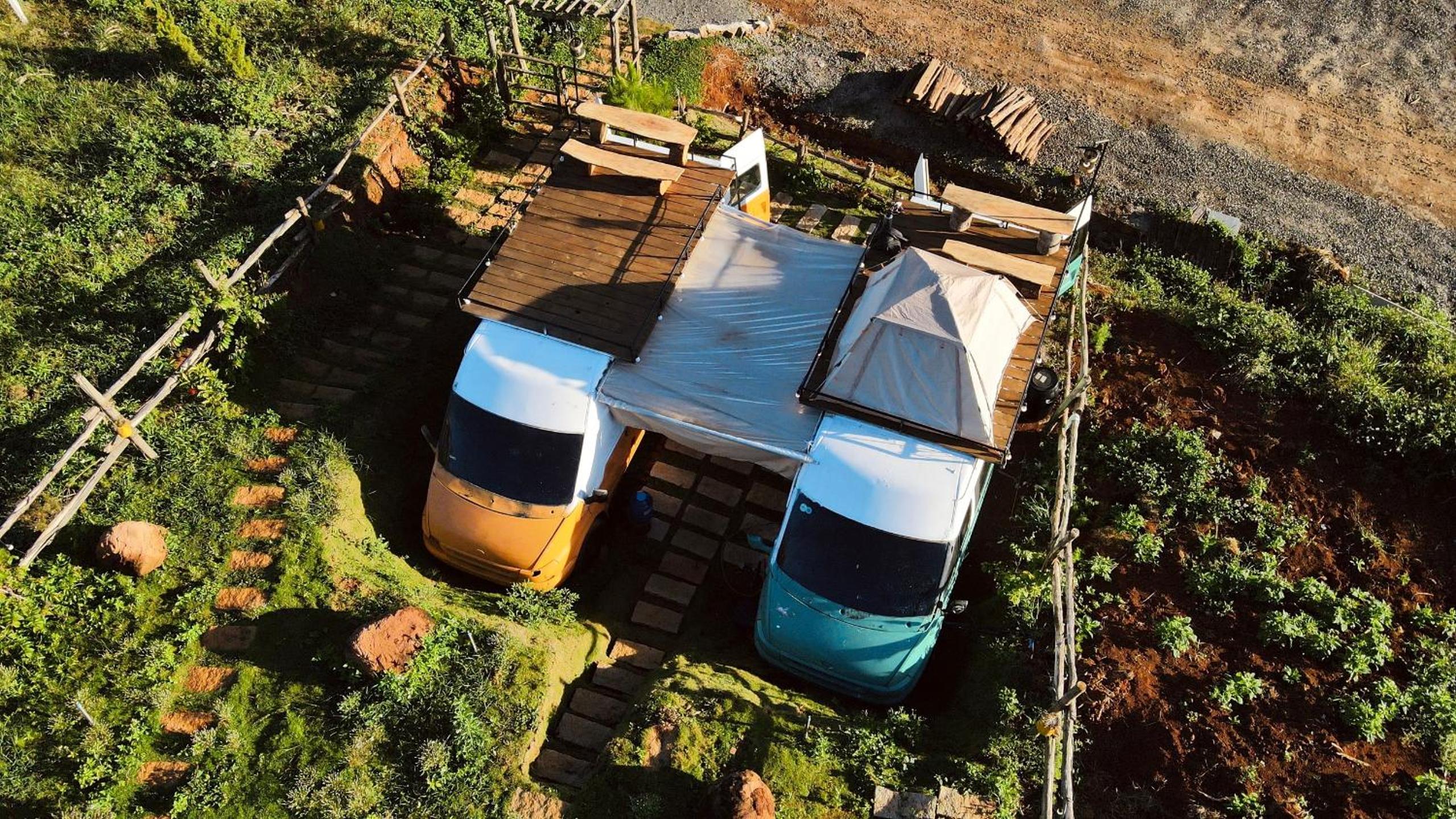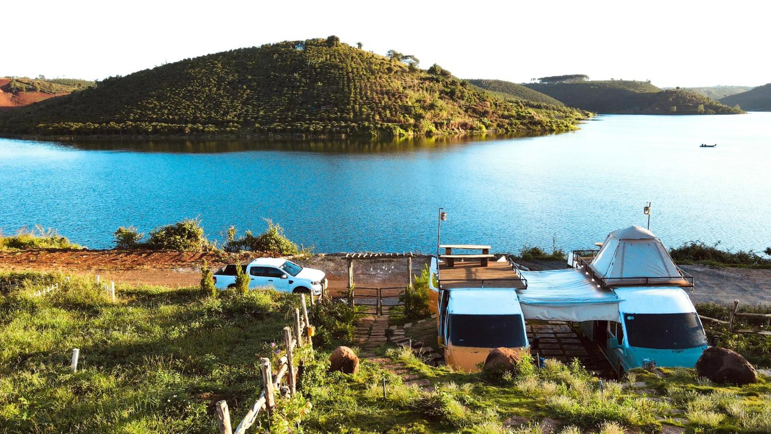 Awesome view. Nice camping car, felt pretty comfy to me. It has toilet and even does stereo system (connection via Bluetooth dongle). Outside has shared kitchen (no stove though) and on-the-roof-balcony-with-the-view.