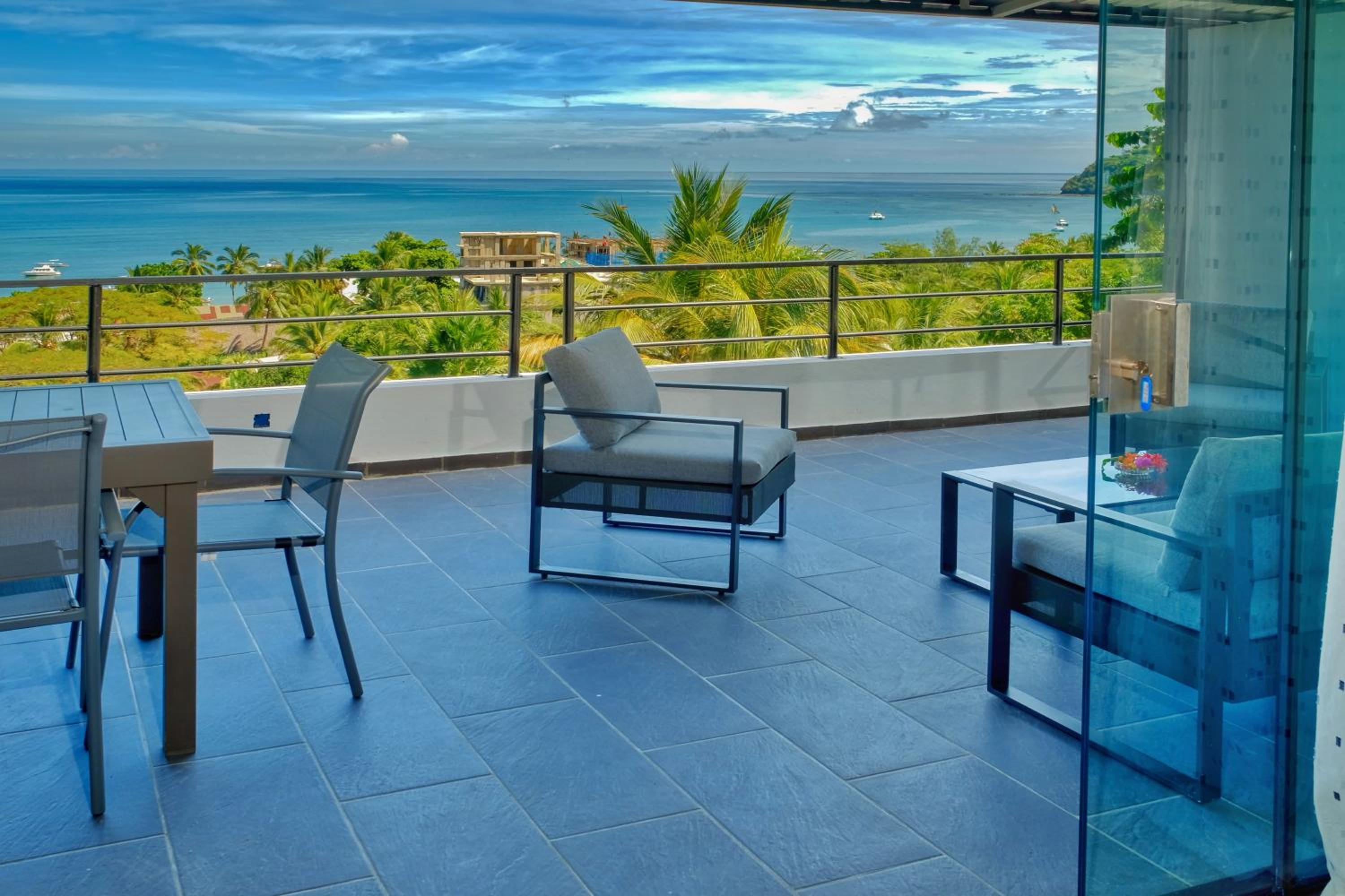 Indulge in stunning ocean views from the large verandas while enjoying the convenience of a full kitchen equipped with modern appliances. The private bathrooms offer a relaxing bath or shower experience with picturesque sea and pool views.