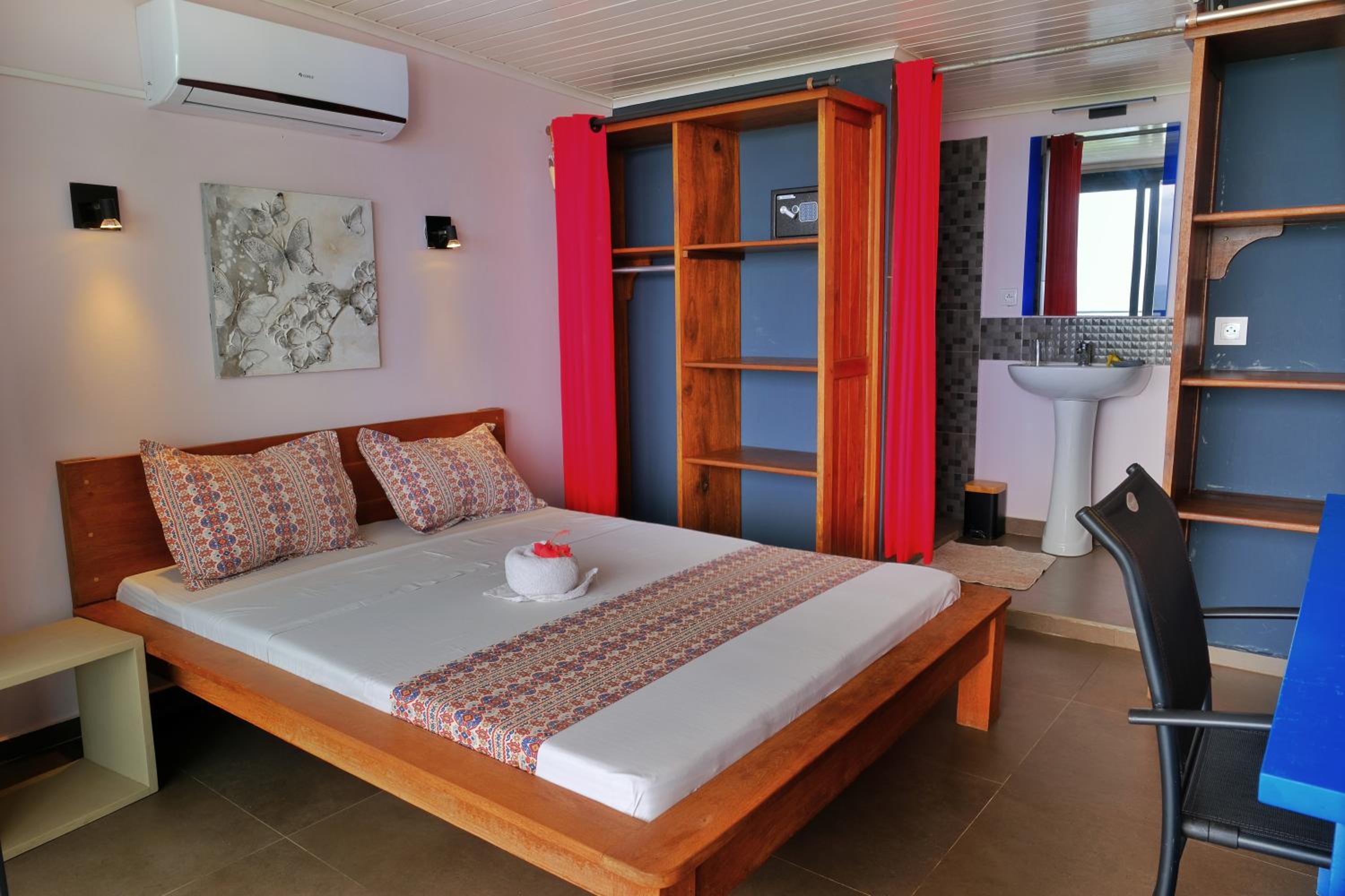Oh, this was a very bad experience. Firstly, when we arrived, the rooms which were booked were not available anymore so we were given other rooms. In the room where I stayed were cockroaches in the bed so I had to stay in the friend’s room. We booked via hotel the excursion to Nosy Iranja, but in the end we did not get the service which was paid for and included in description, for example umbrellas. The hotel did not give back all the money for the not received services. Also it is actually a bordel, so definitely not for the family stay.