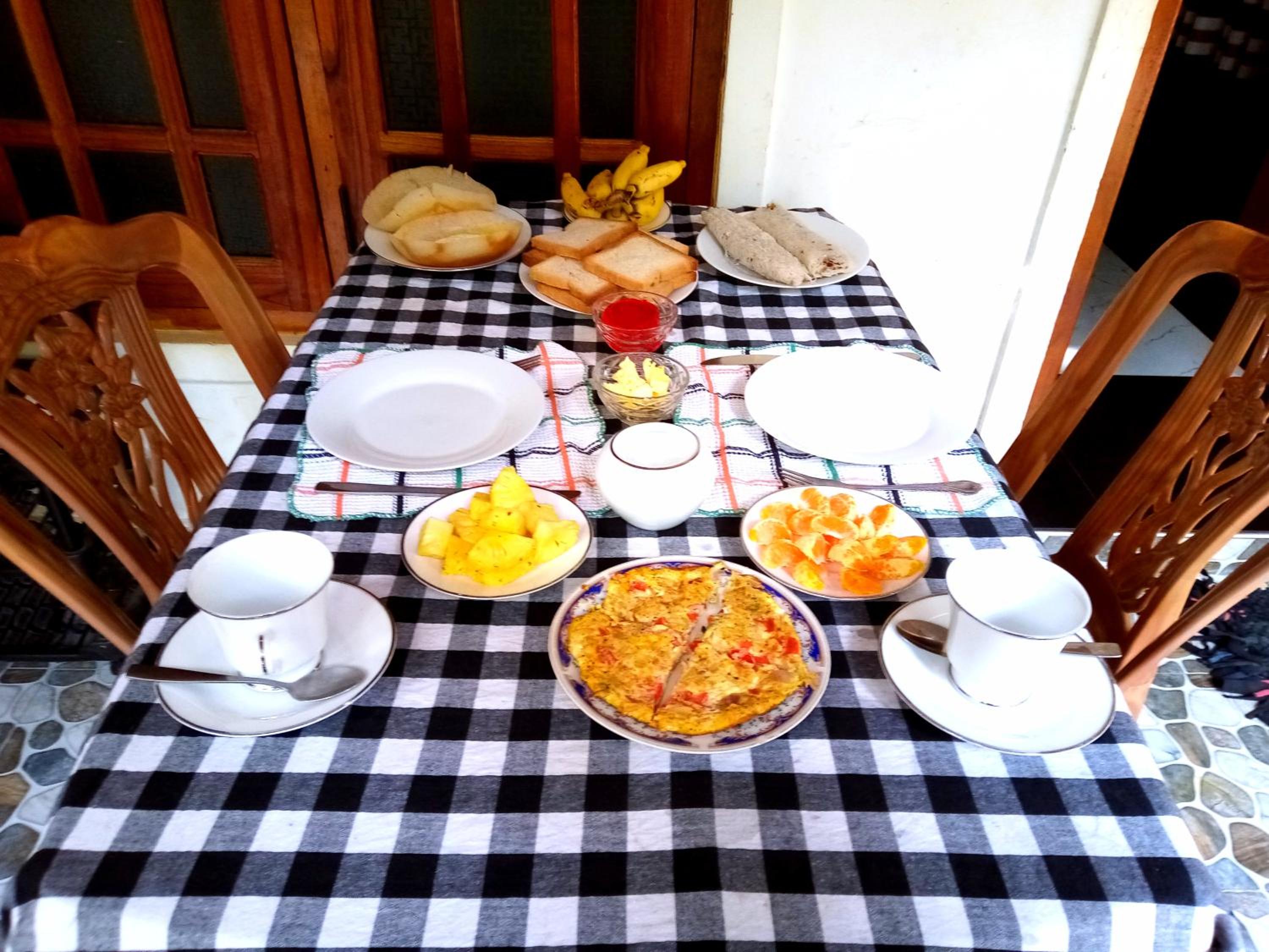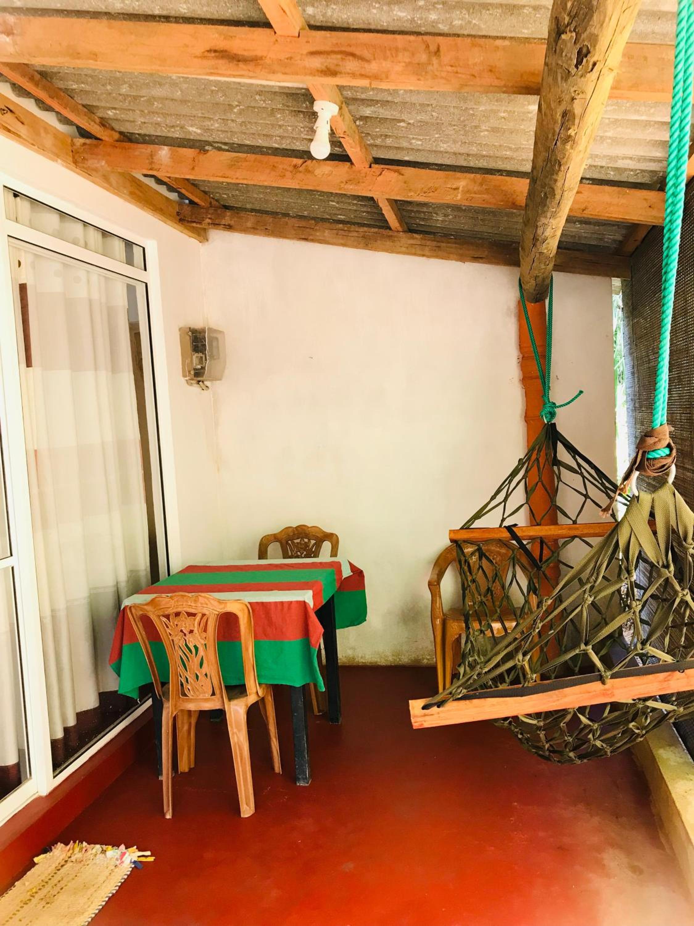 Délicieux petit déjeuner. Lit confortable et petite terrasse devant avec un hamac. Chambre loin de l'agitation de la rue principale d'Ella mais à distance à pieds pratique des principaux endroits à visiter.