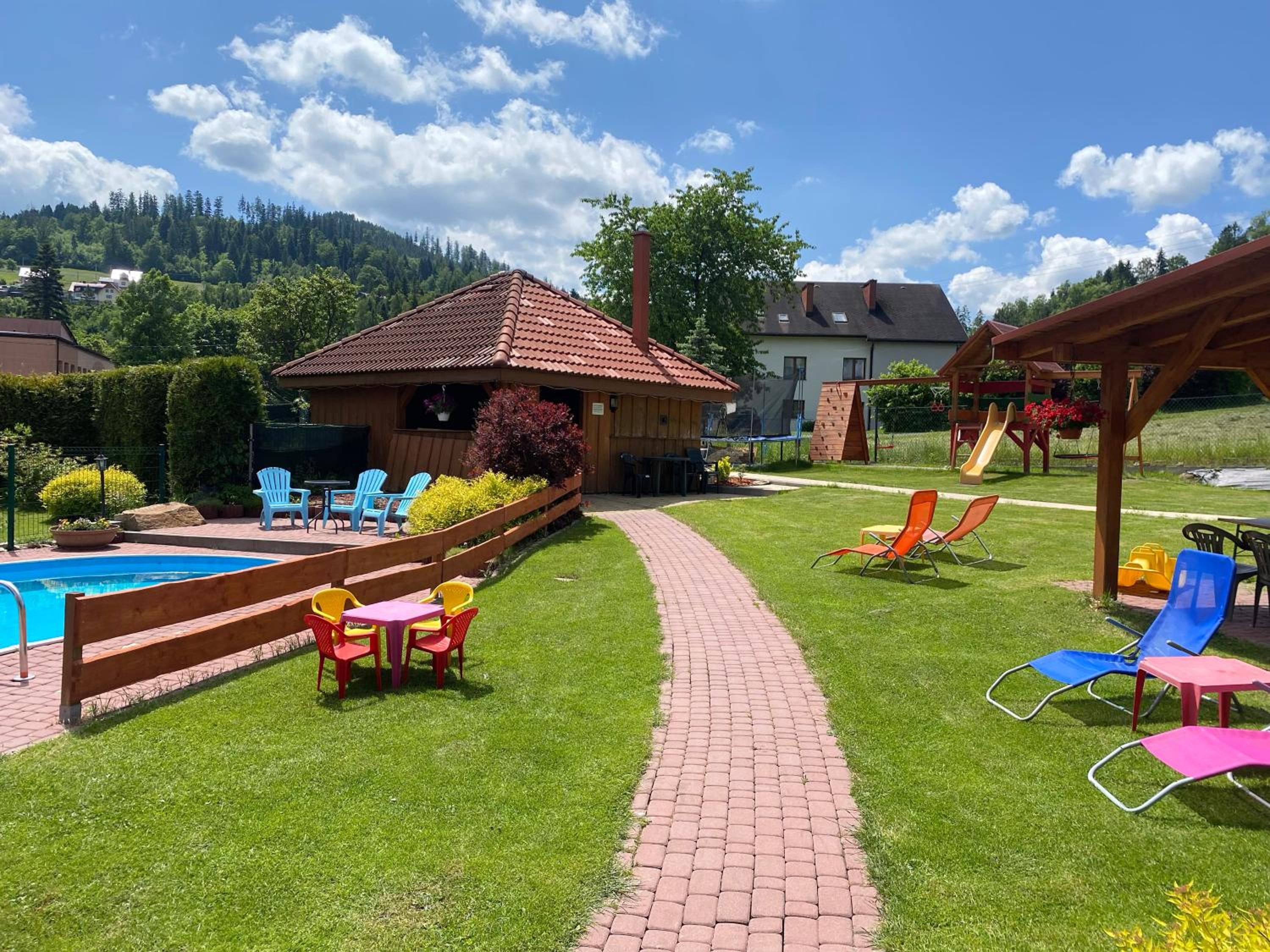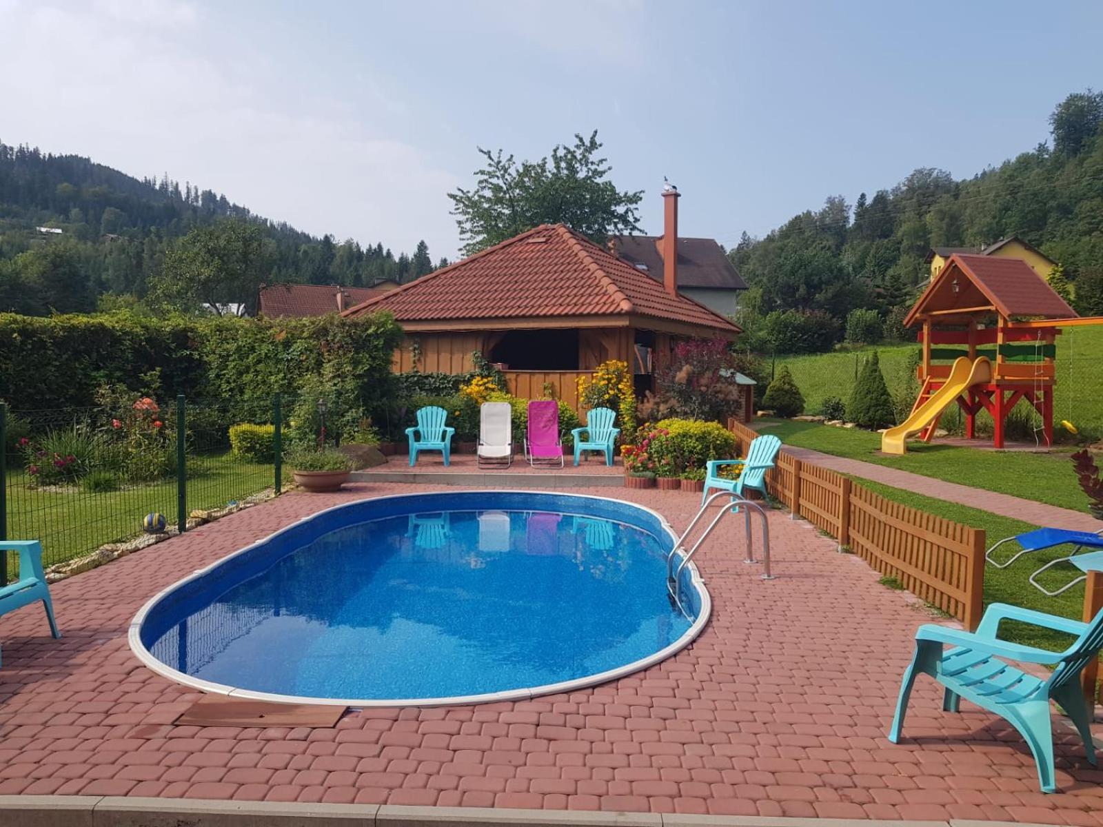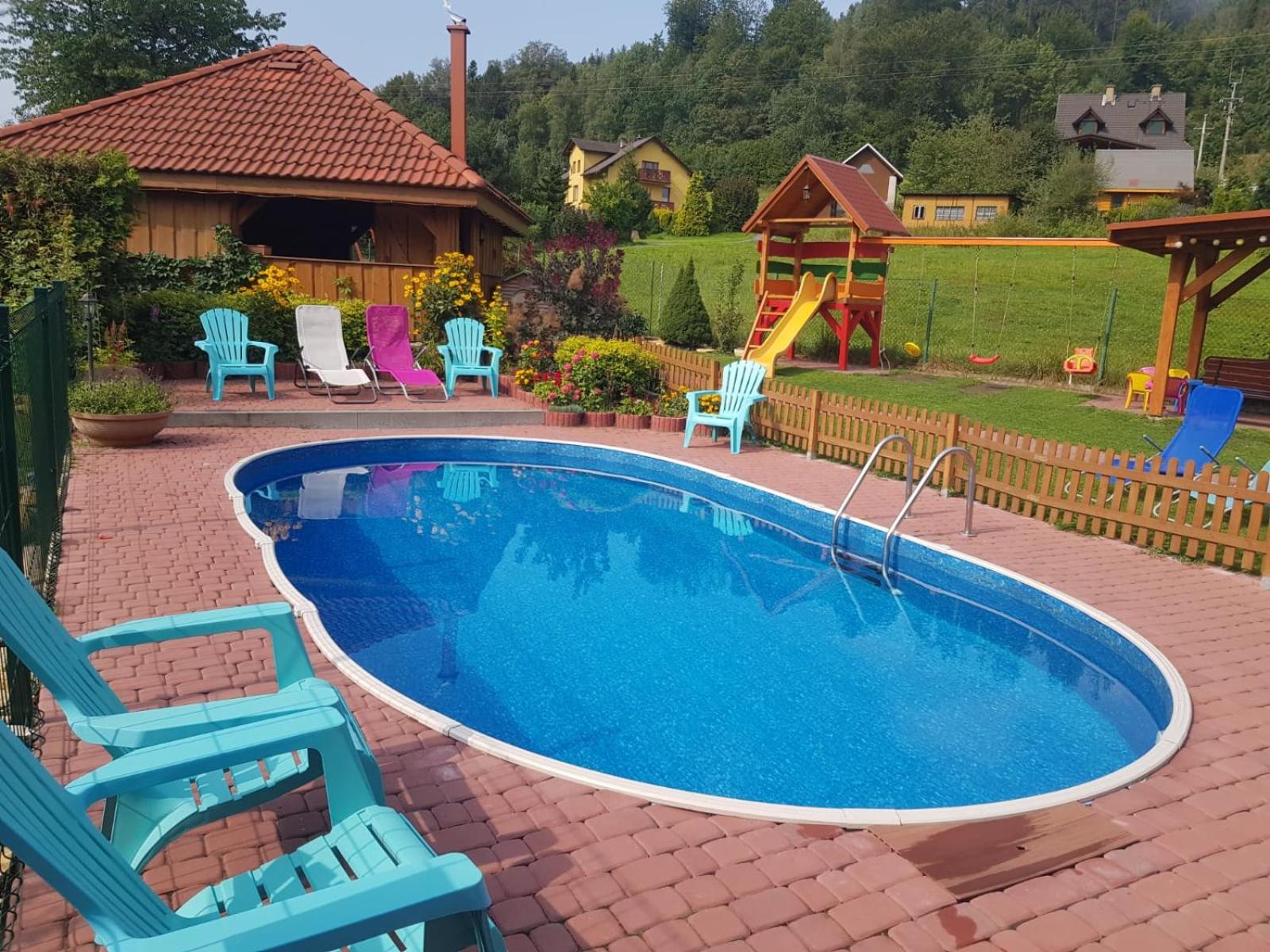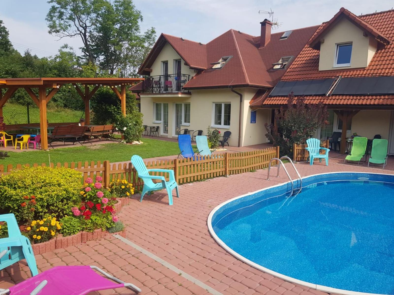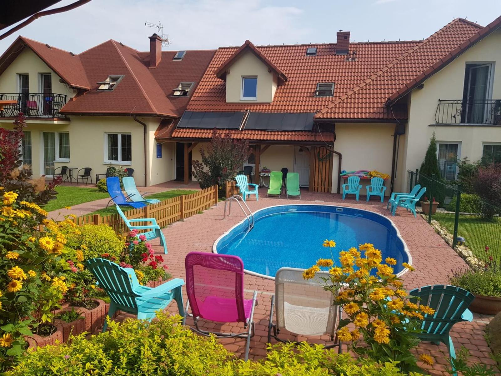 Czyste i dobrze wyposażone pokoje i kuchnia. Basen, plac zabaw, leżaki, , miejsce do grilla