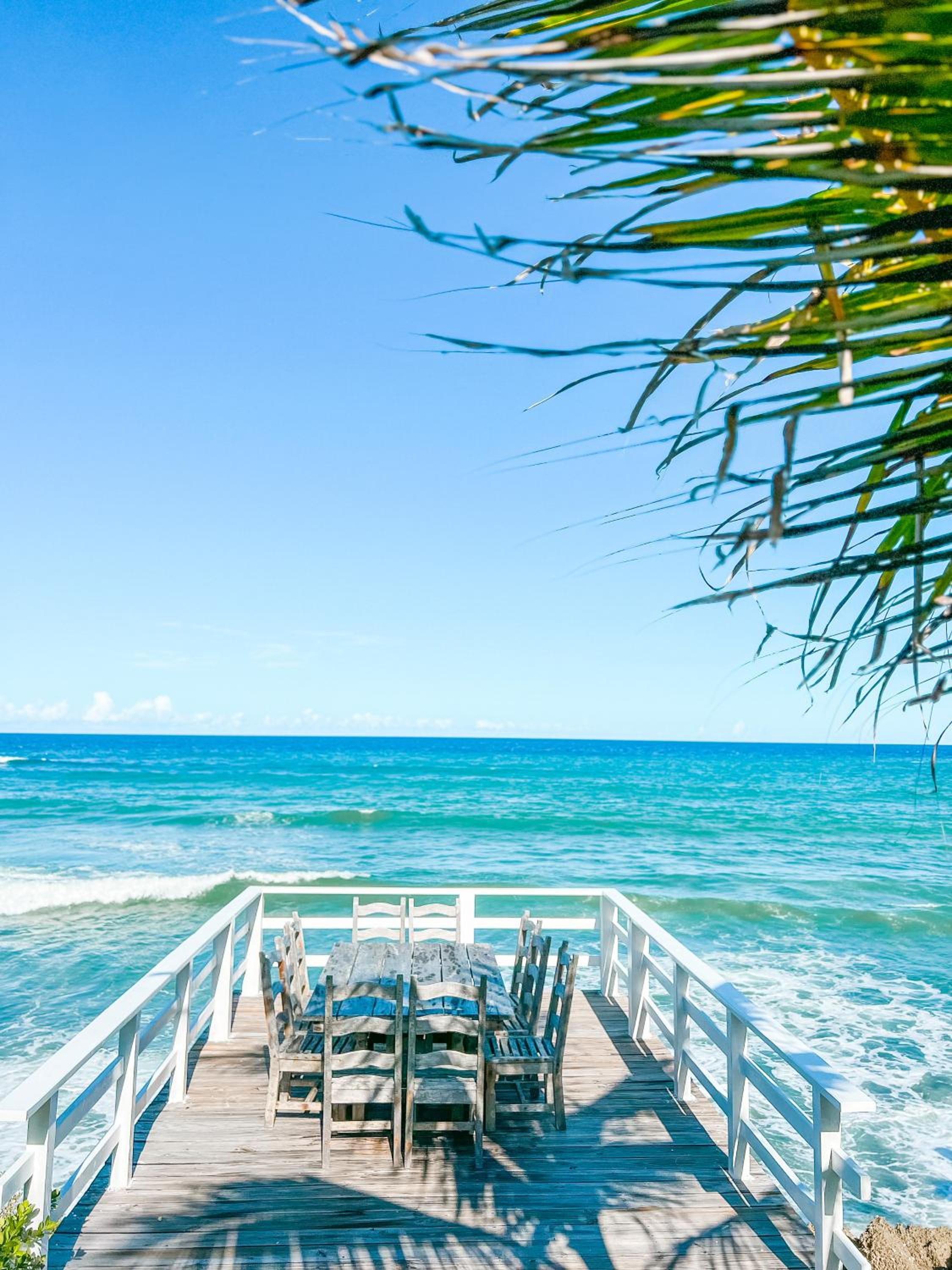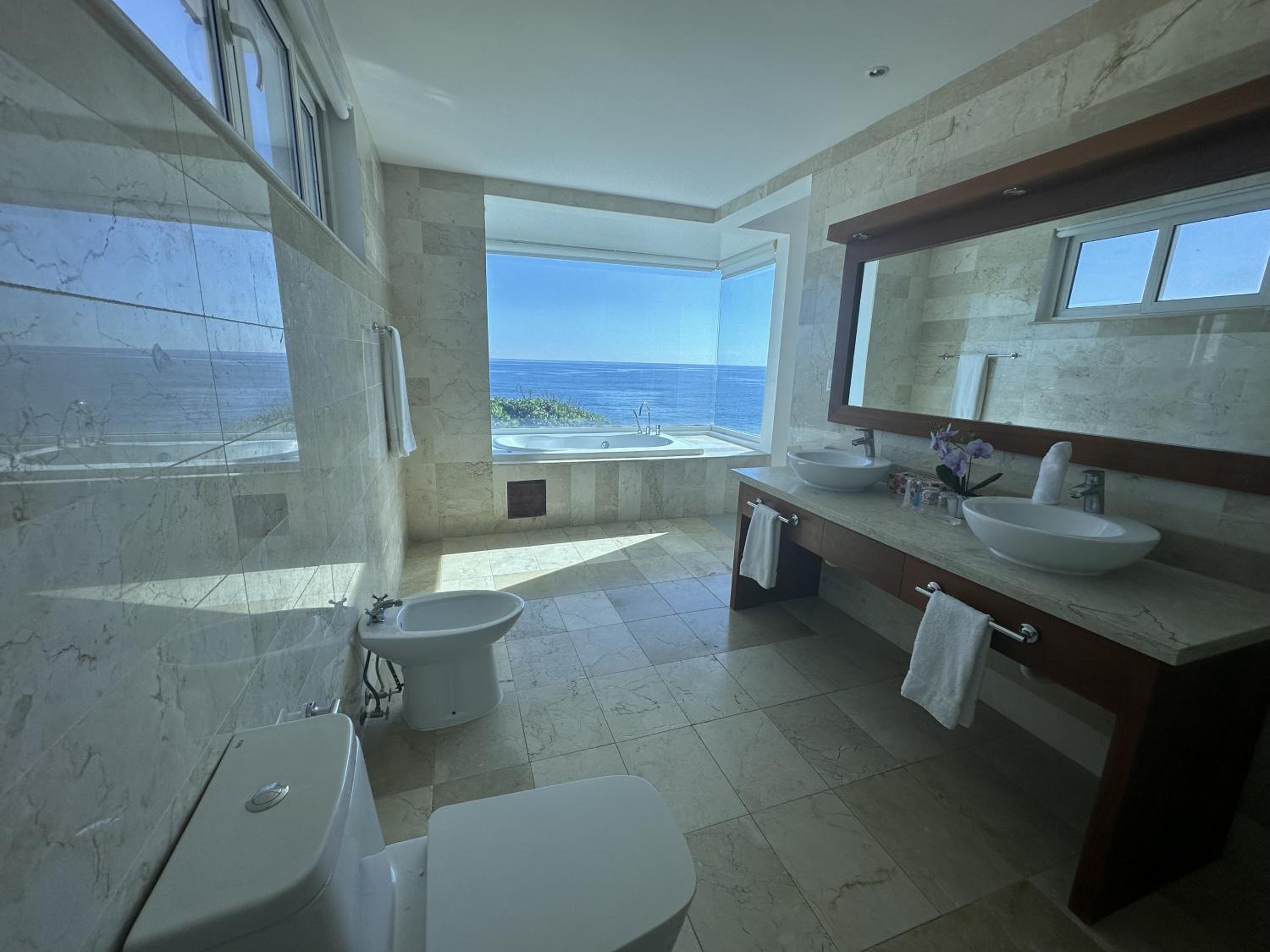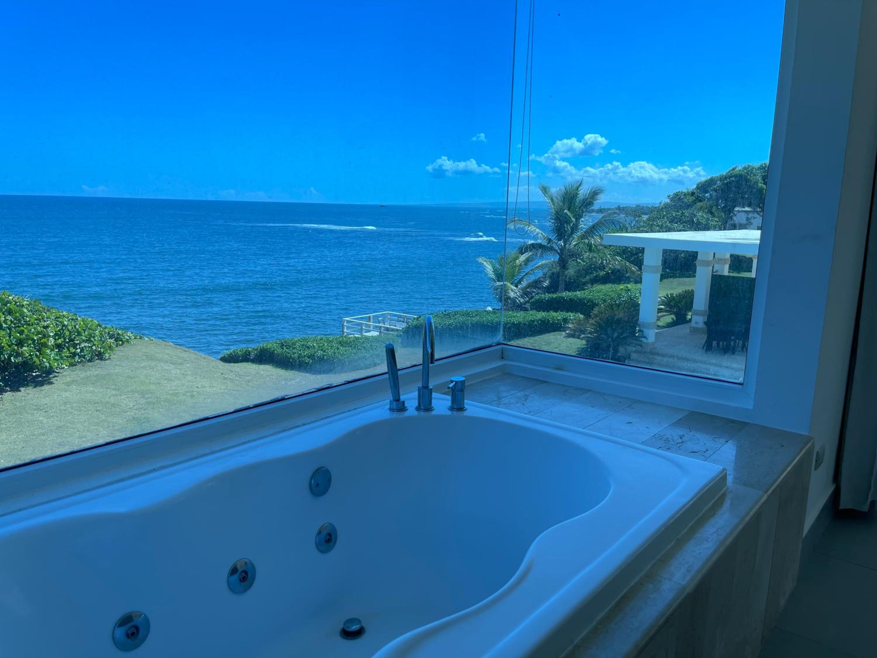This facility is oceanfront not beachfront. The close private beach is dirty with piles of seaweed and other debris washed up by the tide. The other beach to which you can walk is controlled by a large all inclusive chain so we couldn't use any facilities such as restrooms or restaurants. This is new management for this villa hotel and they are still working out kinks including how to communicate what services are available at what cost.