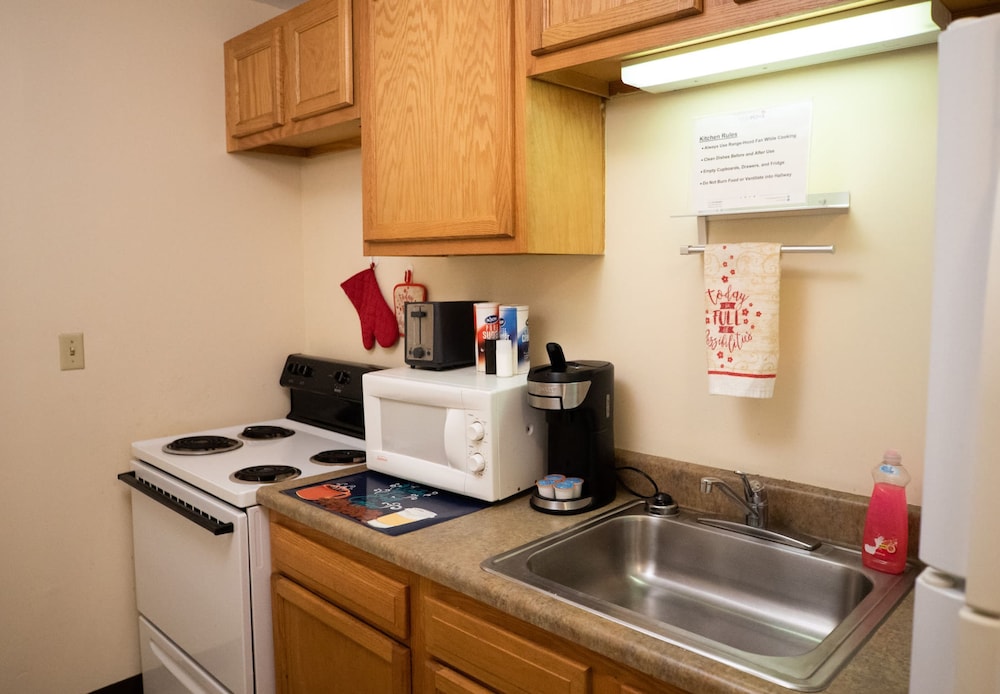 It has a kitchenette, but no cookware. If a property has a kitchenette, it should at least provide a frying pan. Or be more specific in the listing so i could bring my own. I wanted to save money by making my own breakfast but couldn't do it. They also advertise quiet hours after 10 pm. But on the floor i was staying in someone decided to play loud rap music with their door open all night. What is the poiint of havinf quiet hours if they allow this to happen?