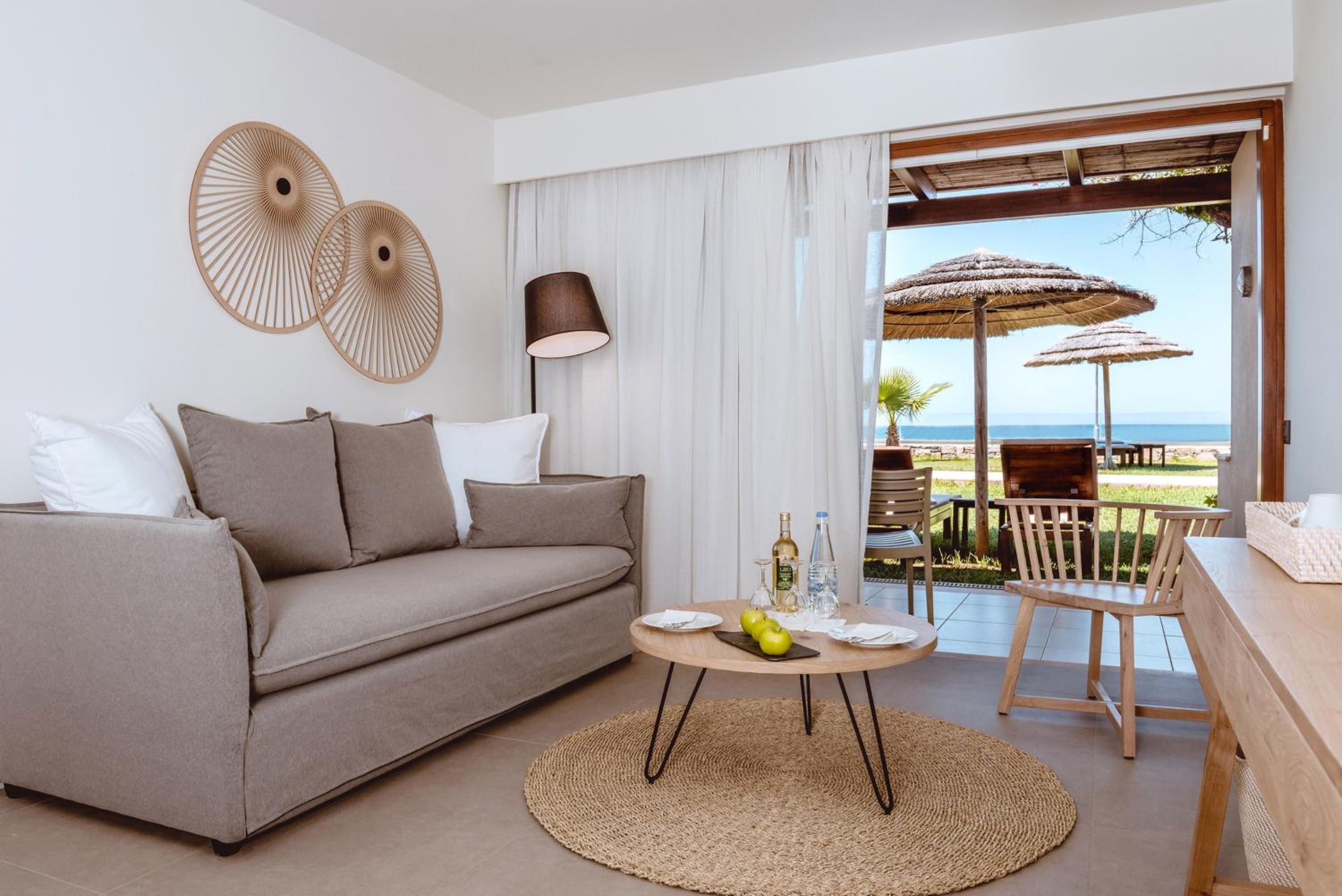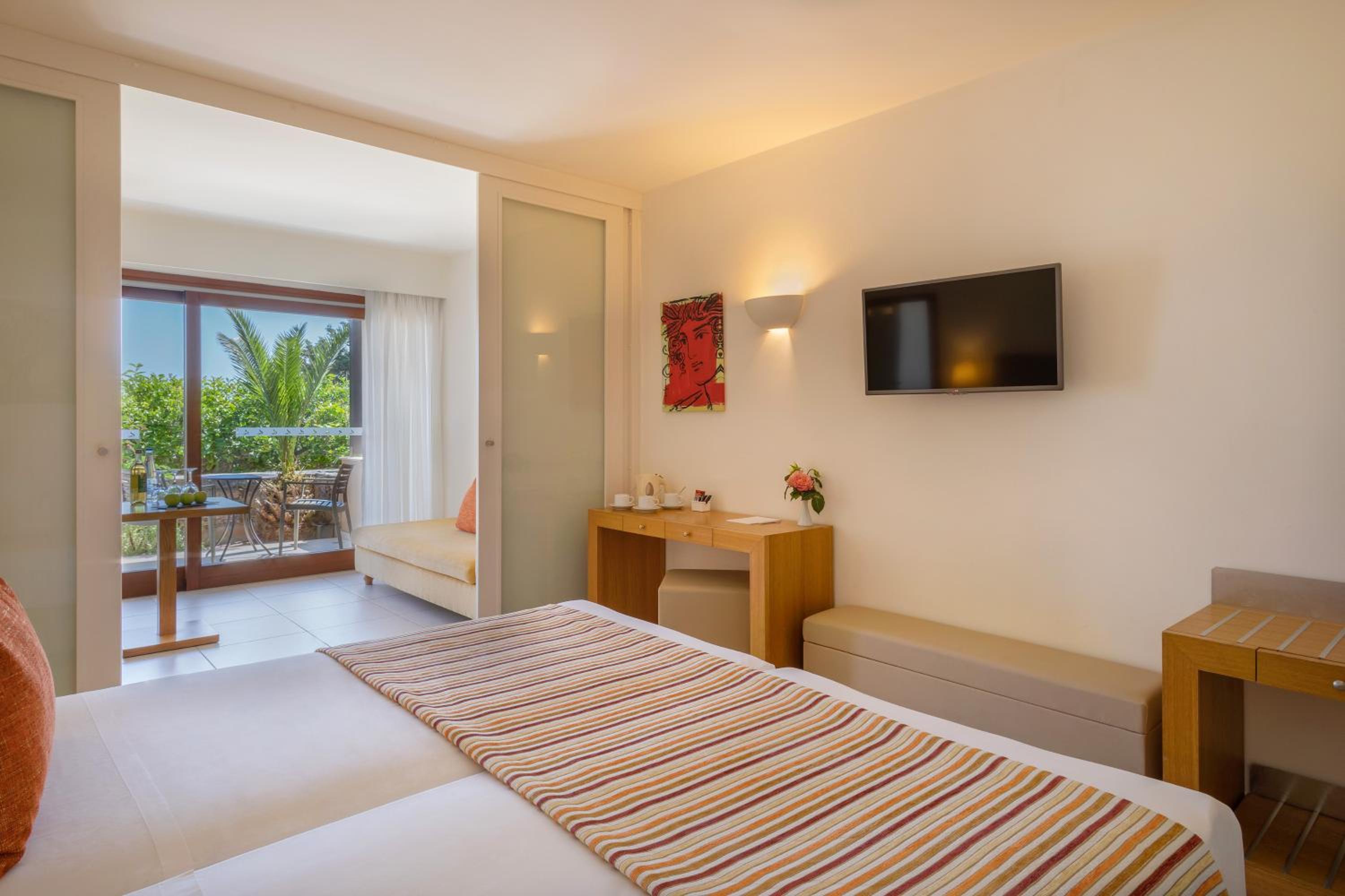 Indulge in the on-site spa's fitness room, massage services, sauna, and steam bath. For adventure-seekers, water sports are available at Stalis beach, just steps away from the resort.
