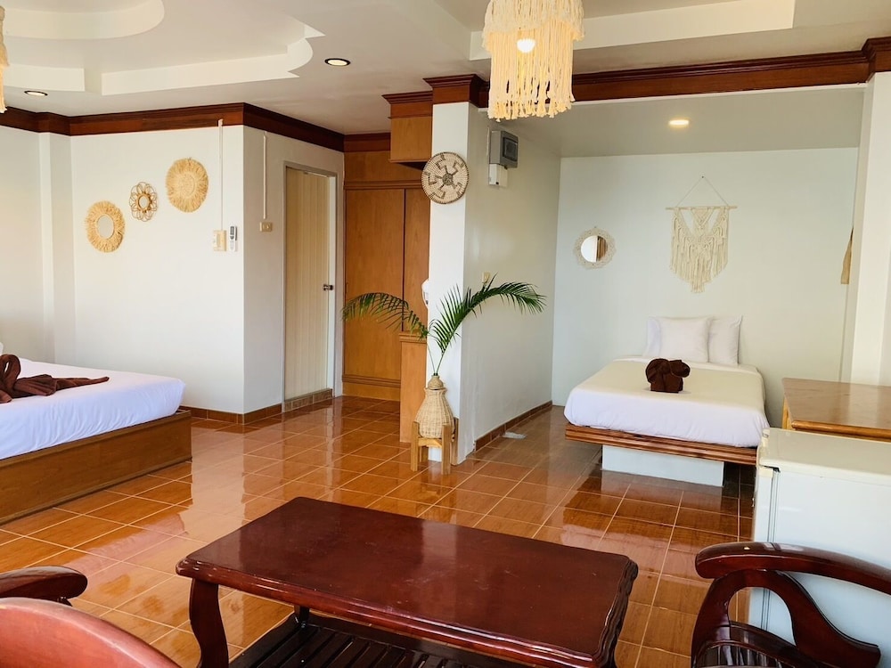 Am Anfang war noch alles okay , später waren immer verkühlt , Durchfall , Erbrechen . Wir hatten ein Dreibett Z. gebucht , da kannst du viel aufs Bett legen .( Z. Nr. 107 ) .Die Zimmer sind sehr hellhörig , vom Nachbarn mit Kind und vom 1.Stock hörst du auch alles . Das Zimmer war so ganz schön , freundliches Personal , aber halt ohne Balkon . 3 Wasser jeden Morgen und Kaffee , Gratisservice zum Pier .Seit 1.Sept. 23 giebt es nur noch Dosenbier , das meiste Problem ist aber der Plastik Müll..