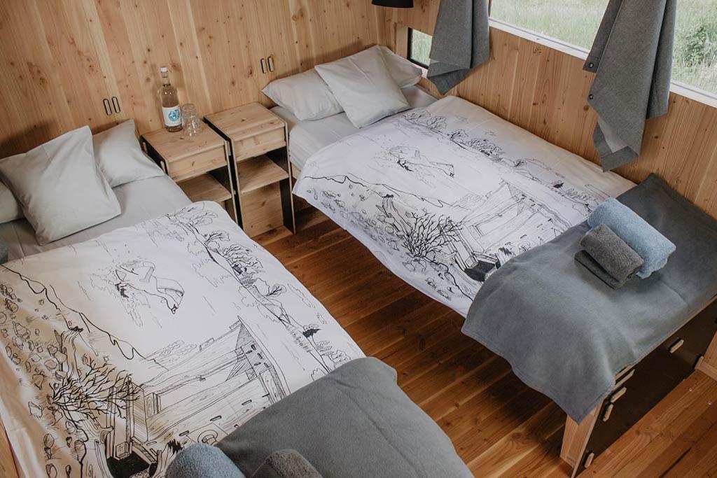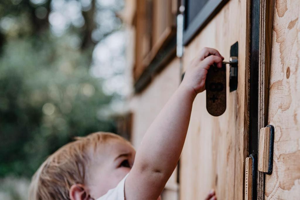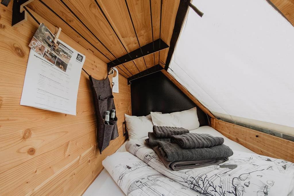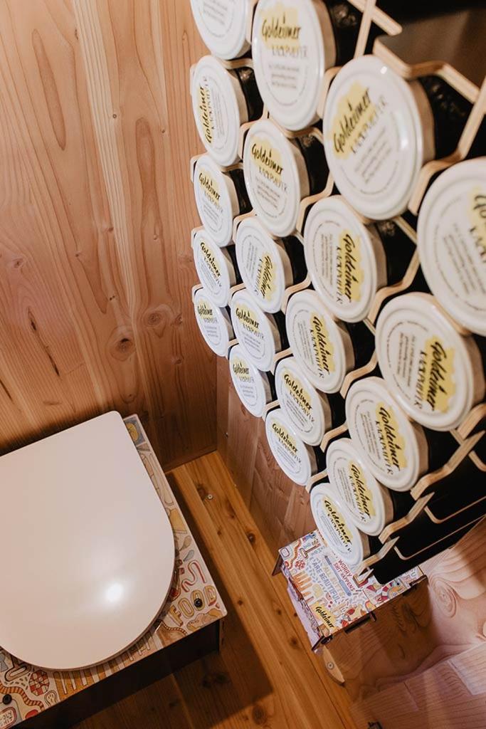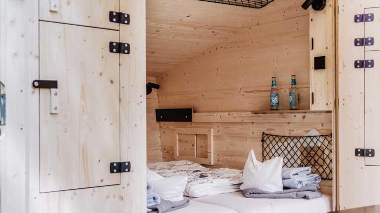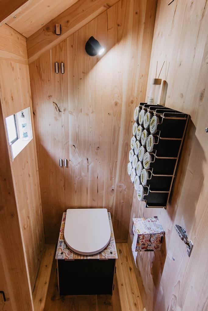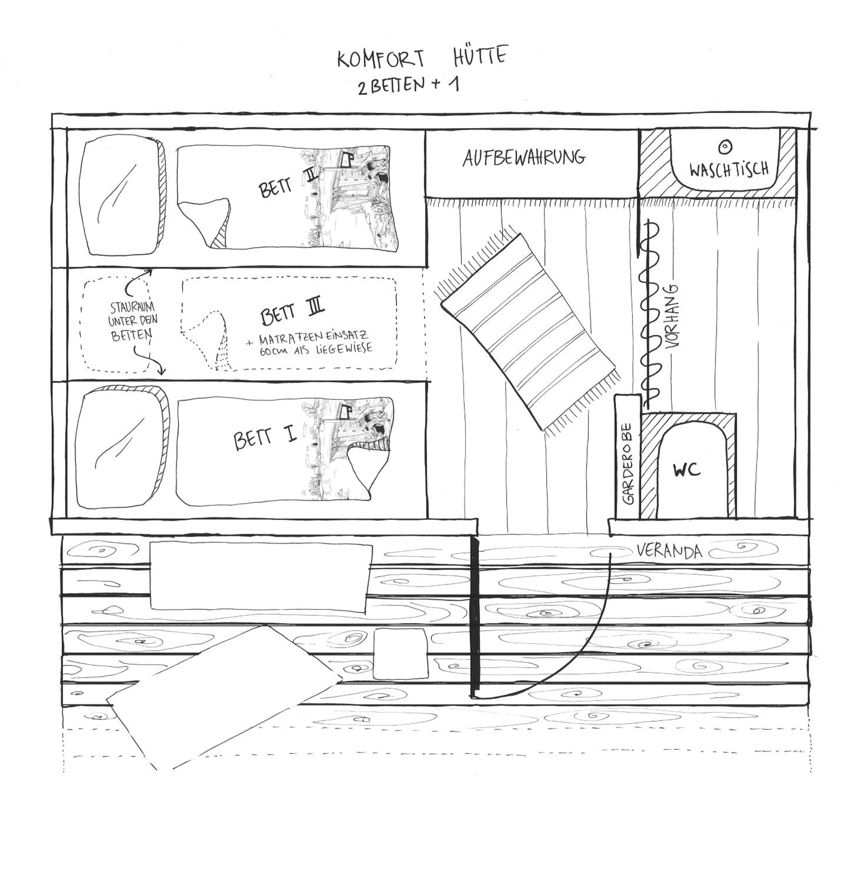 Super süßes Zimmer mit Bett und Bad. Alles aus Holz, Toilette mit einzigartigem "Spülsystem".