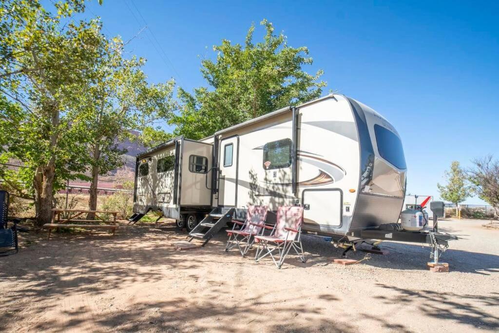 Experience the ultimate glamping getaway at Moab RV Resort. Our fully setup RV offers the perfect blend of luxury and adventure, making it an ideal choice for your next vacation.