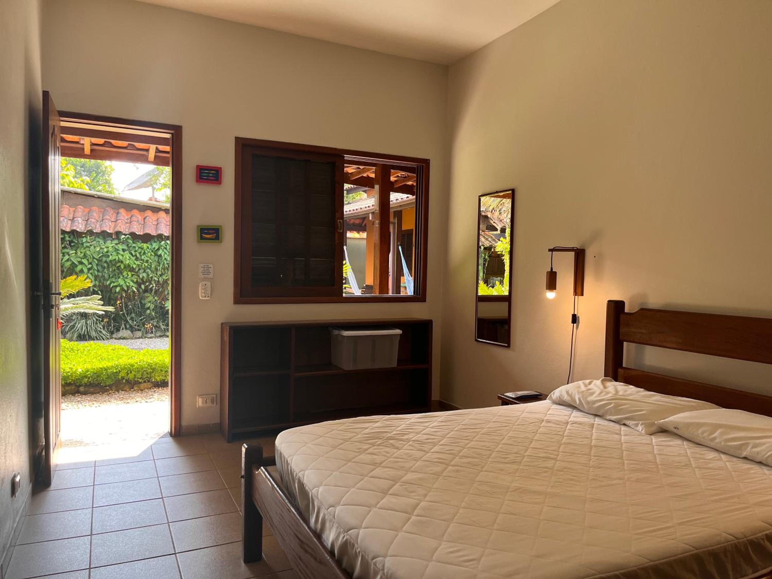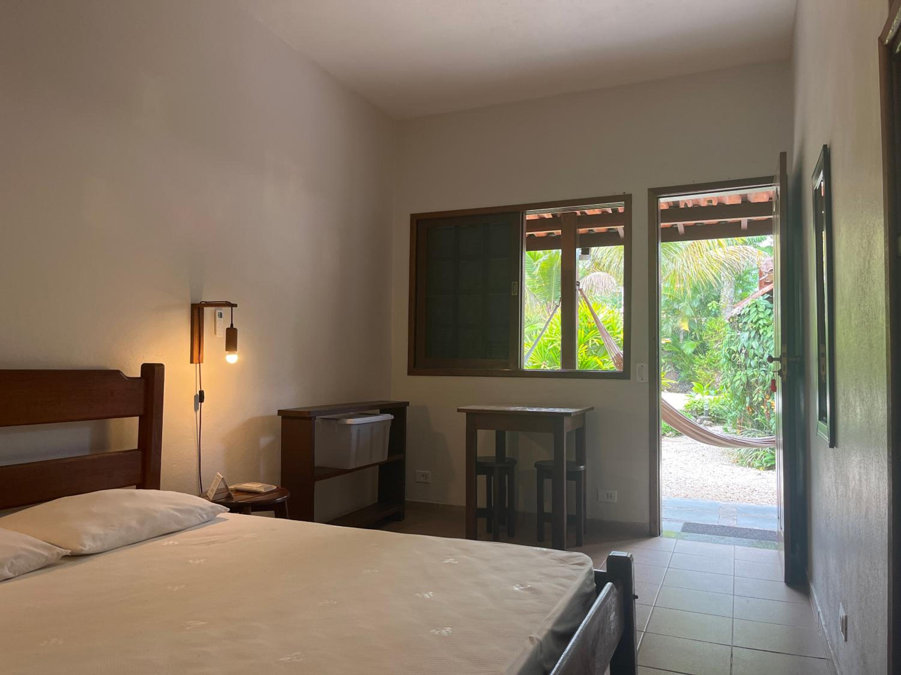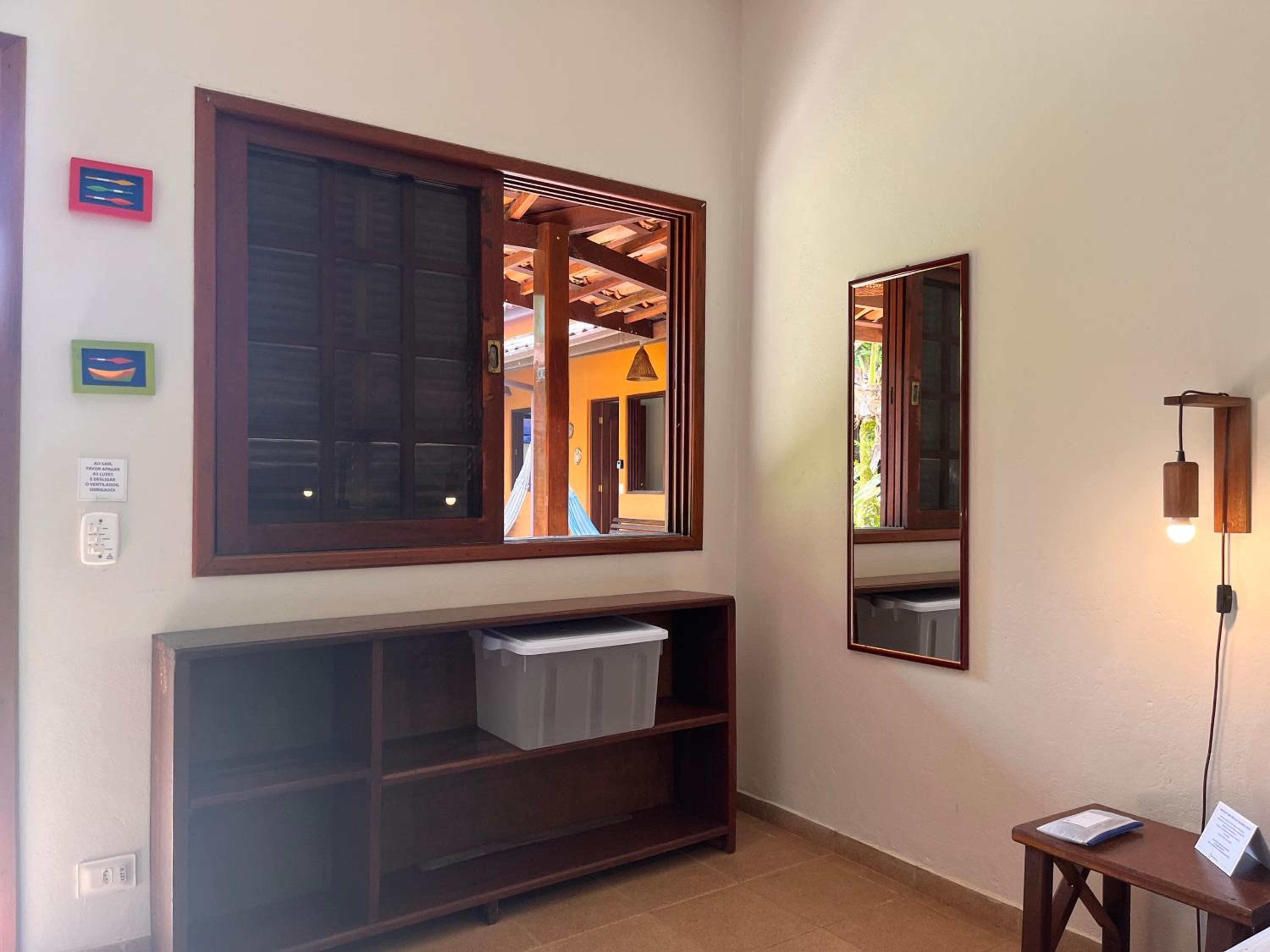 O fato de uma das janelas do quarto não possuir vidro, contando apenas com tela mosquiteira, gera certo incômodo. Apesar de o local ser calmo, é possível ouvir com nitidez os sons do ambiente externo, assim como o que é falado no interior do quarto pode ser ouvido do lado de fora. Sugiro a instalação de vidro em ambas as janelas.