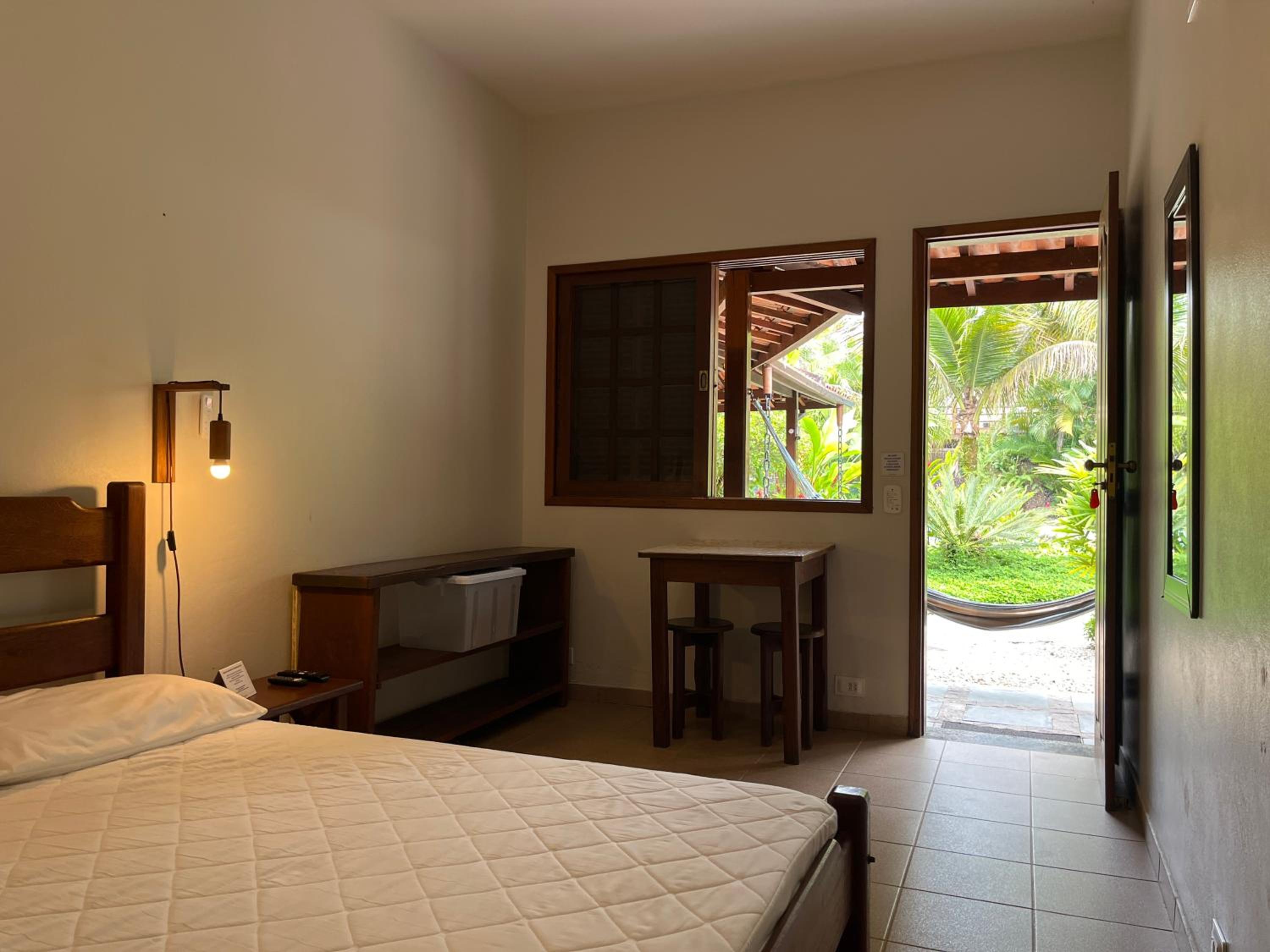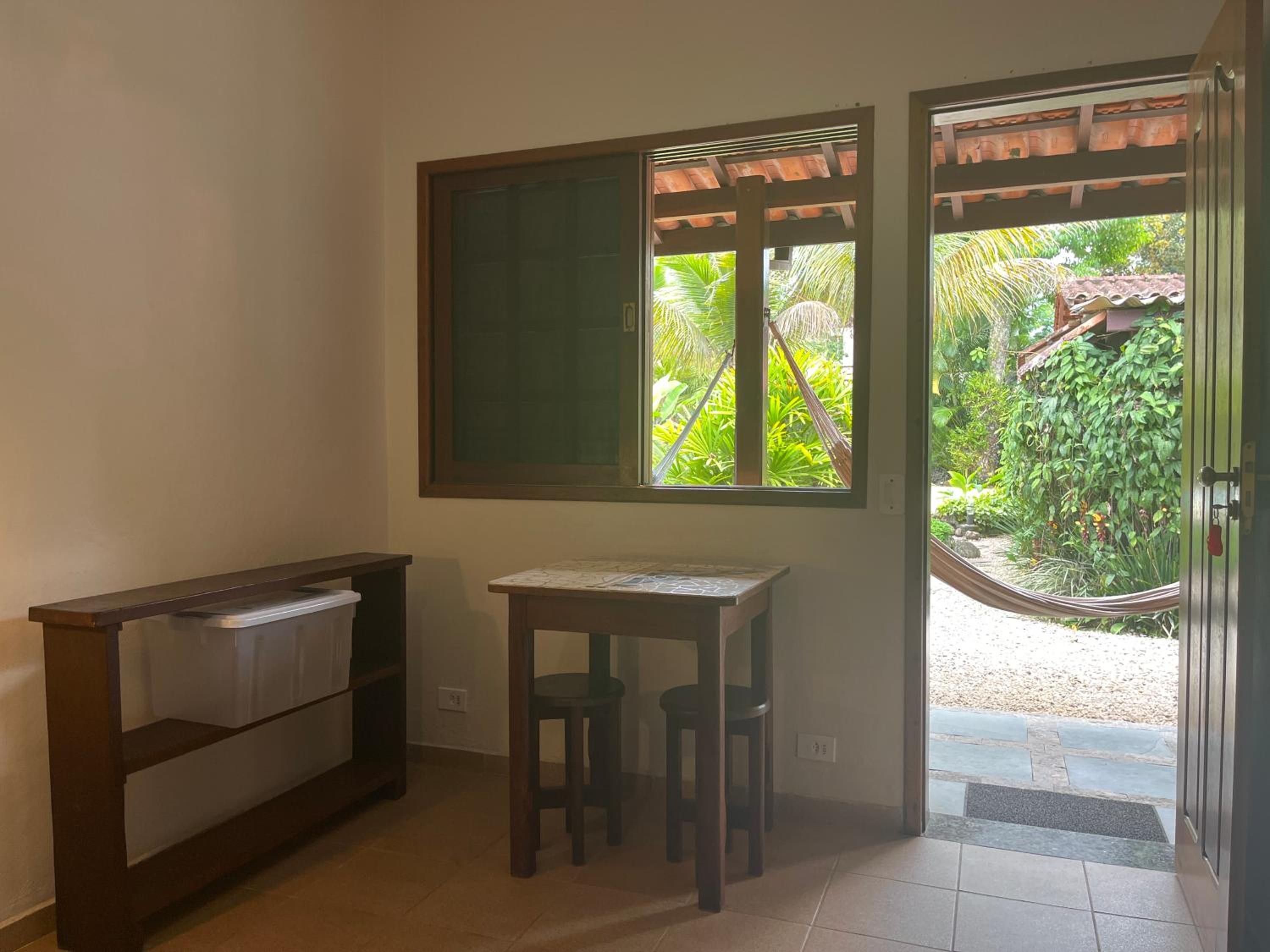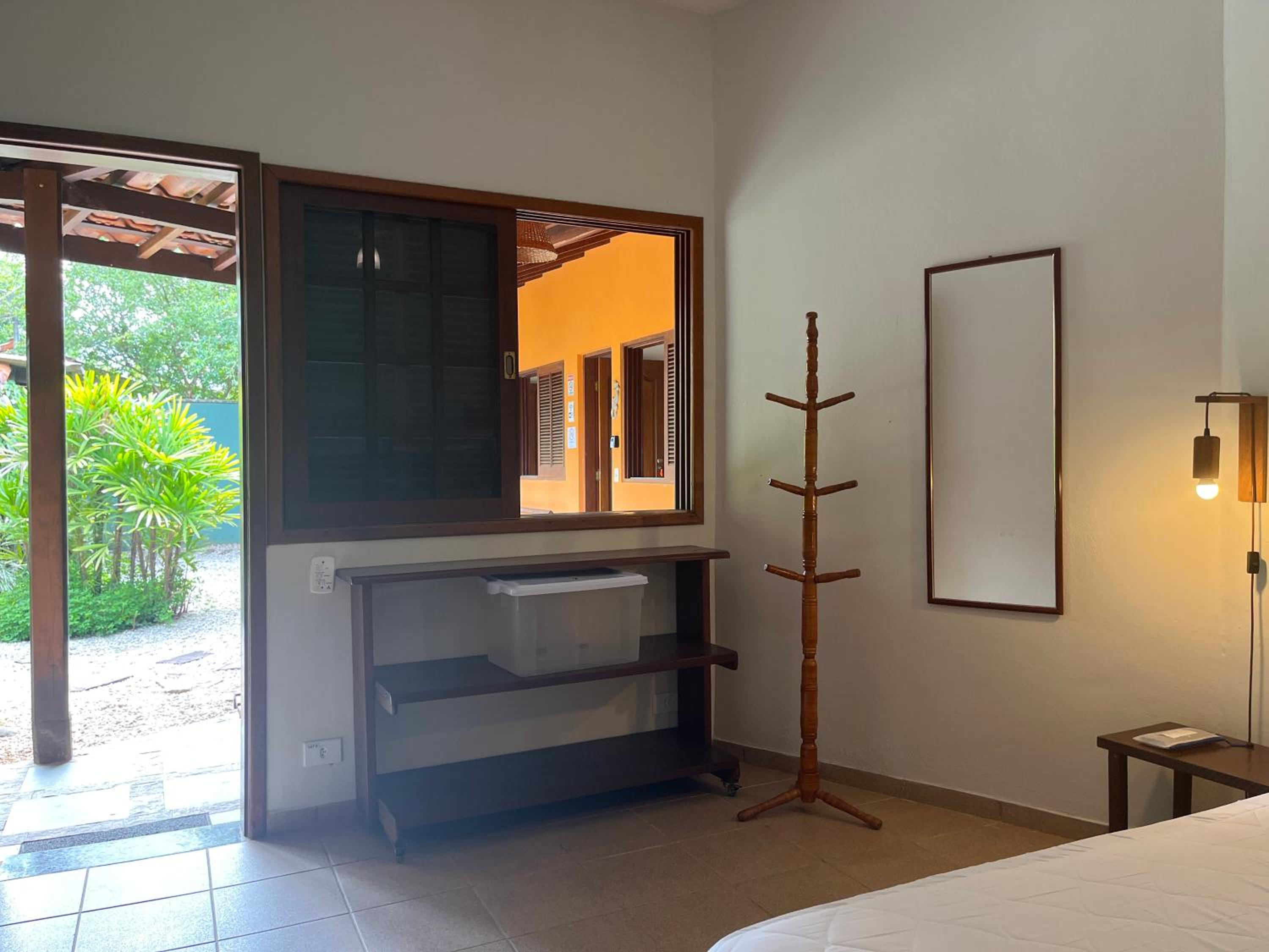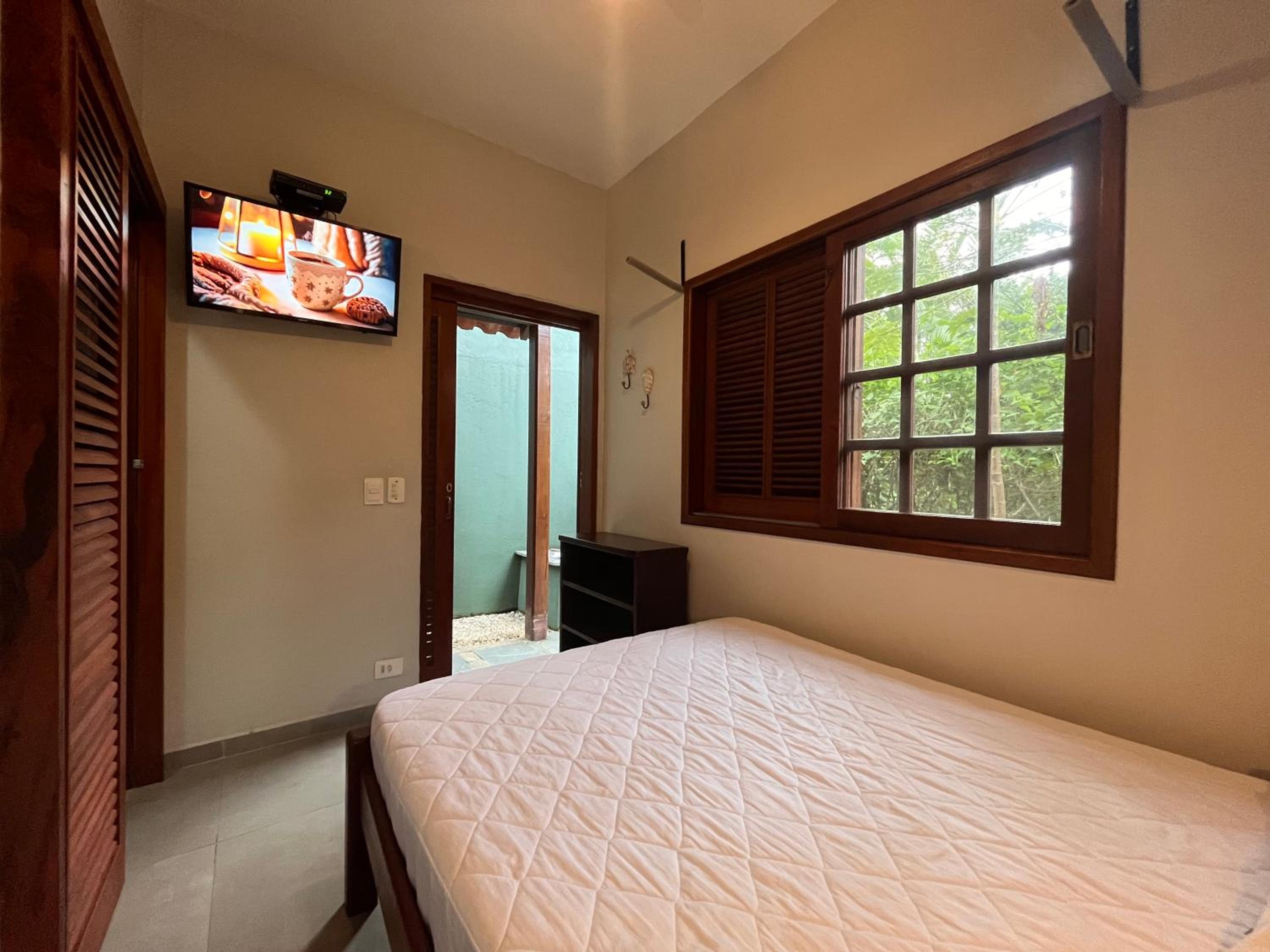 O fato de uma das janelas do quarto não possuir vidro, contando apenas com tela mosquiteira, gera certo incômodo. Apesar de o local ser calmo, é possível ouvir com nitidez os sons do ambiente externo, assim como o que é falado no interior do quarto pode ser ouvido do lado de fora. Sugiro a instalação de vidro em ambas as janelas.