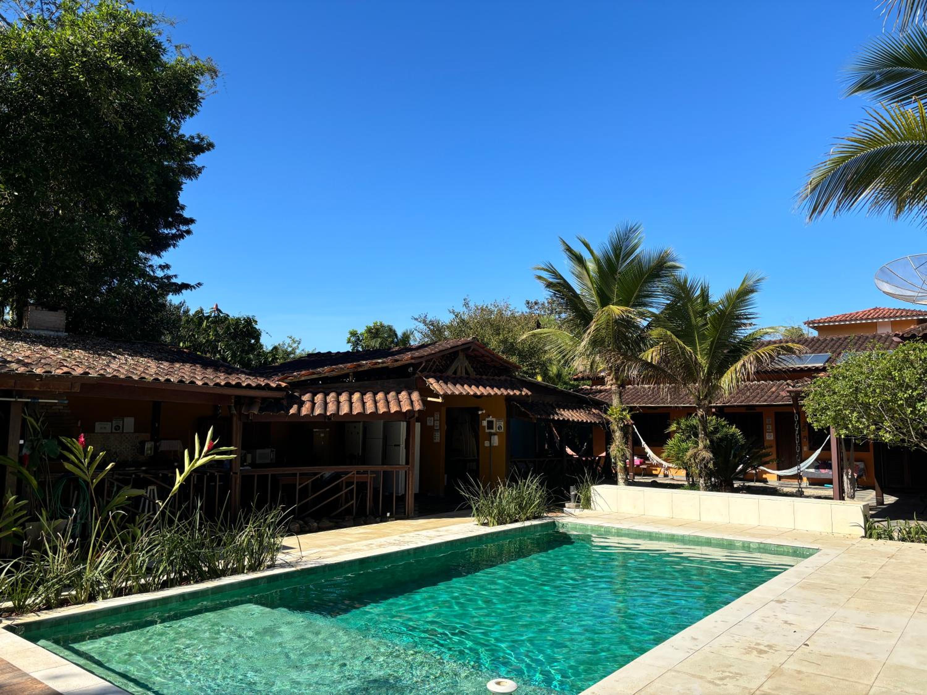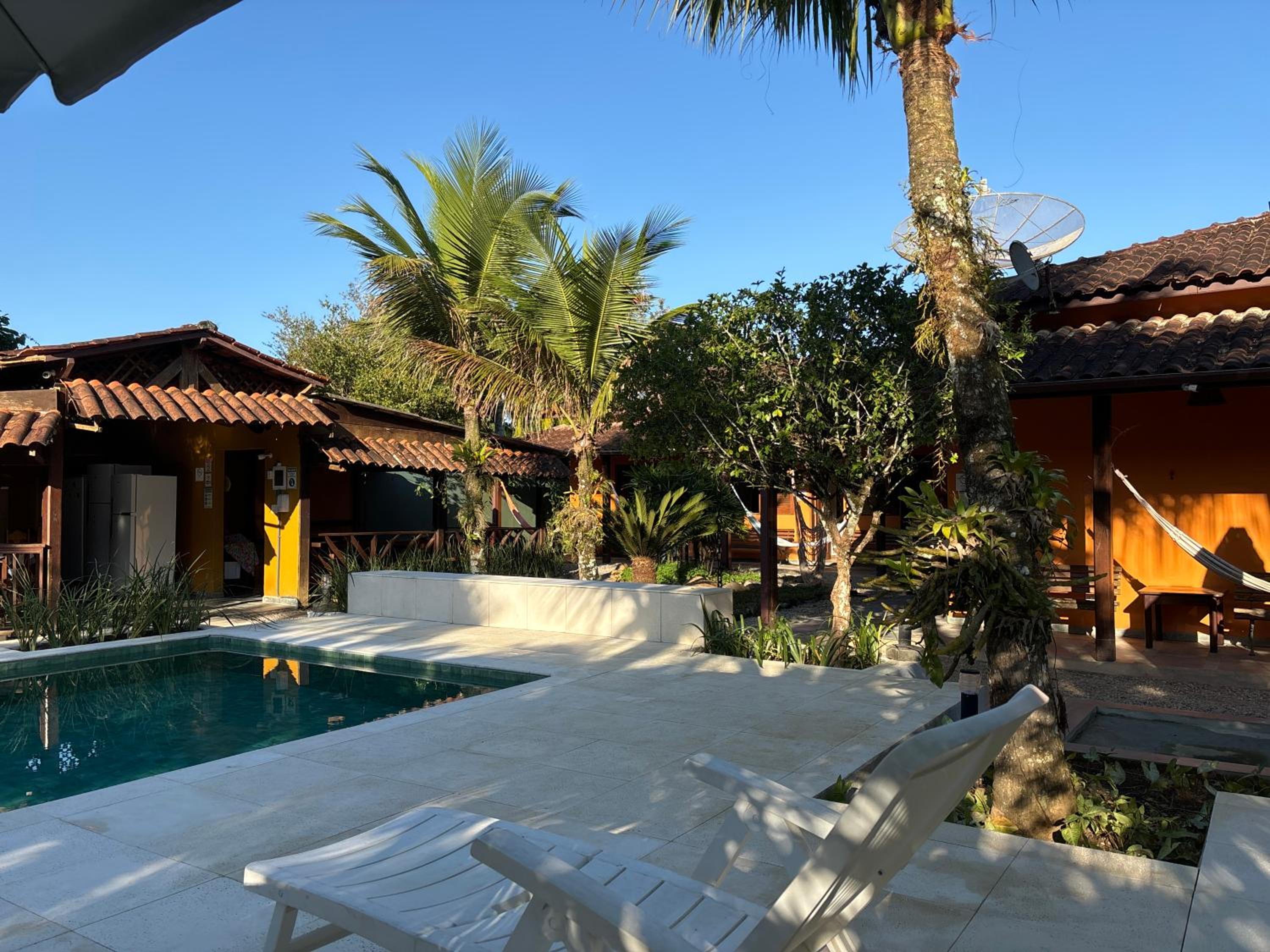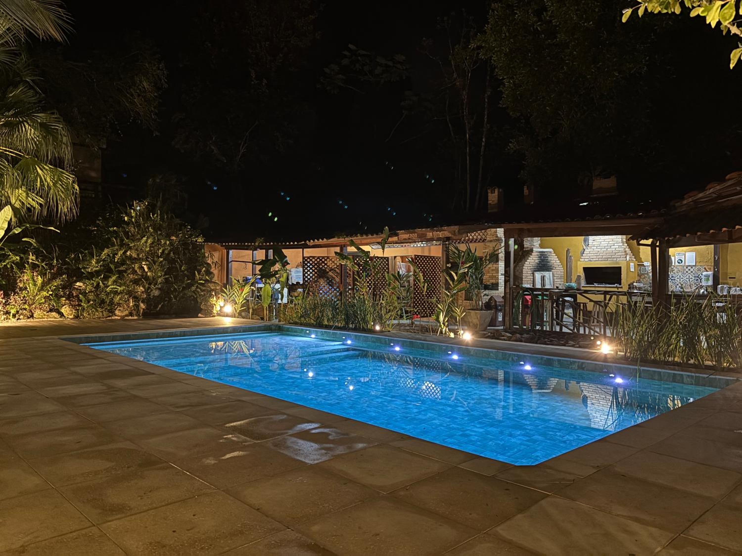 A localização é boa, a piscina boa e limpa, o ambiente externo bem bonito, lugar aconchegante.