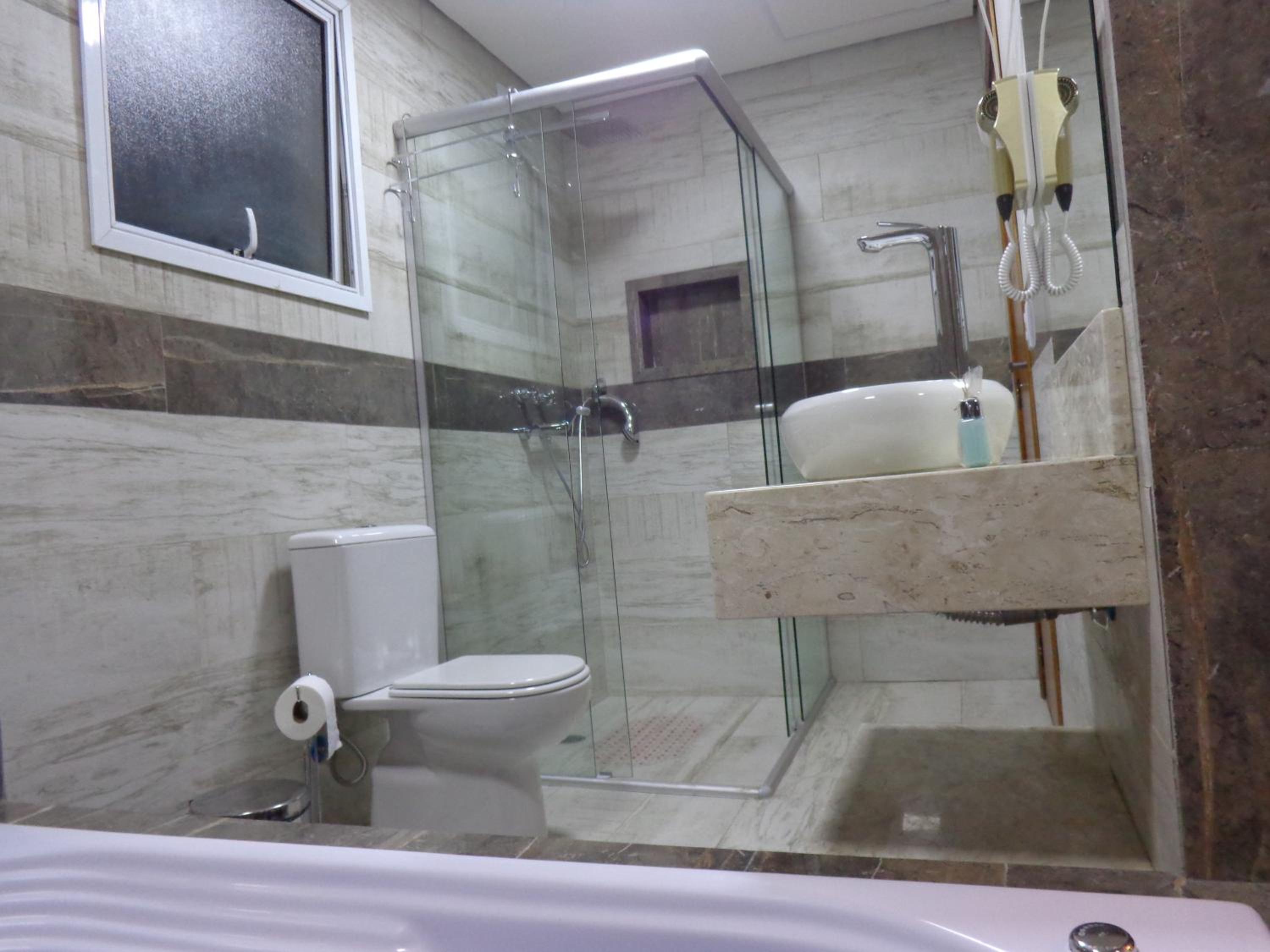 Cheiro de cigarro na pousada e o box do banheiro que estava vazando água na parte de baixo, deixando tudo molhado quando a gente ia tomar banho.