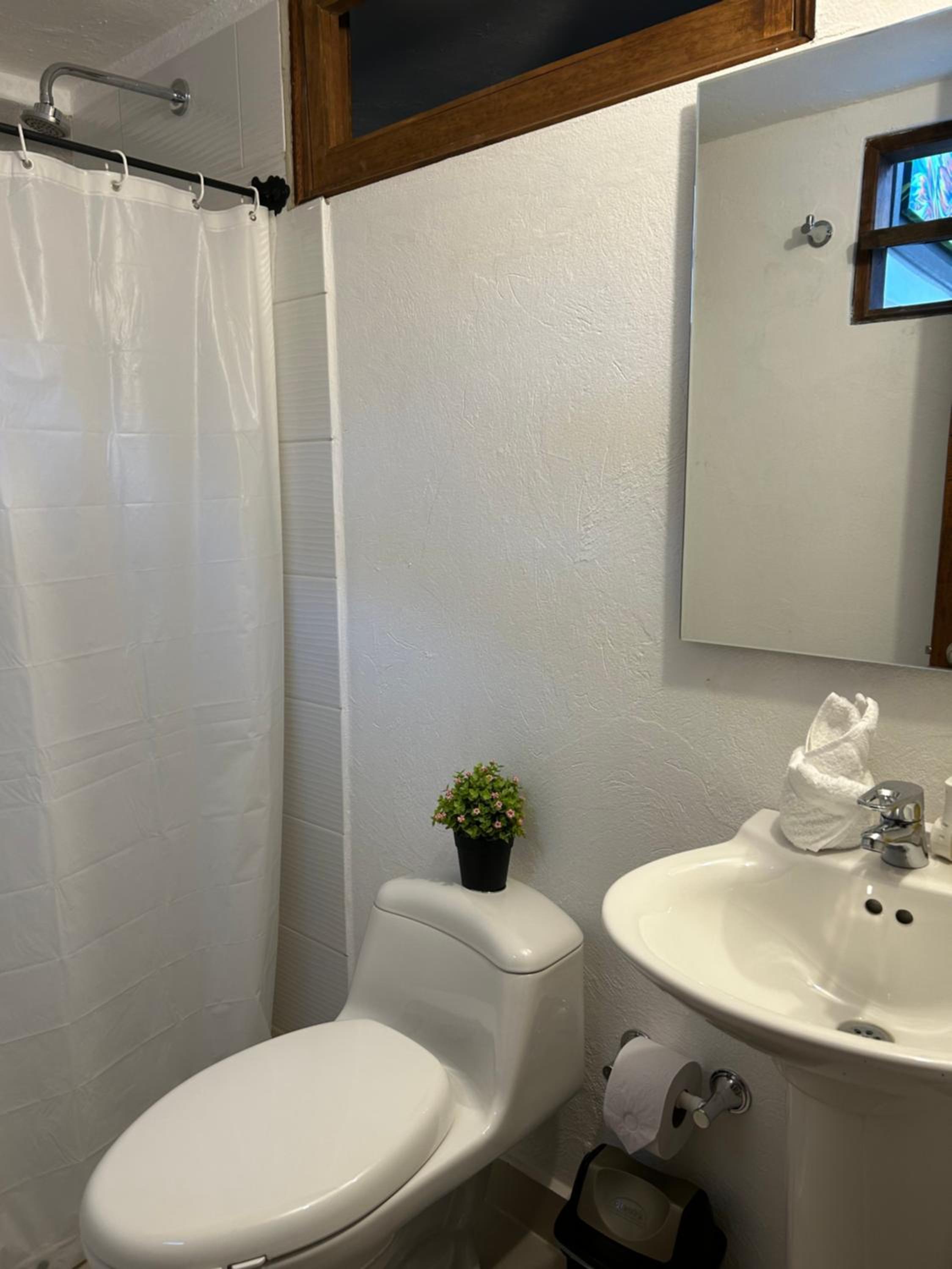 La habitación era muy pequeña, solo teníamos enchufe en el baño.