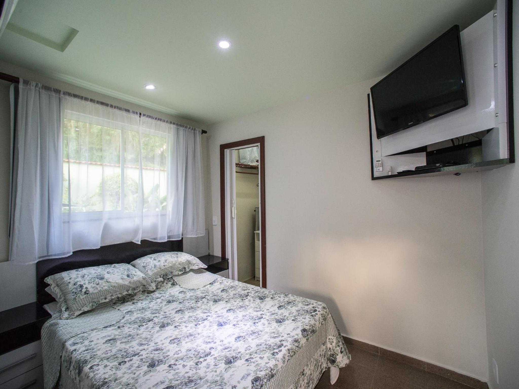Tranquil Accommodation: Nestled in the Atlantic Rainforest, Sweet Rio Residence Taquara offers a serene escape with mountain views and modern amenities like TV, air conditioning, and a private bathroom.