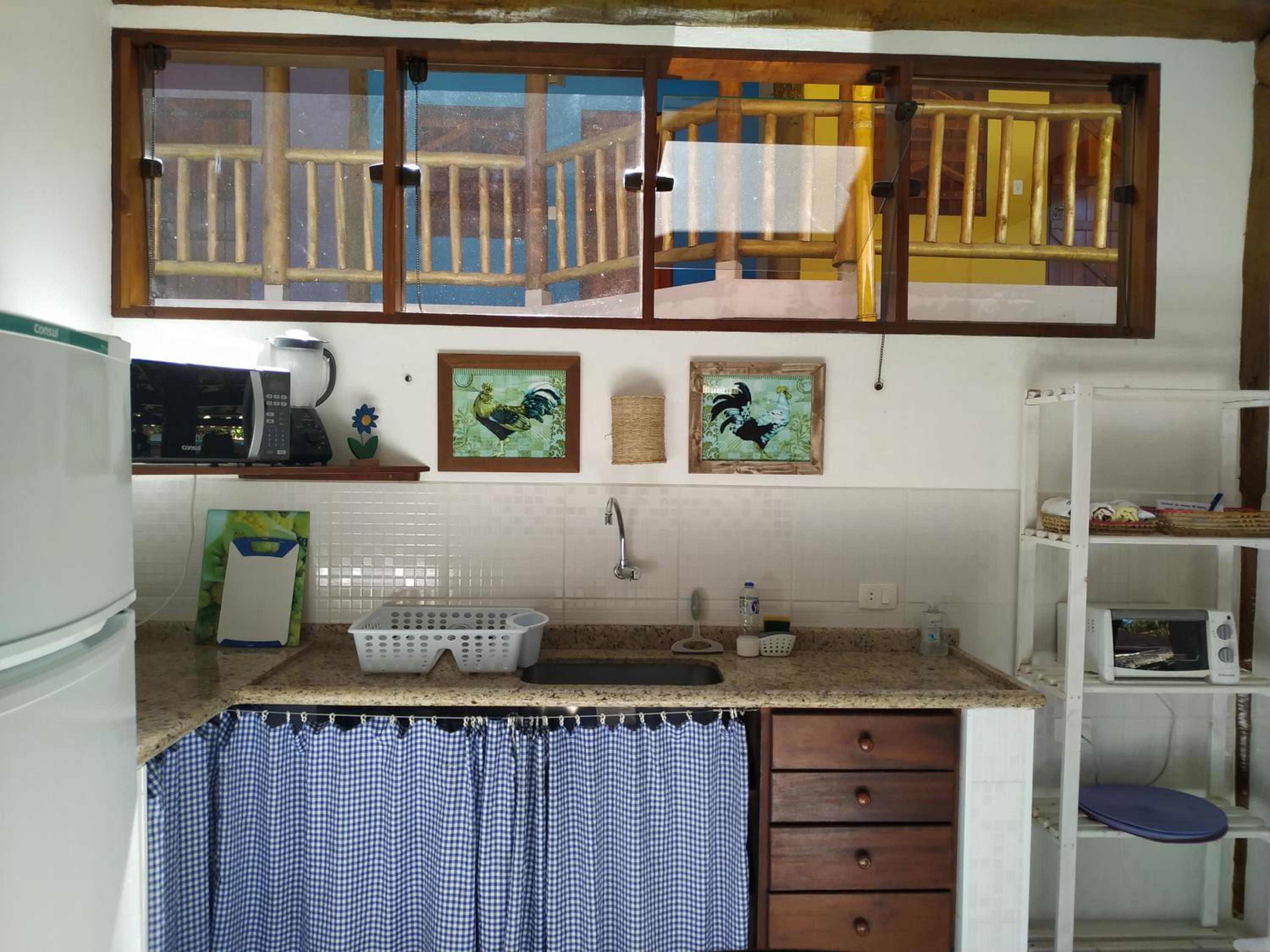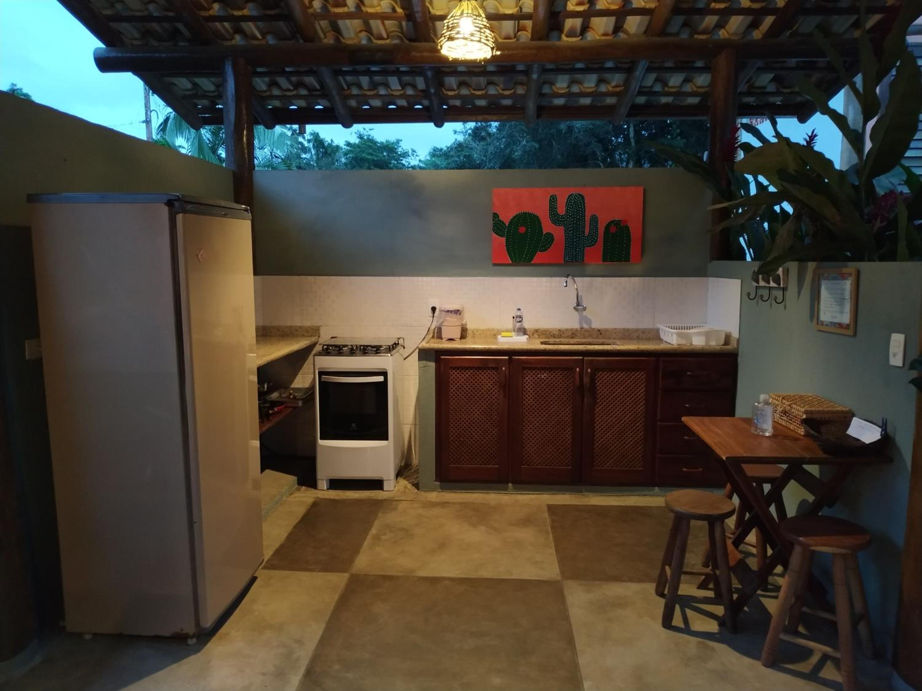 A estrutura da pousada é muito boa. Tudo muito novo e bem conservado. O quarto tem um tamanho muito bom. Há local para secar as roupas de praia, isto é muito bom. A gente gosta muita da área de cozinha, que é muito bem equipada.
