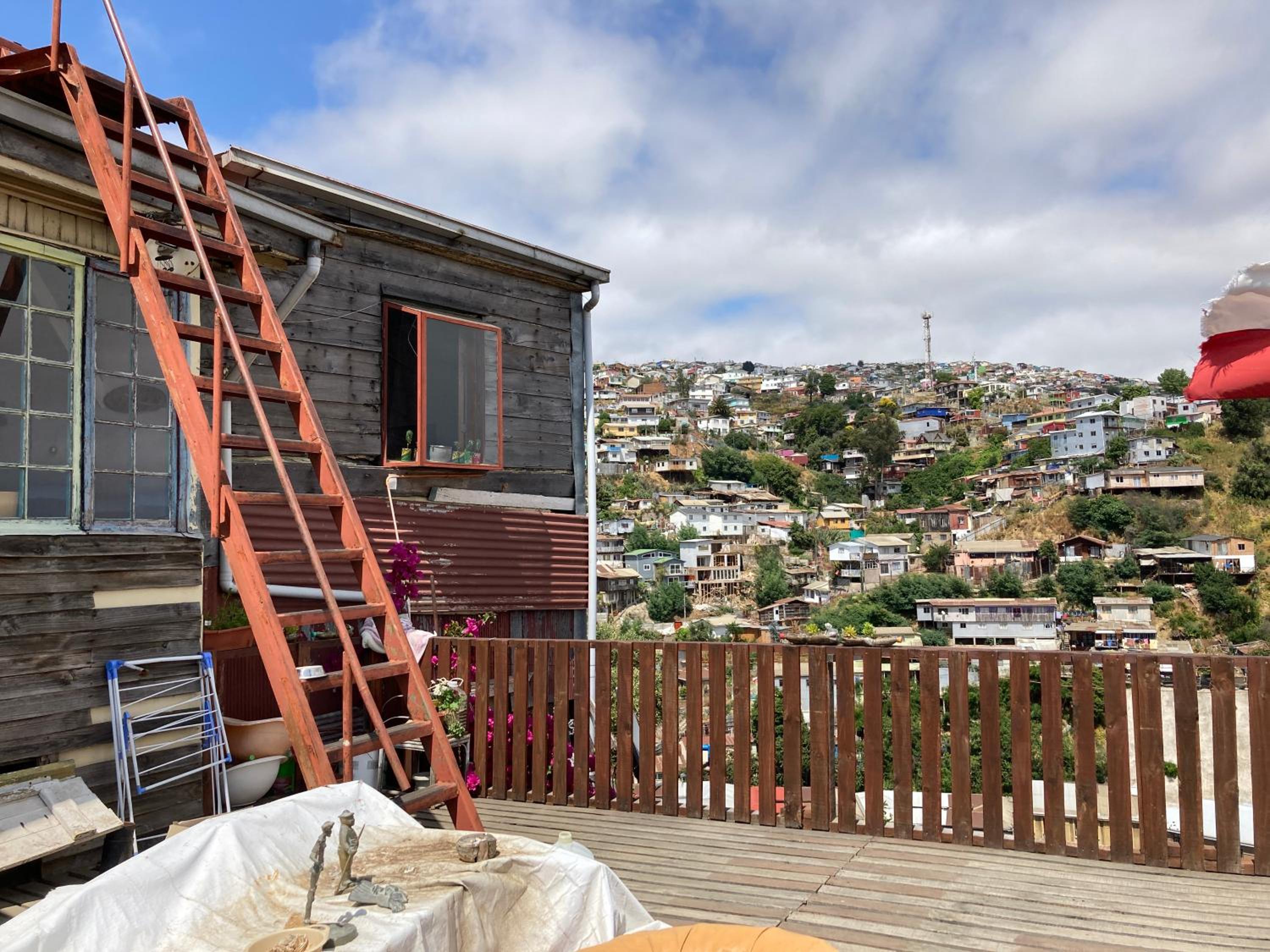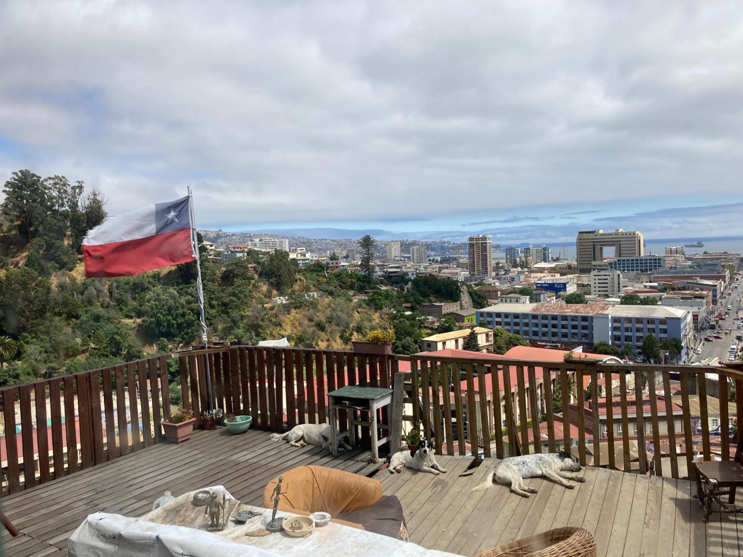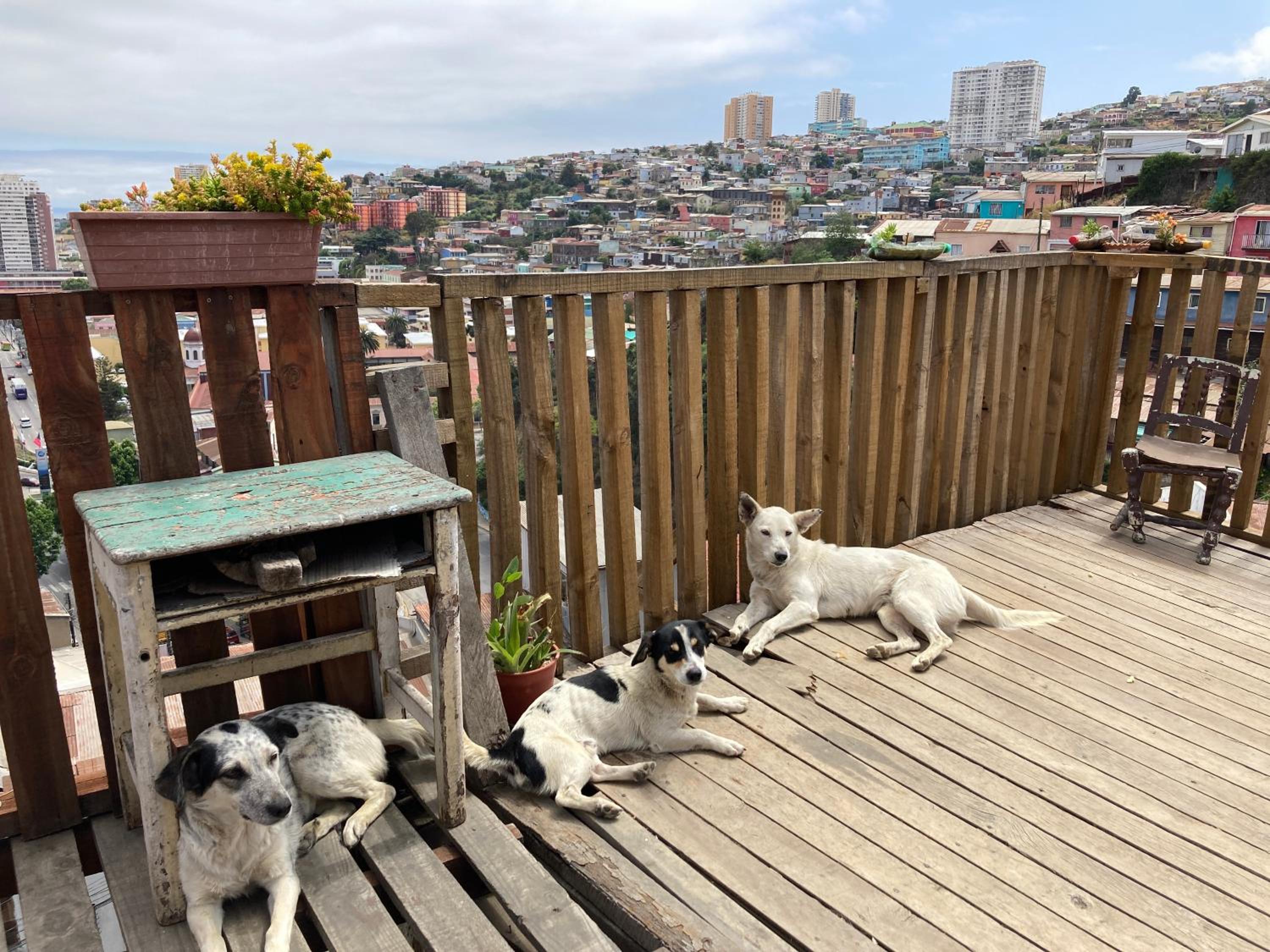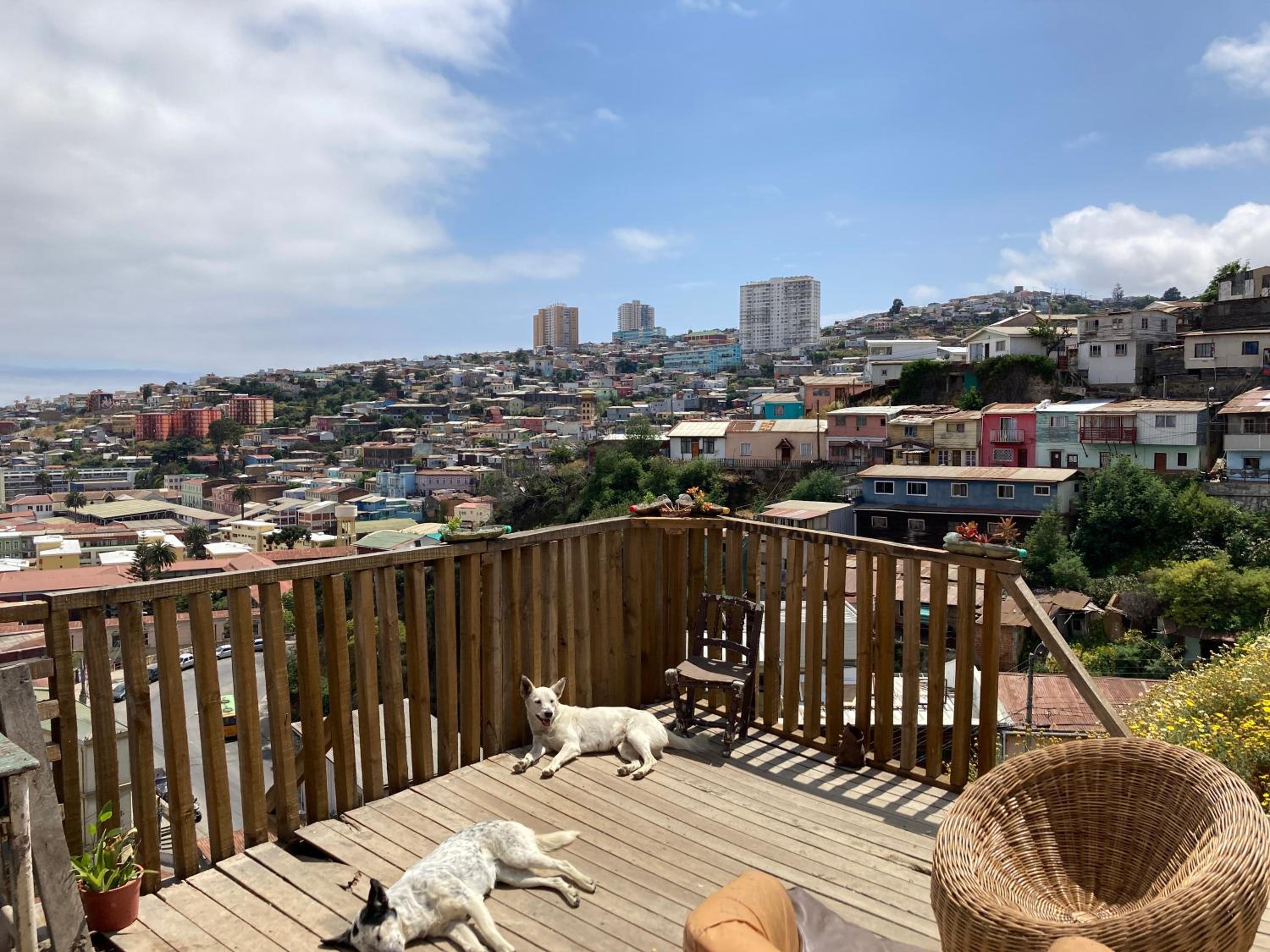 The owner is super friendly and there is a terrace with a beautiful view over Valparaiso! Ge has two baby cats who were climbing all over the place, super cute :)