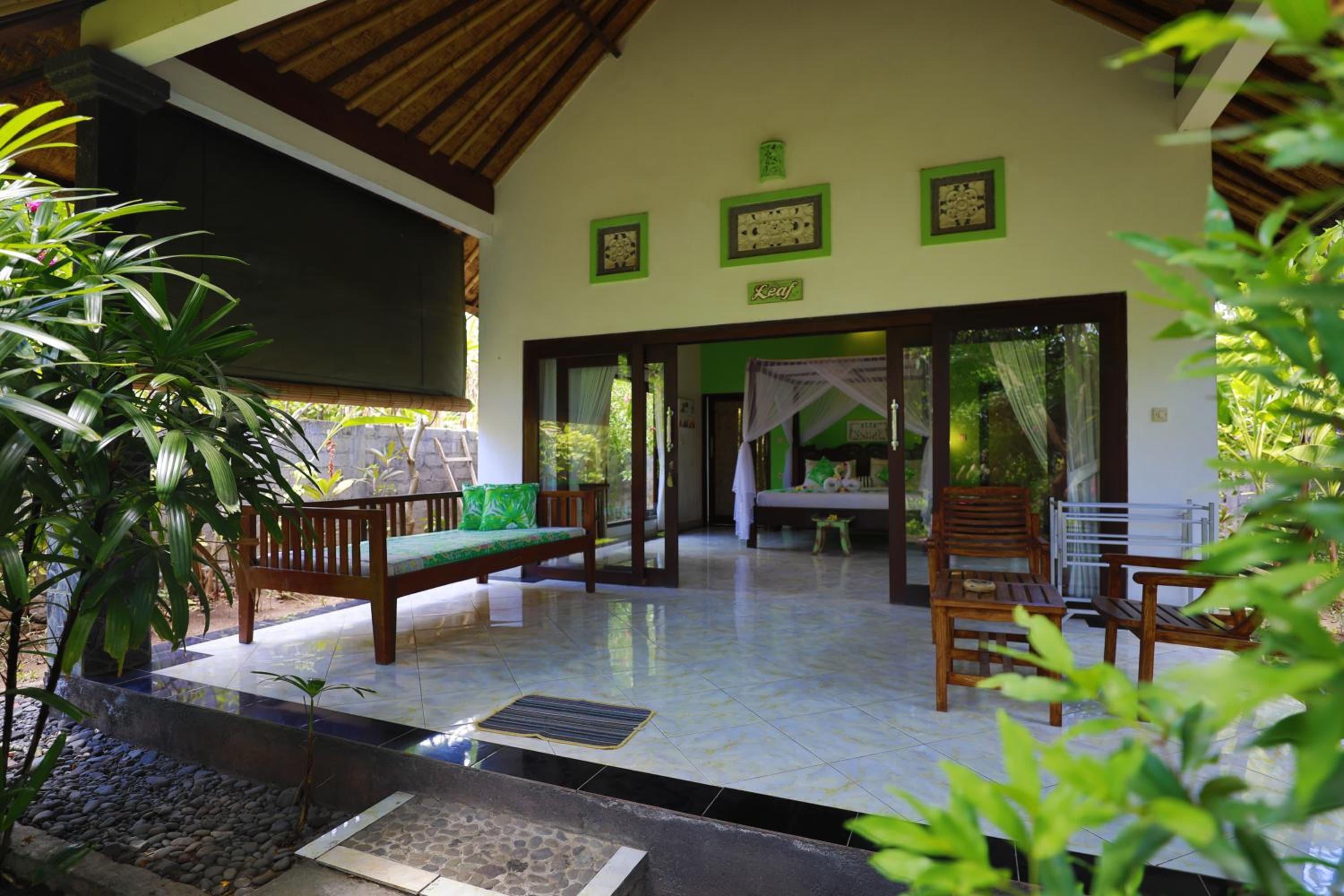 Très bien placé à 70m de la plage d'Amed, 5 minutes en scooter des dives center : nous avons adoré avoir deux espaces, un pour ma fille et un pour nous parents.