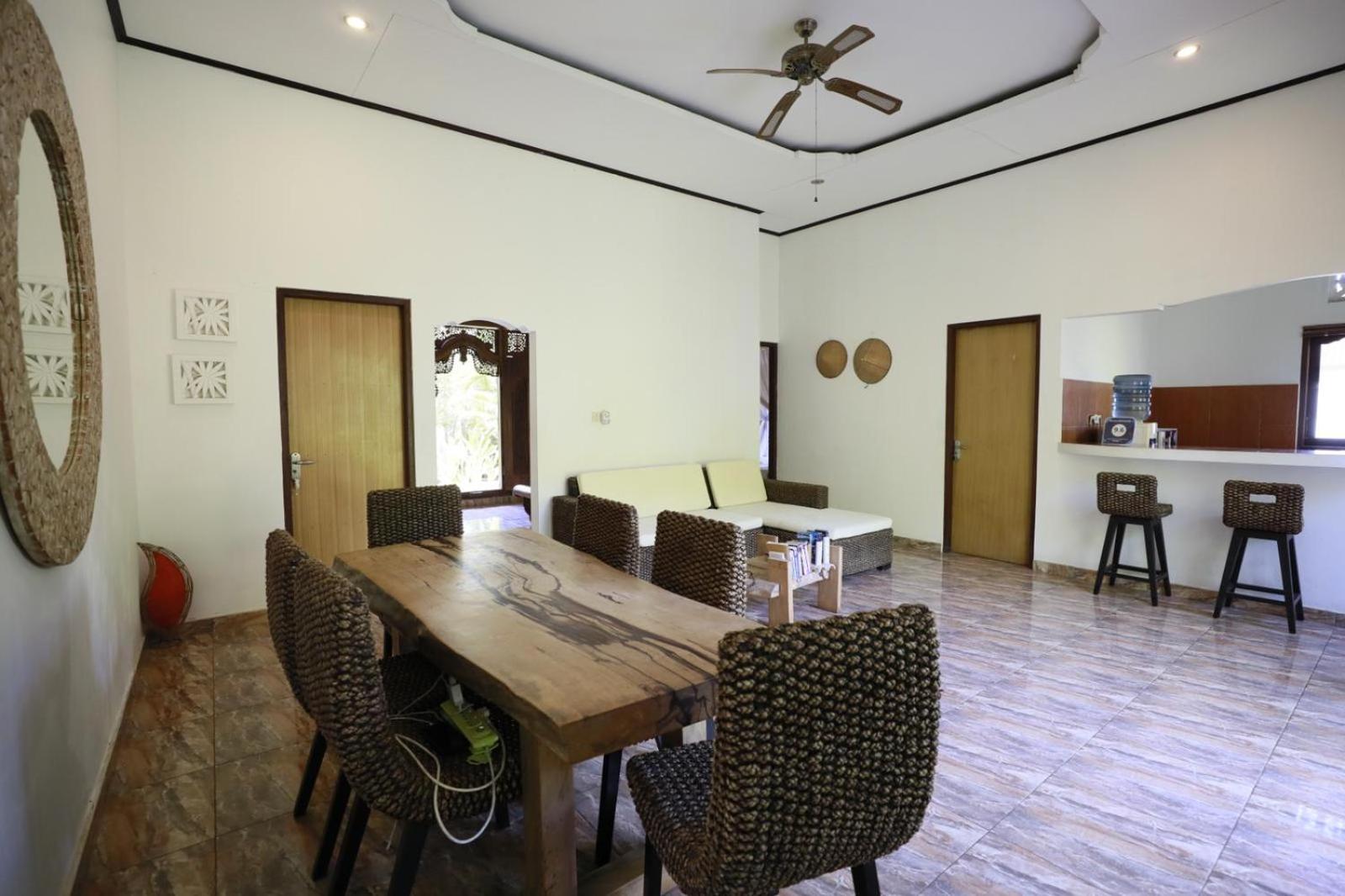 In addition to bungalows, the homestay provides budget guest rooms in the main house with bathrooms, A/C, WIFI, shared kitchen, and living room facilities.