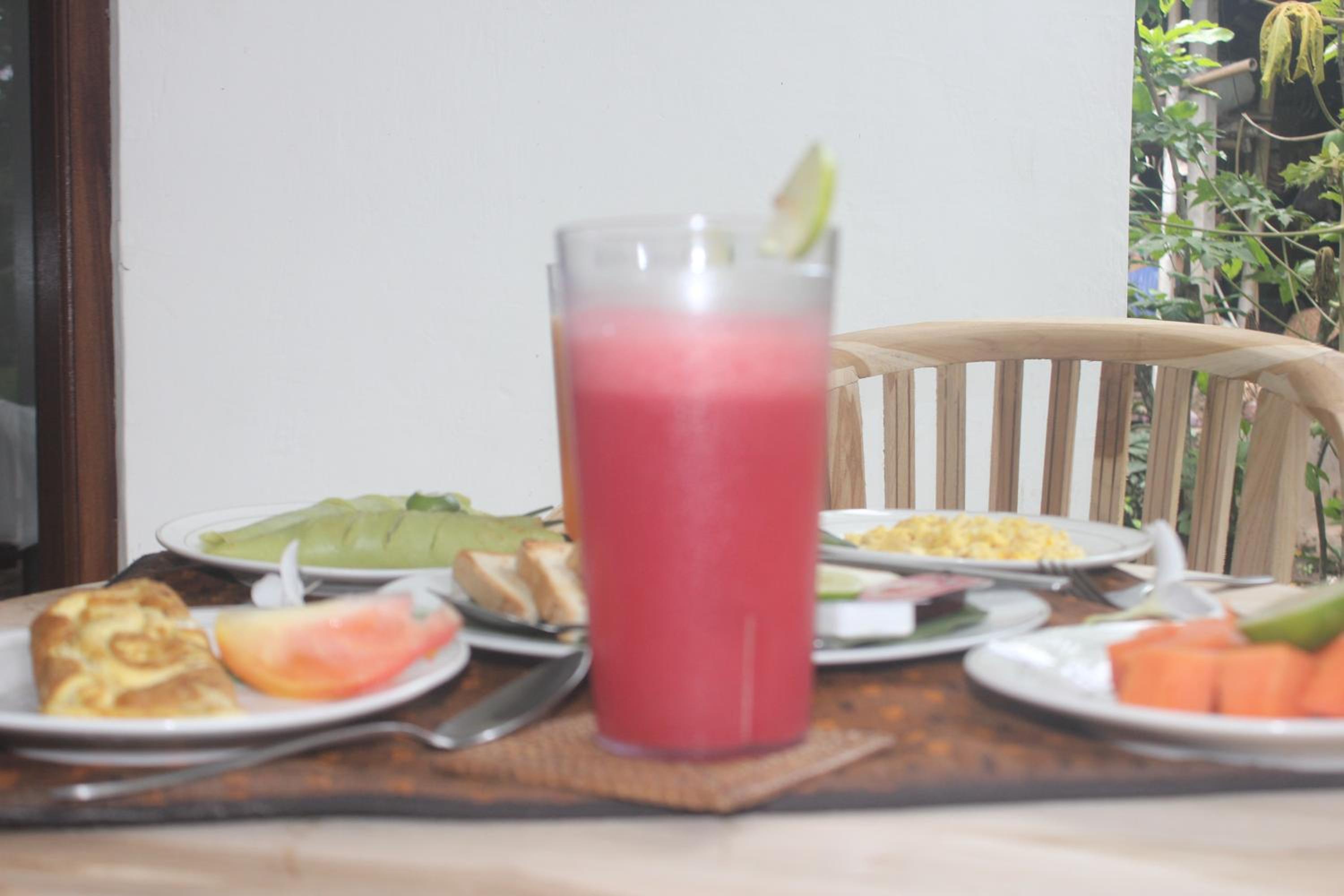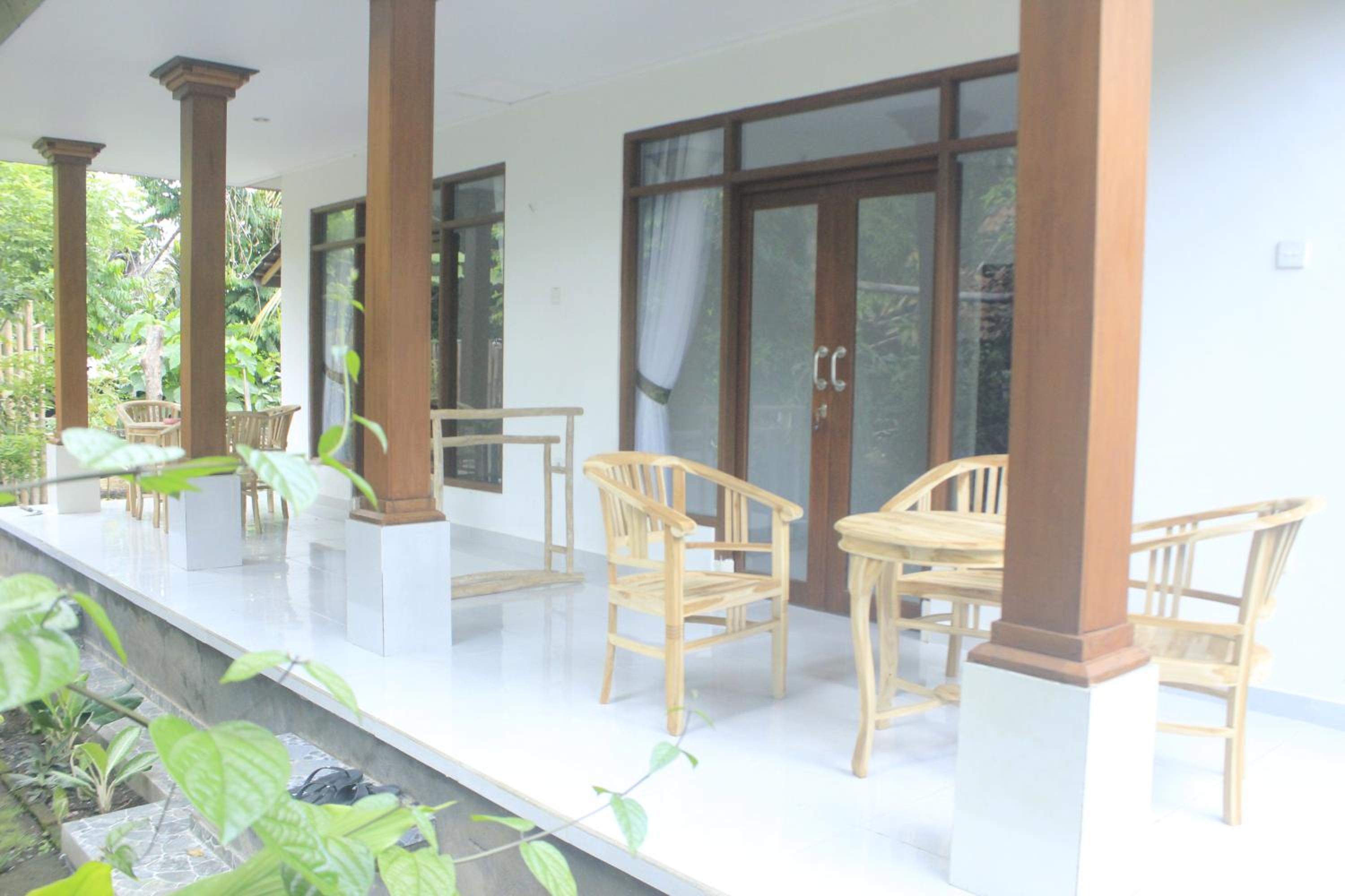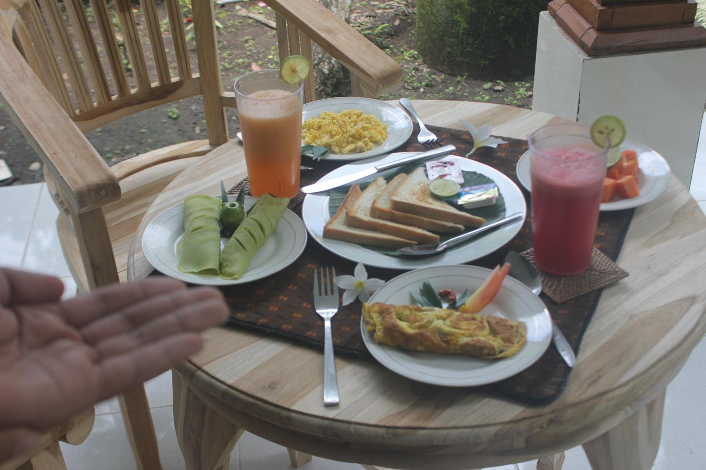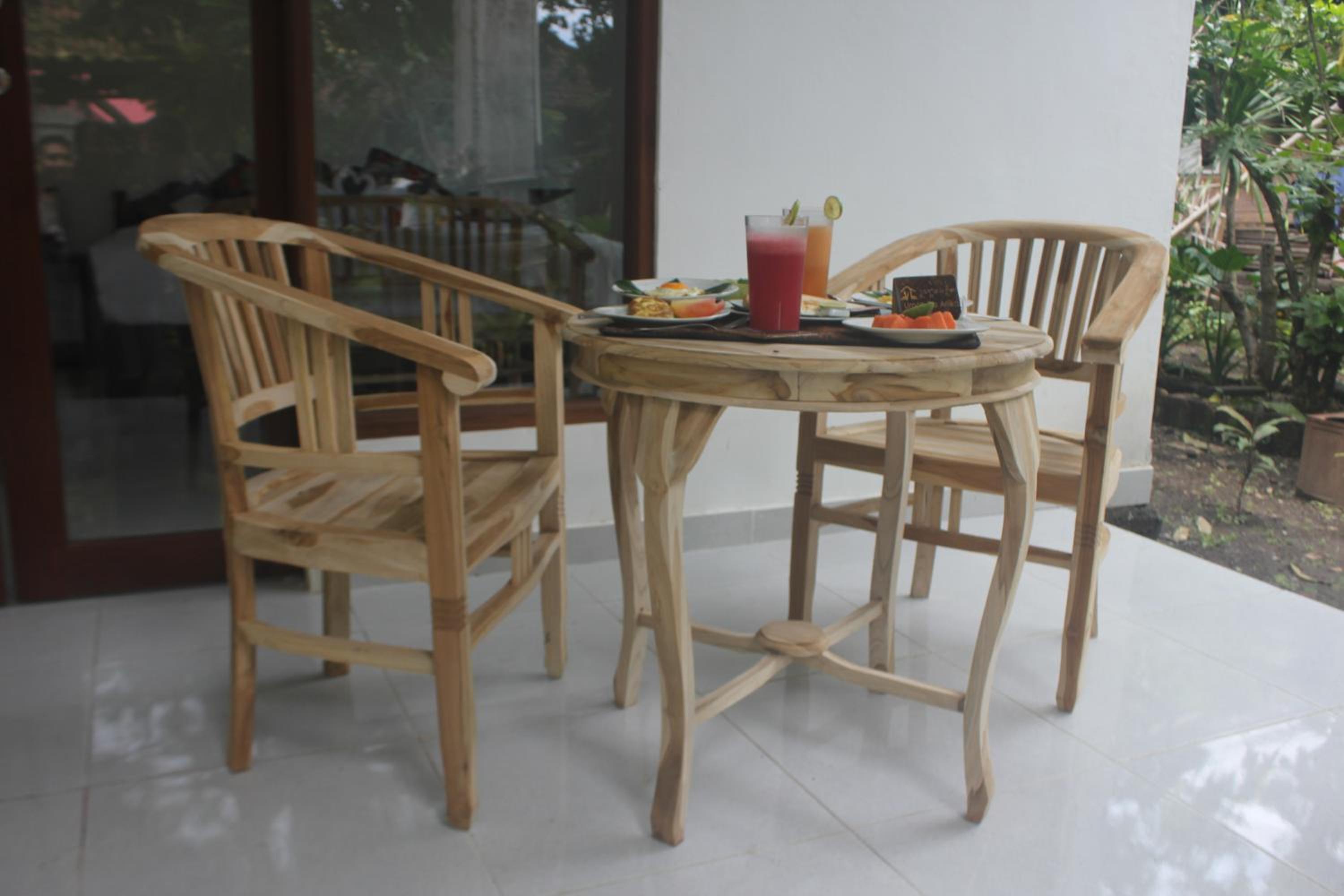 The large shaded patio and seating area was much appreciated. Wayan's gardens were lovely. Rooms are cleaned weekly with fresh bedding and towels provided. The breakfasts consisted of fresh fruit, pancakes and Indonesian dishes. As we were staying a while, we allowed Wayan to cook us what she wanted so we could experience many different types of dishes.