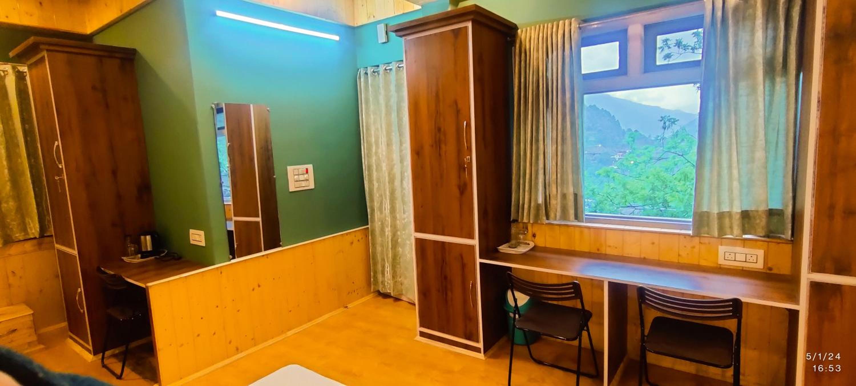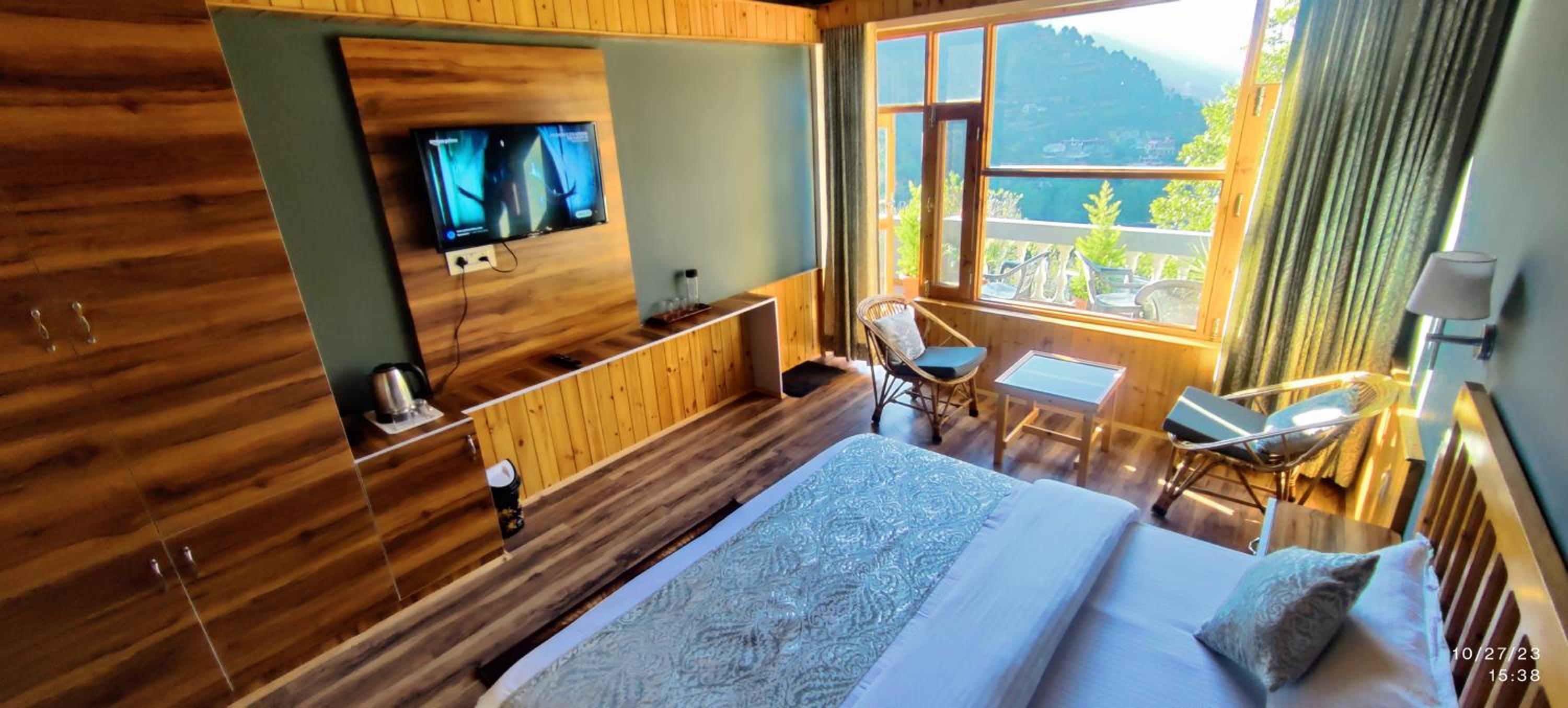 The location is amazing (bang on the main road), the rooms are very very good (won't expect this in the hills), you get your own balcony with an amazing view, market is accessible and all amenities are there. You get delicious home cooked meals as well. Aand you get parking on the premises (a luxury in mountain towns)