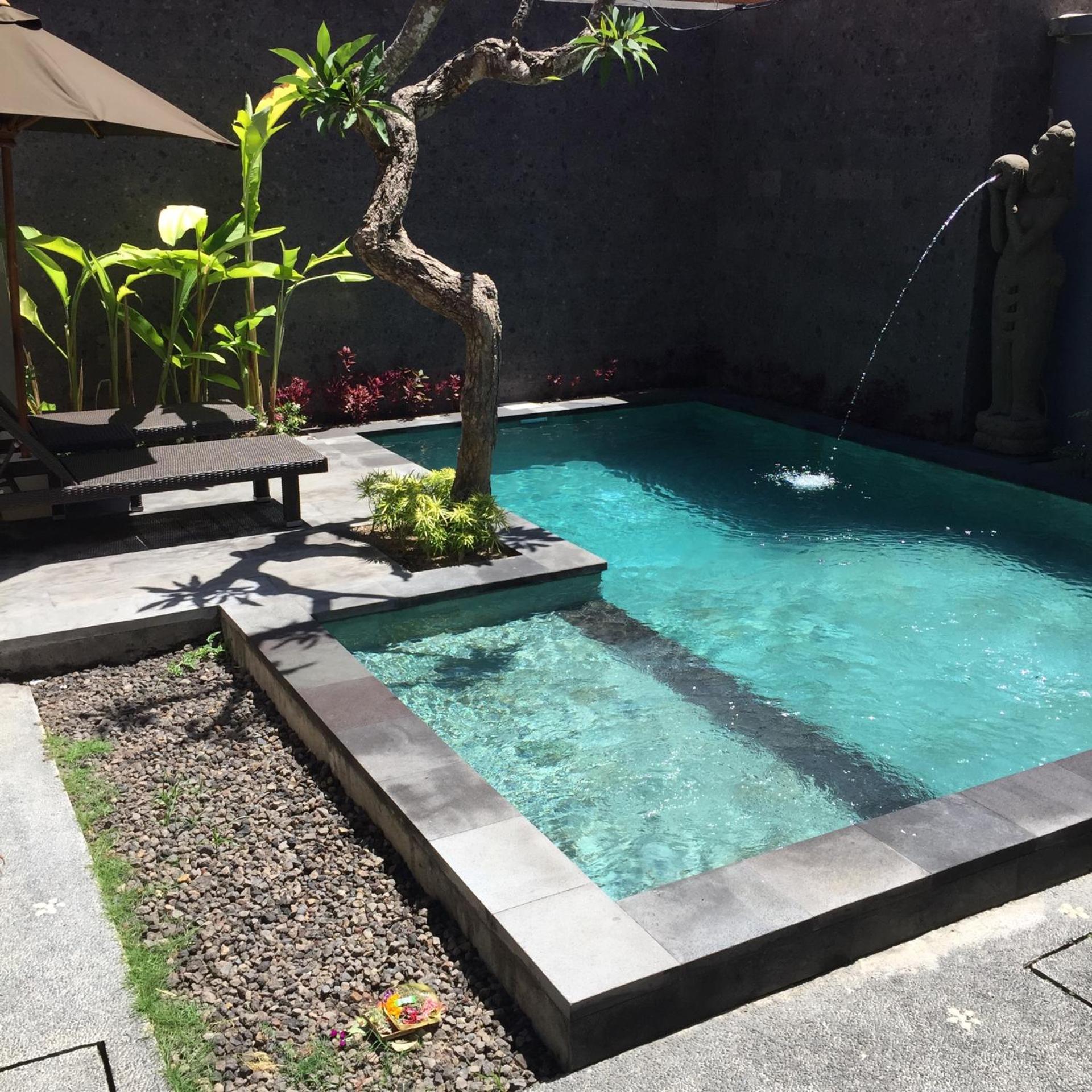 This little hotel is in a great location with good access to the beach and restaurants, shops etc. The staff all are young men who are very kind and well mannered. The rooms are clean and in good condition. The shower works well and the water temperature is good. The pool was nice to sit by and swim in and is kept very clean. There is a water tank at the entrance for you to fill up your water jug whenever you want to. There is room cleaning if you request it but I did not need to use it. They also supply a coffee/tea & toast with jam service free of charge from 8-11am. The coffee is Indonesian and the toast is a little dry but it is there if you want it!