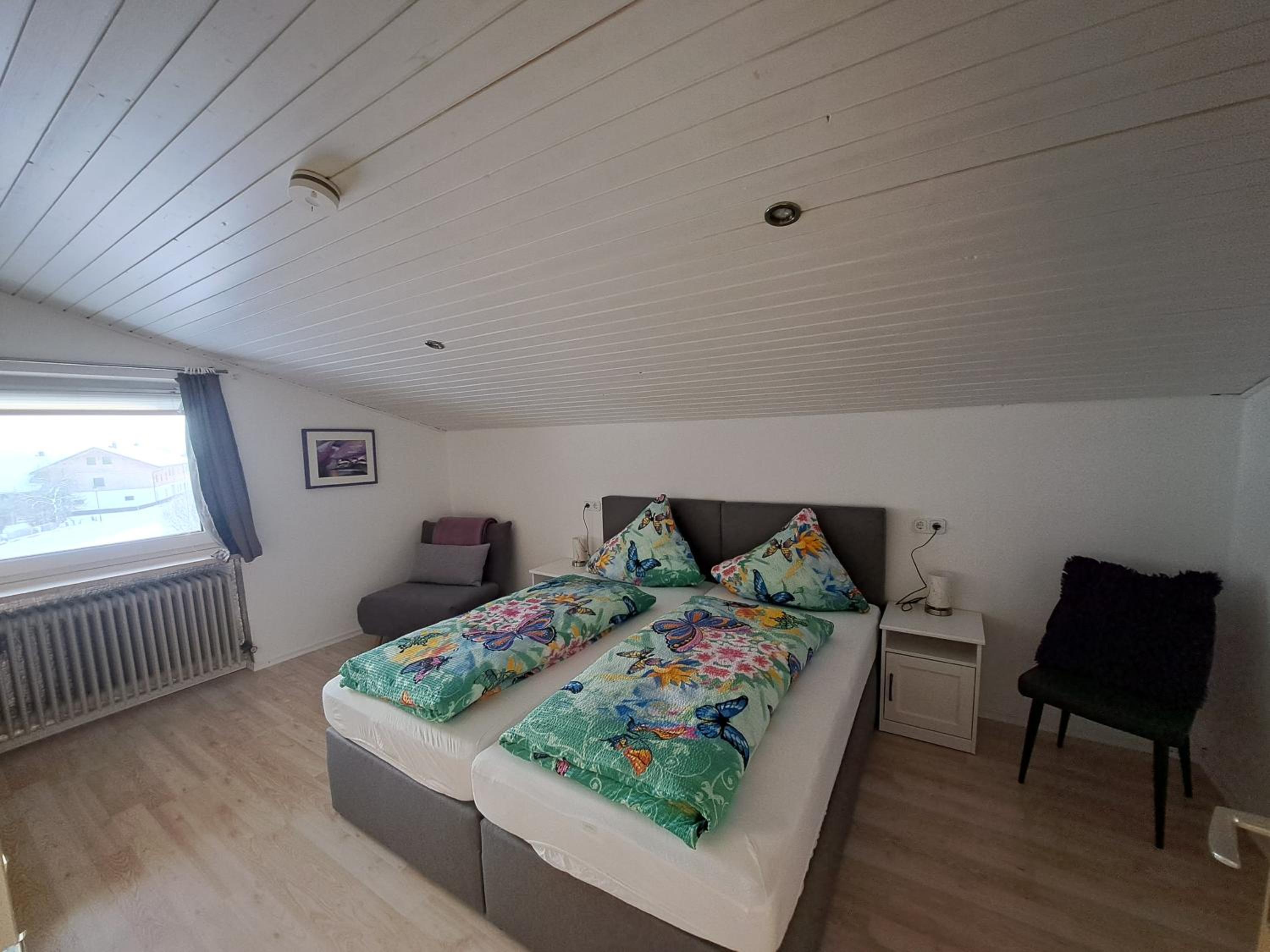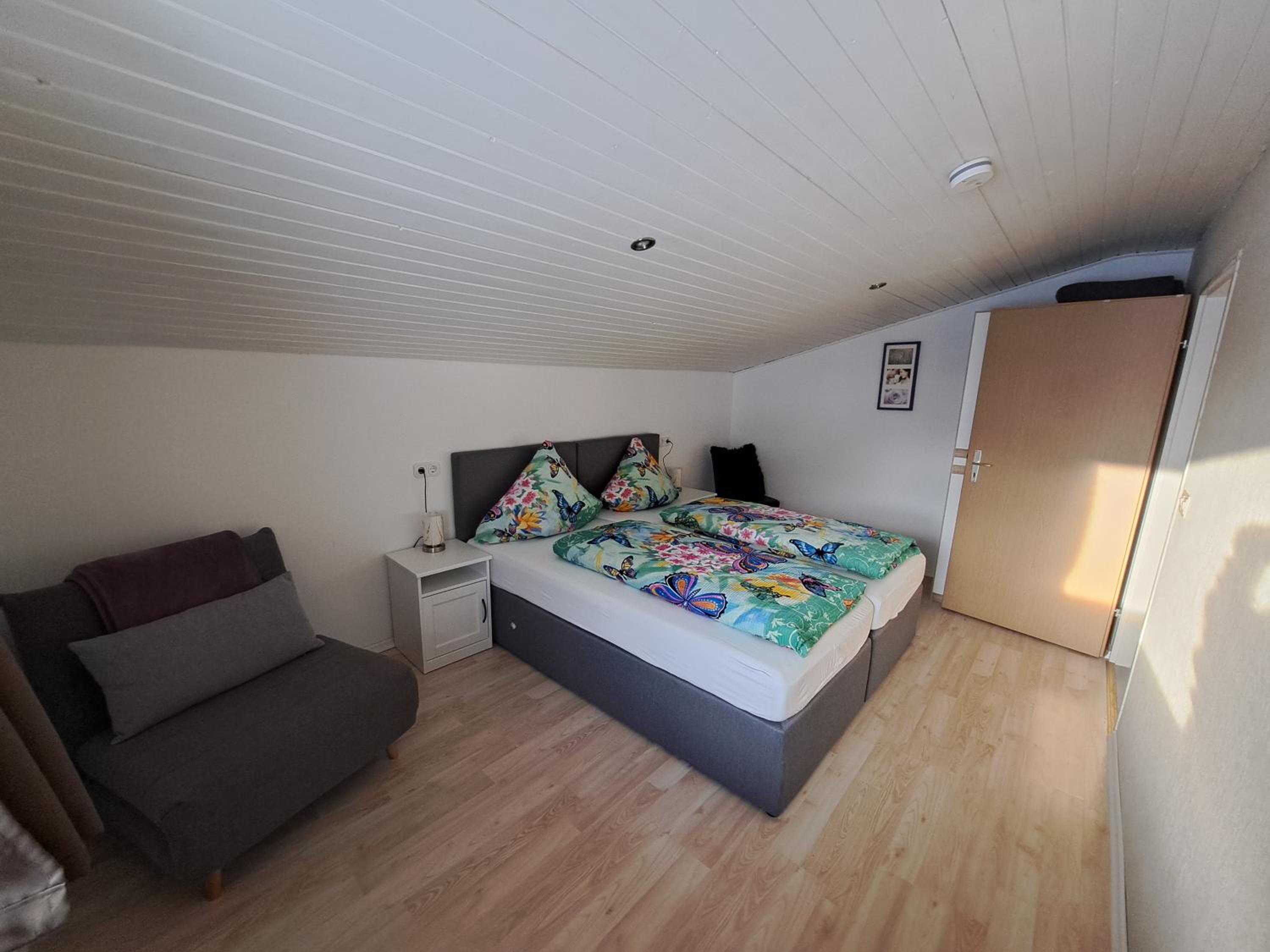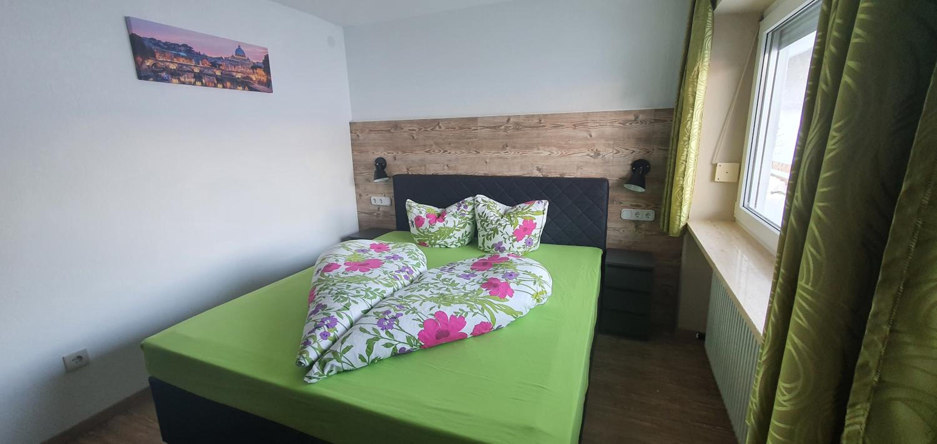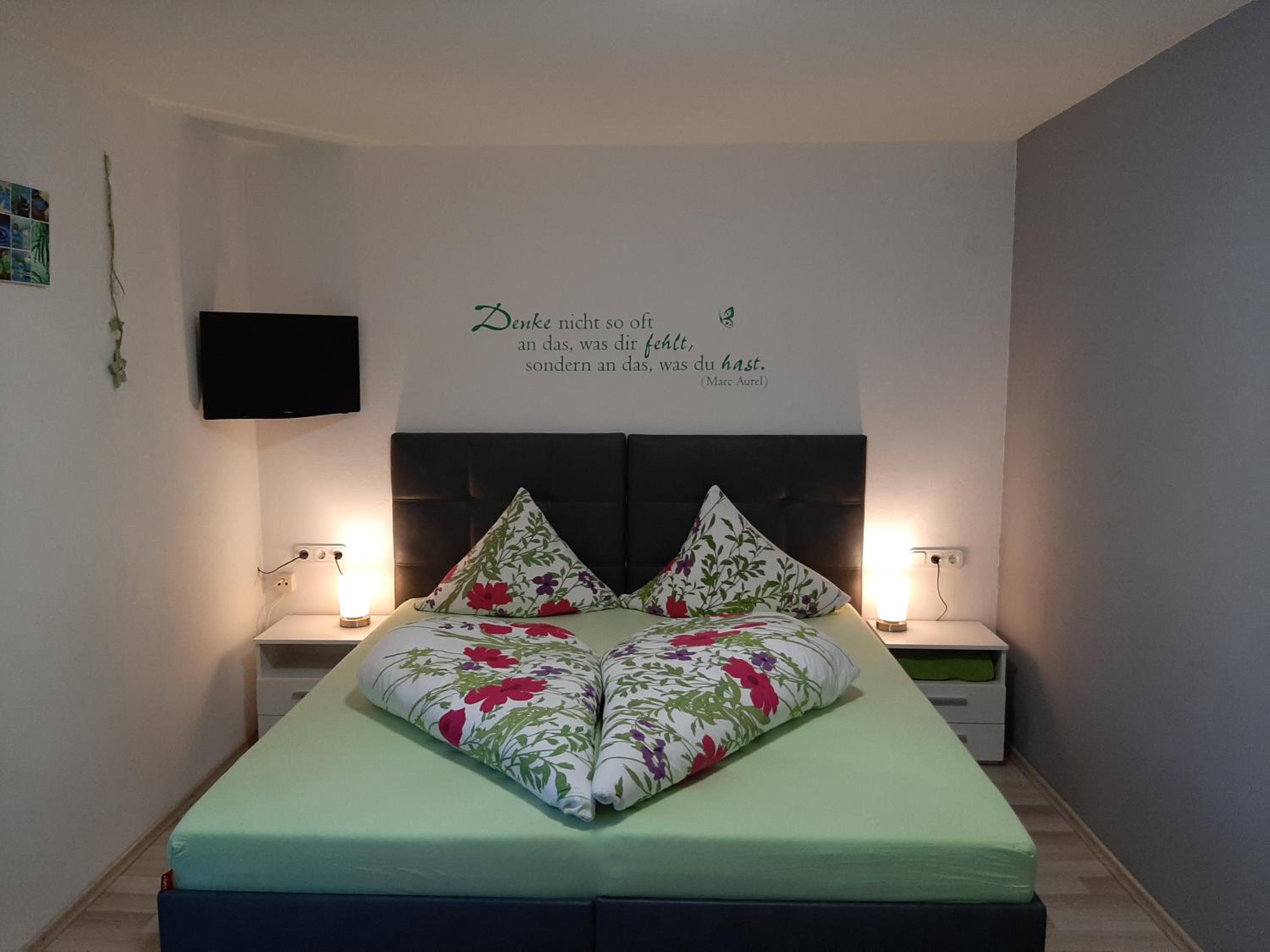 Tolles Familienzimmer, das sogar in zwei separate Schlafzimmer unterteilt war. Ruhig und sauber, bequeme Betten. Der optional nutzbare Minikühlschrank war sehr hilfreich, da wir auf der Durchreise waren und den Rest unseres Reiseproviantes über Nacht kühl stellen konnten. Unsere Kinder haben sich über den Garten mit Trampolin gefreut. Gutes Frühstück sowie nette und unkomplizierte Inhaber.