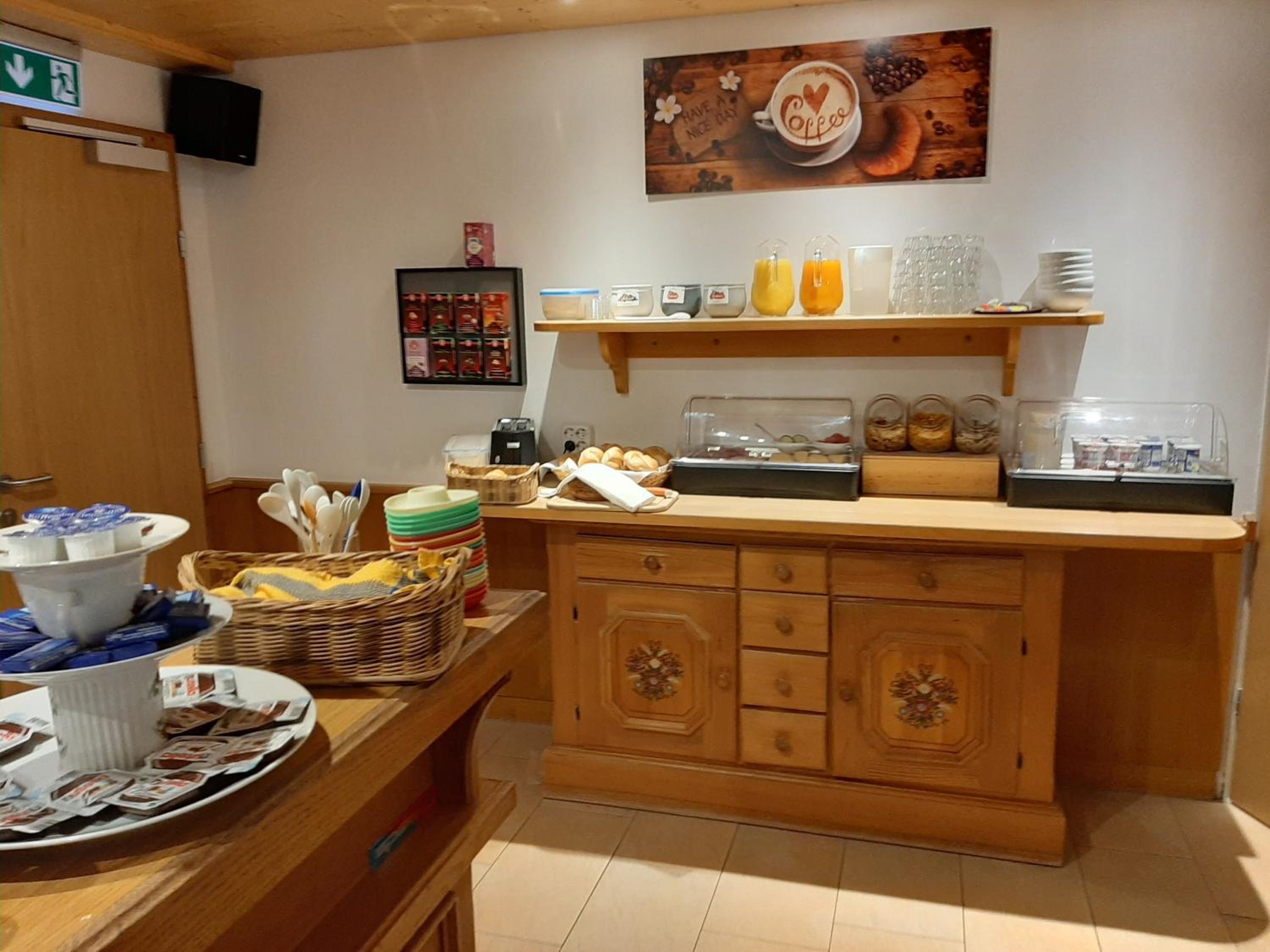 Guests can relish a hearty breakfast spread each morning, complete with fresh bread rolls and muesli, while enjoying scenic vistas of the Tyrolean Mountains from the terrace and winter garden.