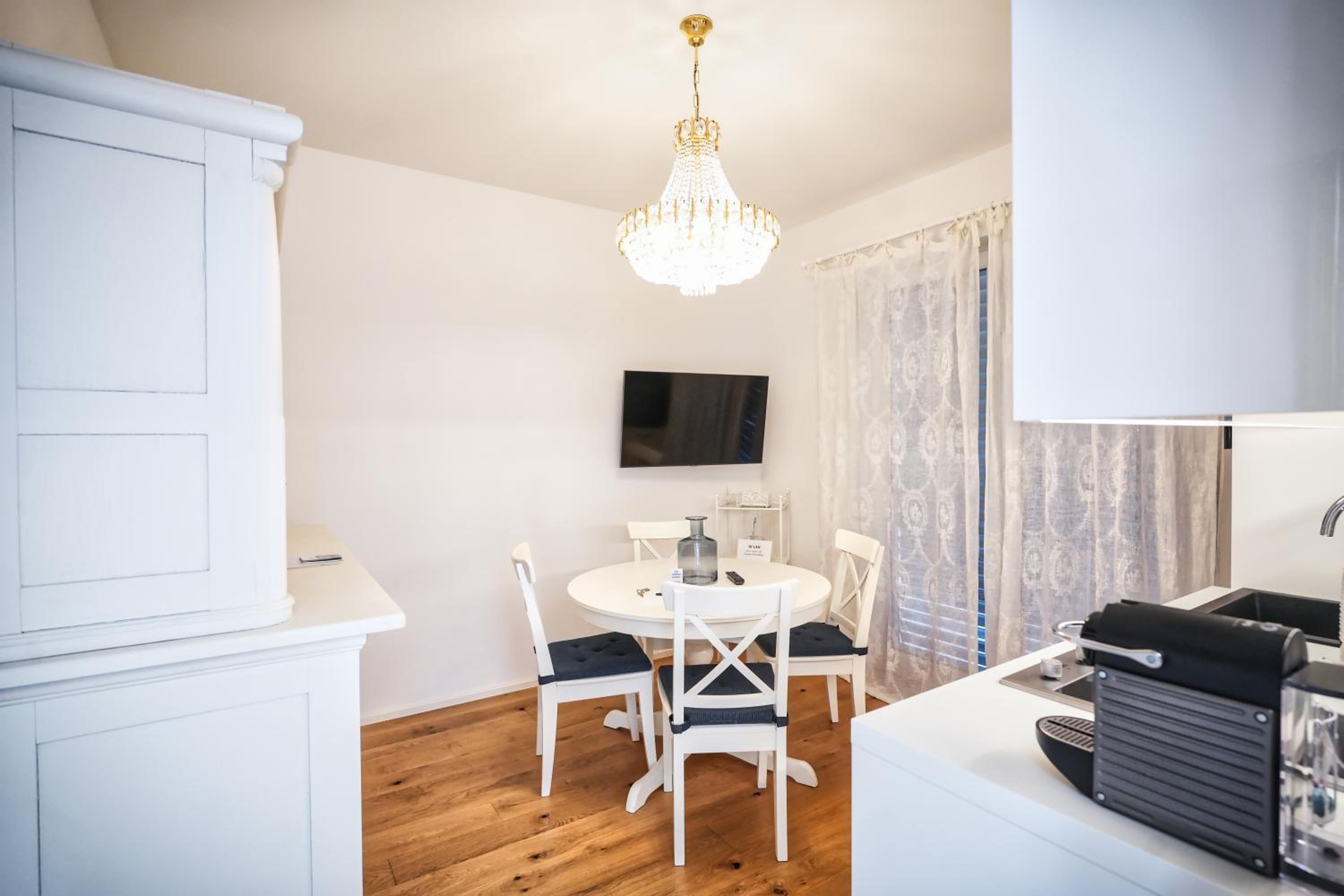 Die zentrale Lage, der Parkplatz, das Apartment ist mit allem sehr gut ausgestattet, sogar Nespresso Maschine incl. Kapseln, kleine Milch und Zucker vorhanden, wunderschönes Geschirr, Eierkocher, Toaster, gefüllter Weinkühlschrank mit aufliegender Liste, Bezahlung für Konsumation in bar vor Ort, super Idee :) der check in funktioniert kontaktlos mittels Schlüsselbox und Code.