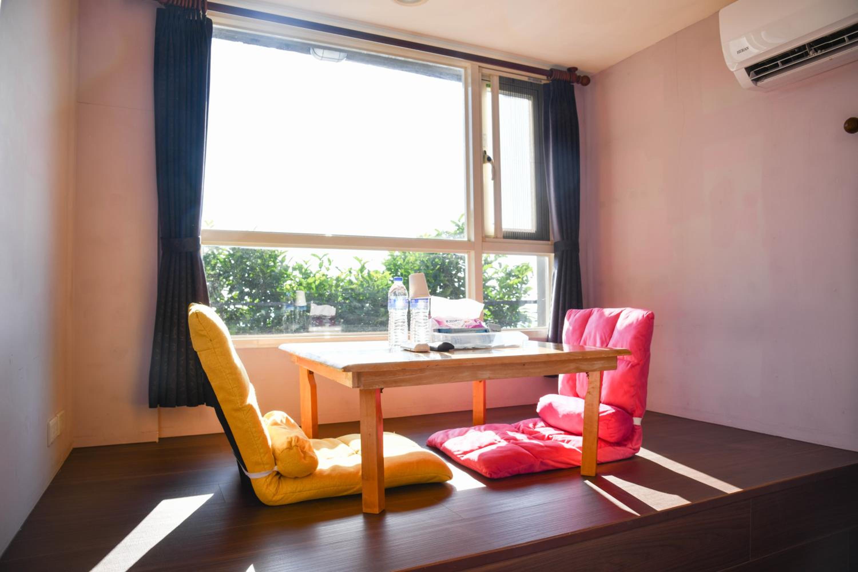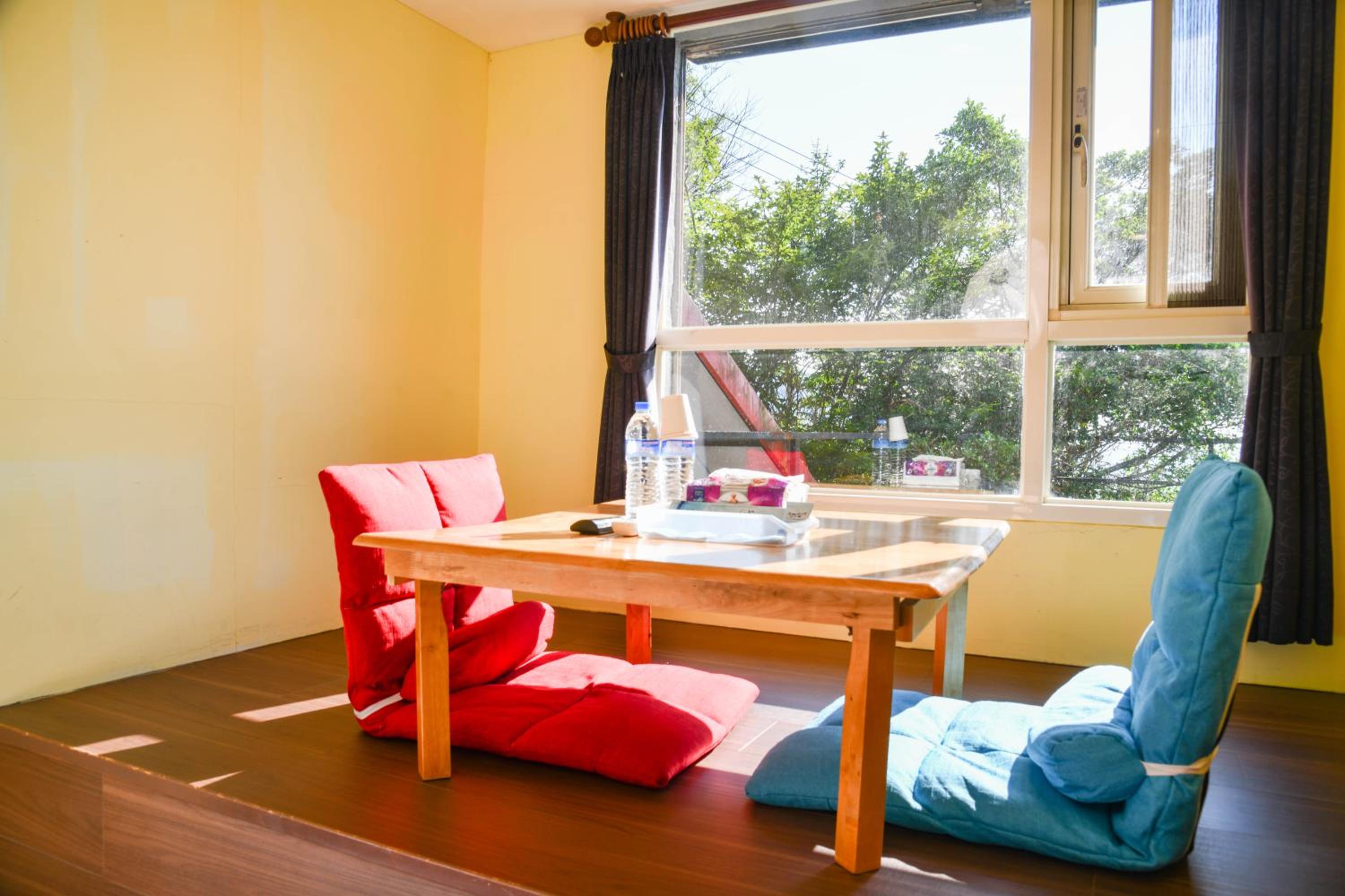 位於山坡上的4人房!需要的走一段階梯,濕氣也稍重,剛進入房間內有一些霉味,後來開了暖氣有改善!