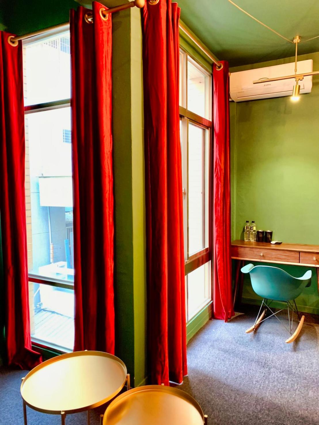 紅配綠的裝潢…
