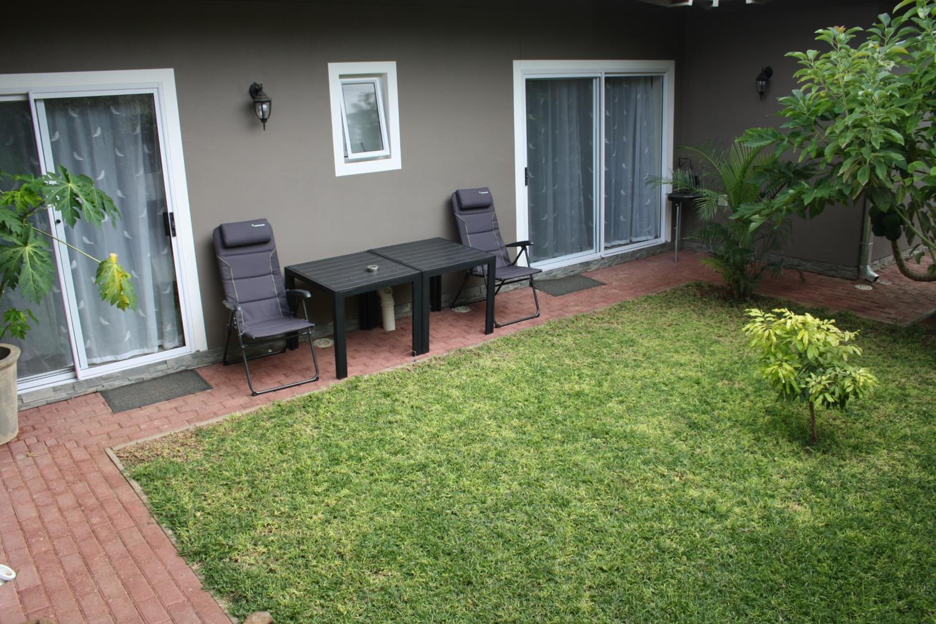 Unwind in the peaceful outdoor spaces of Haus Mopanie, perfect for enjoying a cup of coffee in the morning or a glass of wine in the evening. The lush surroundings provide a calming atmosphere for a truly rejuvenating retreat.