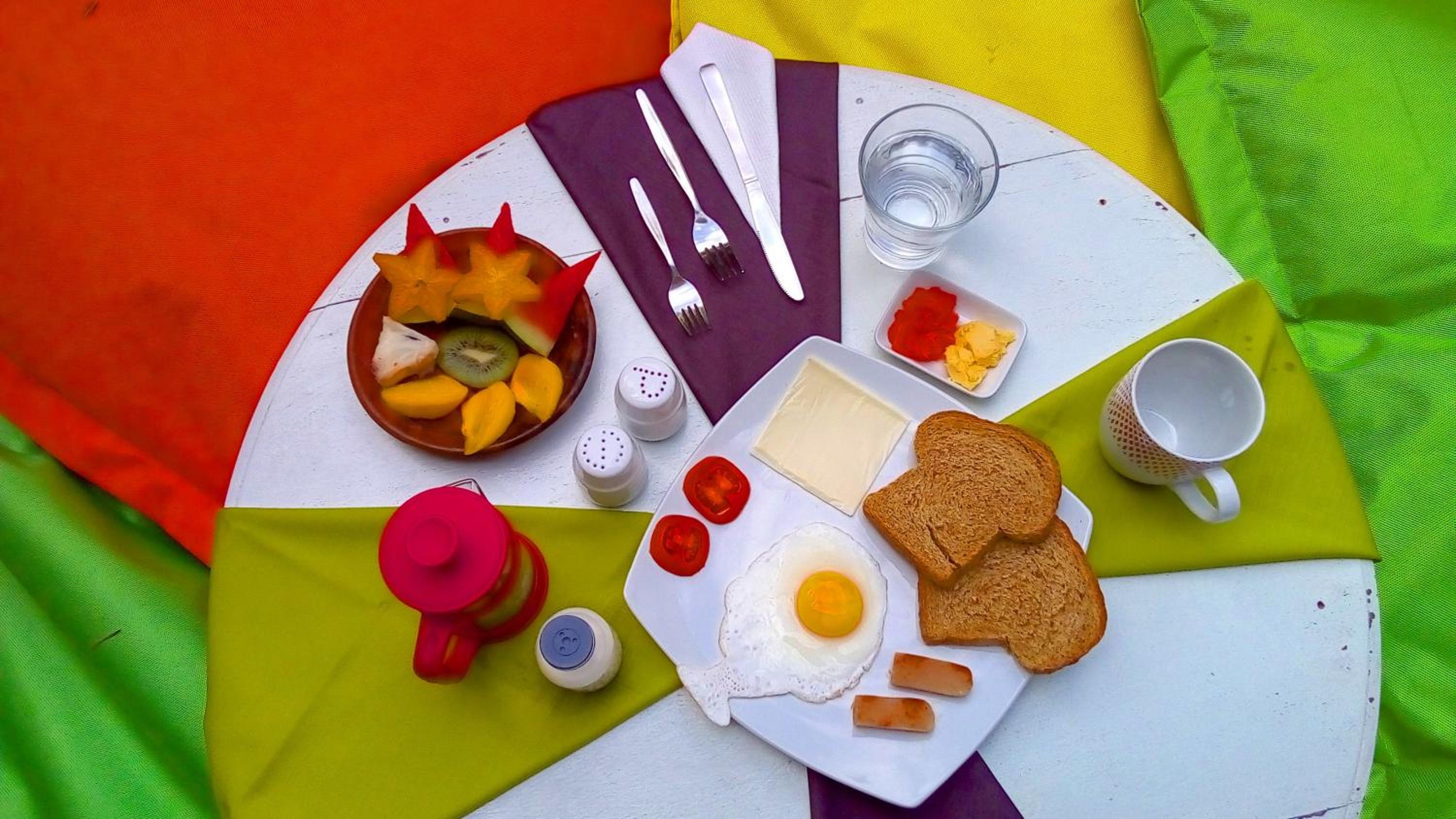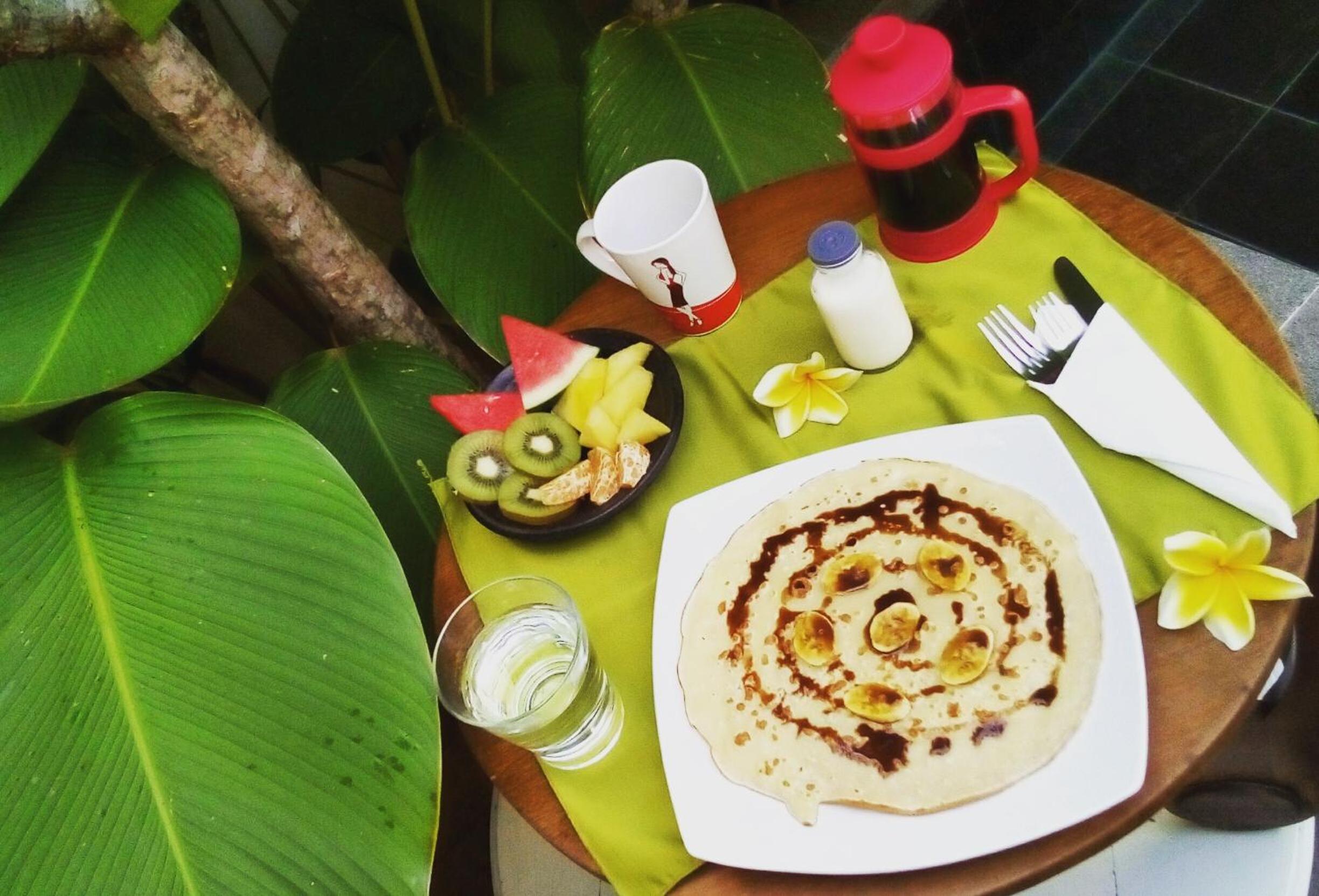 Je kunt kiezen wat je voor ontbijt wil hebben, alleen tijdens de ramadan is er geen indonesisch ontbijt, wel pannekoek met banaan of toast met jam en een gebakken ei.