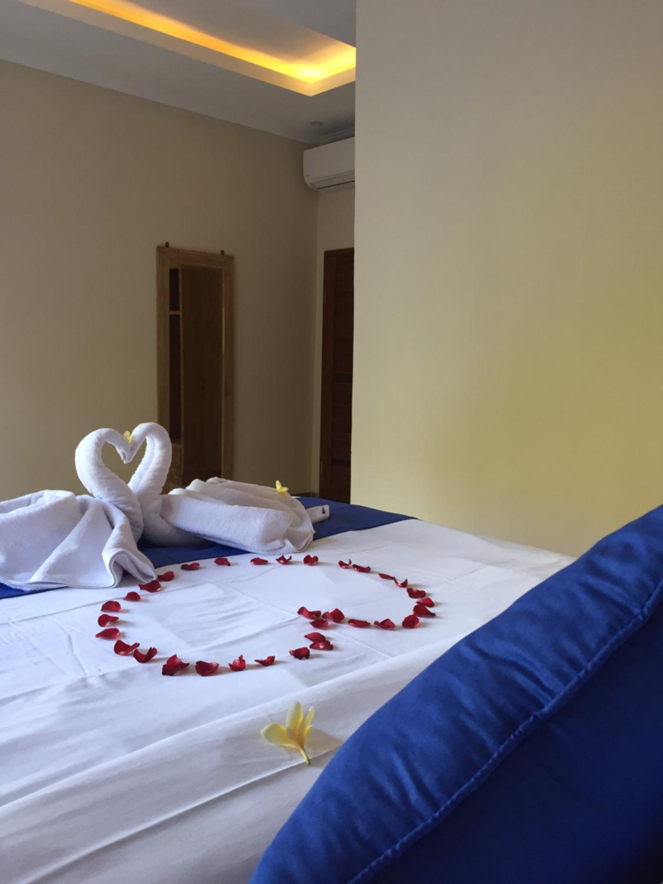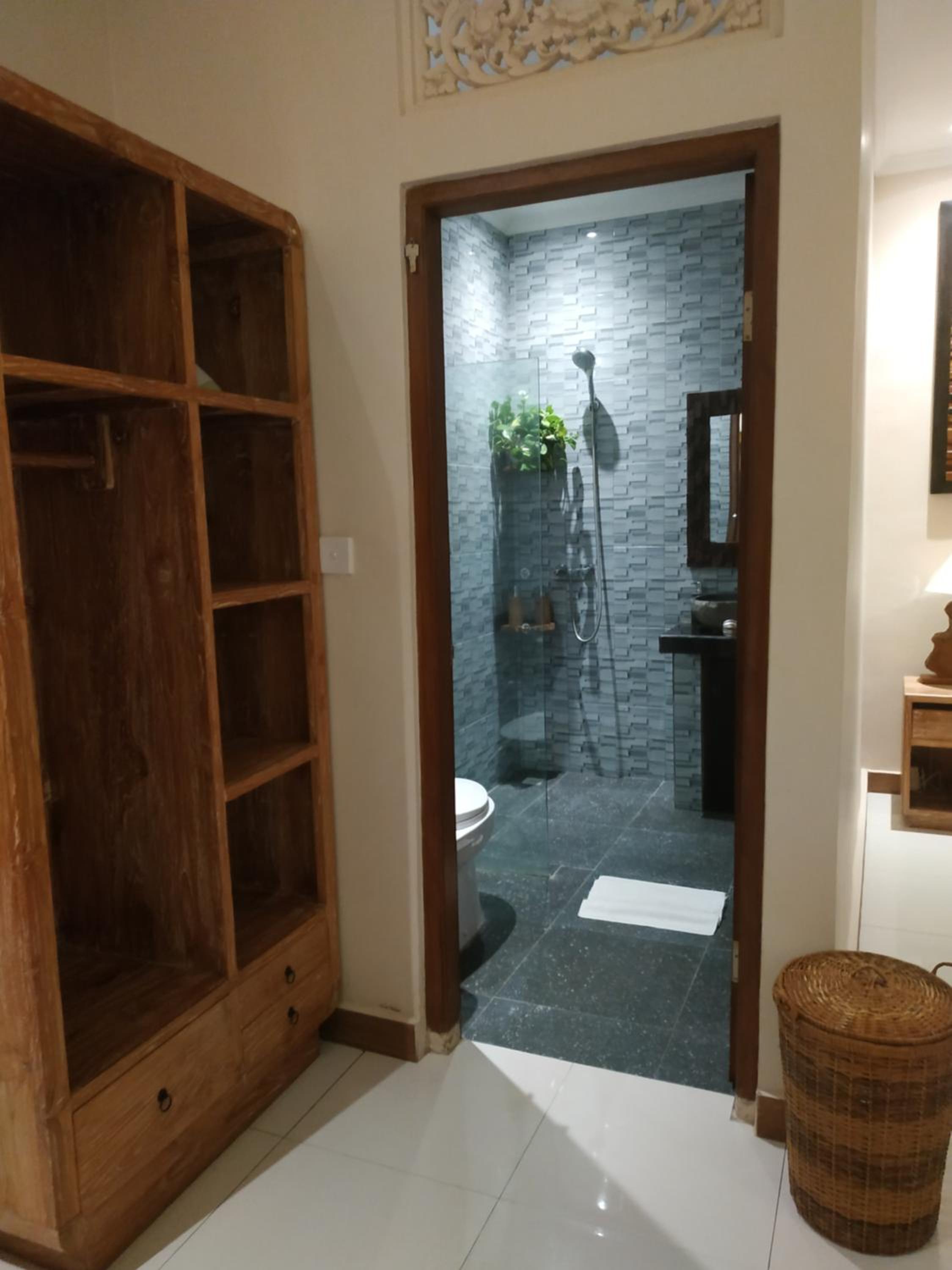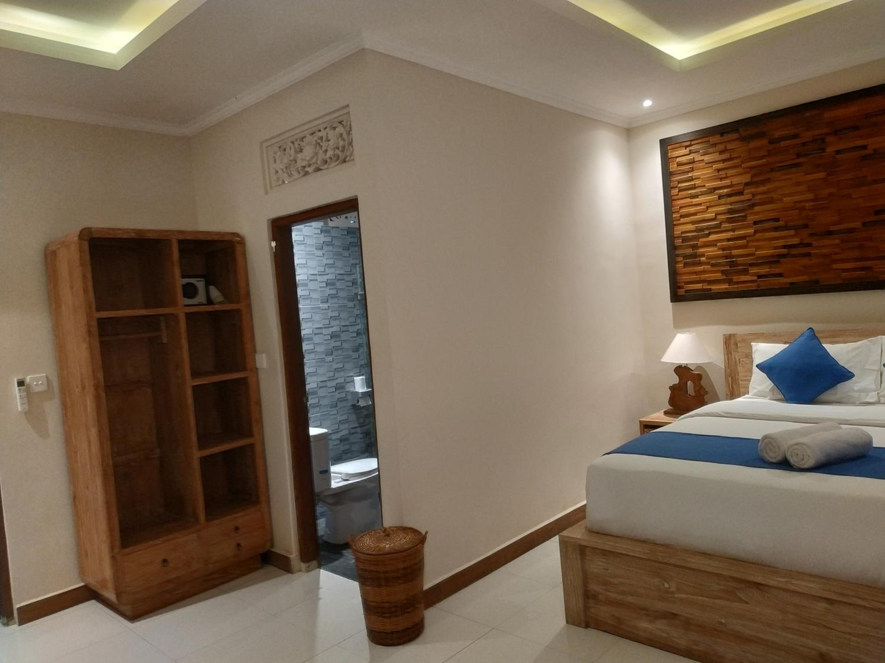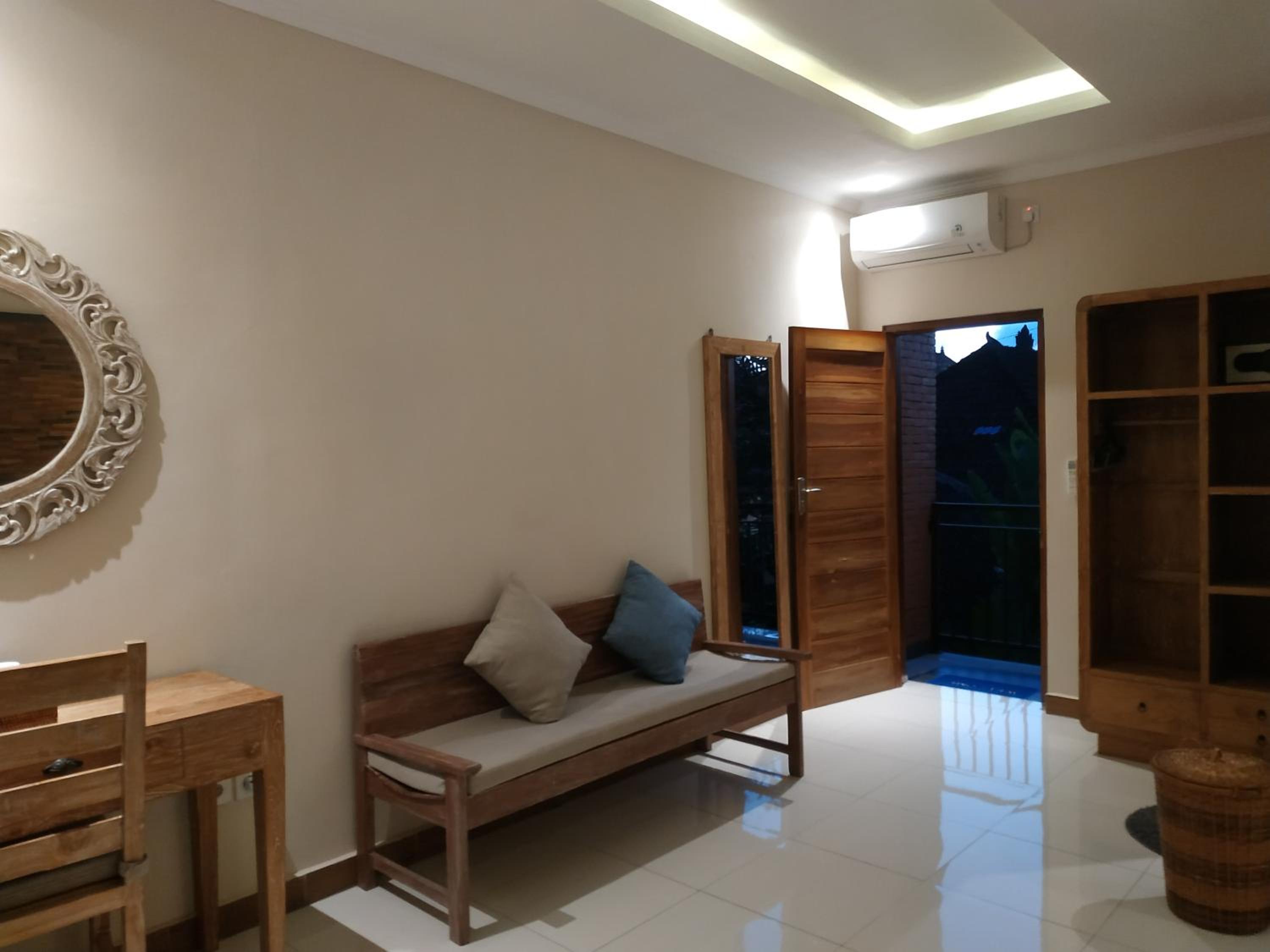 В Cahaya есть все необходимые удобства, включая рабочий столик, фен, сейф, чайник, посуда, салфетки, вешалки, много зеркал, туалетные принадлежности в ванной. Номер просторный и чистый.