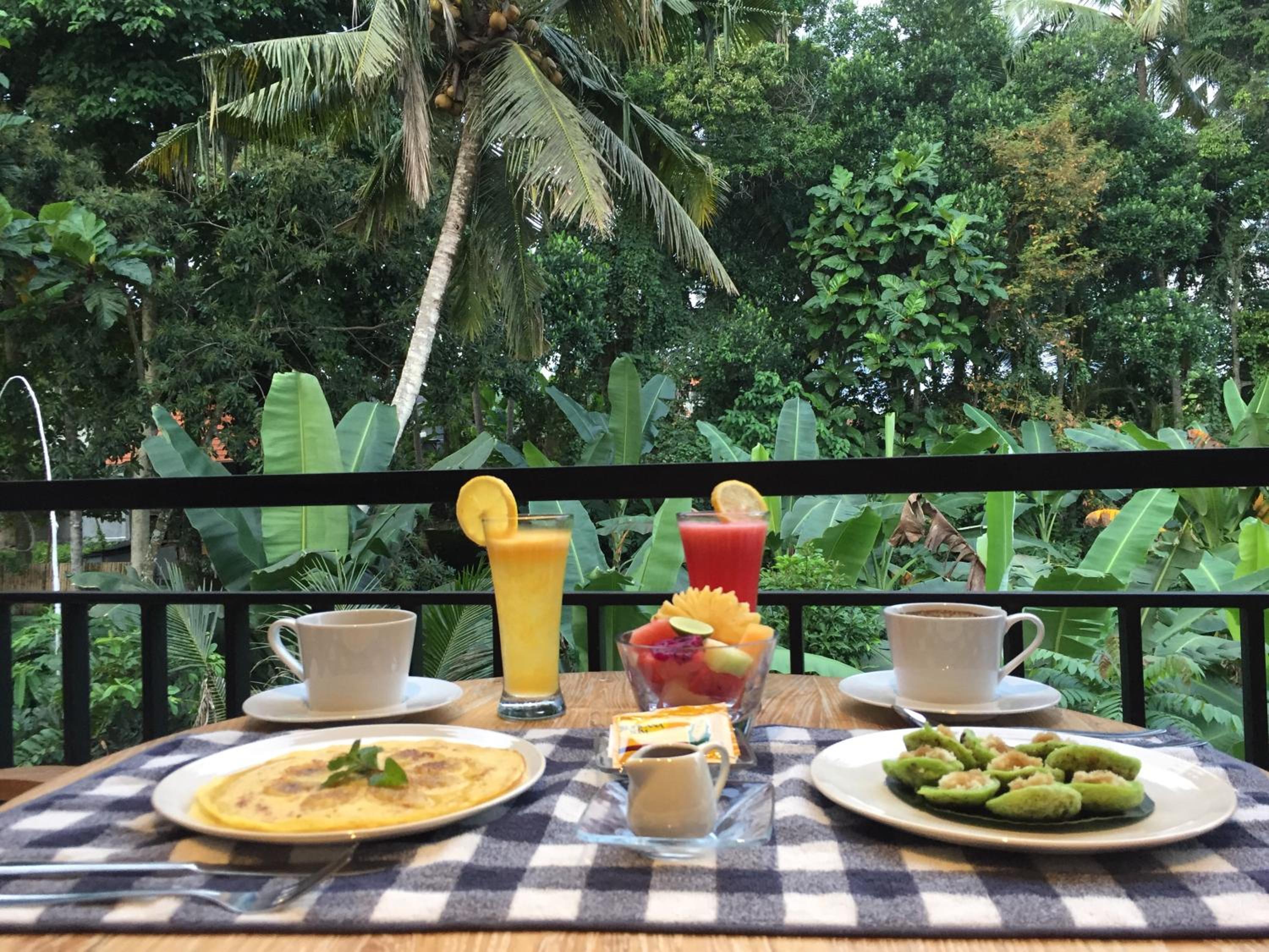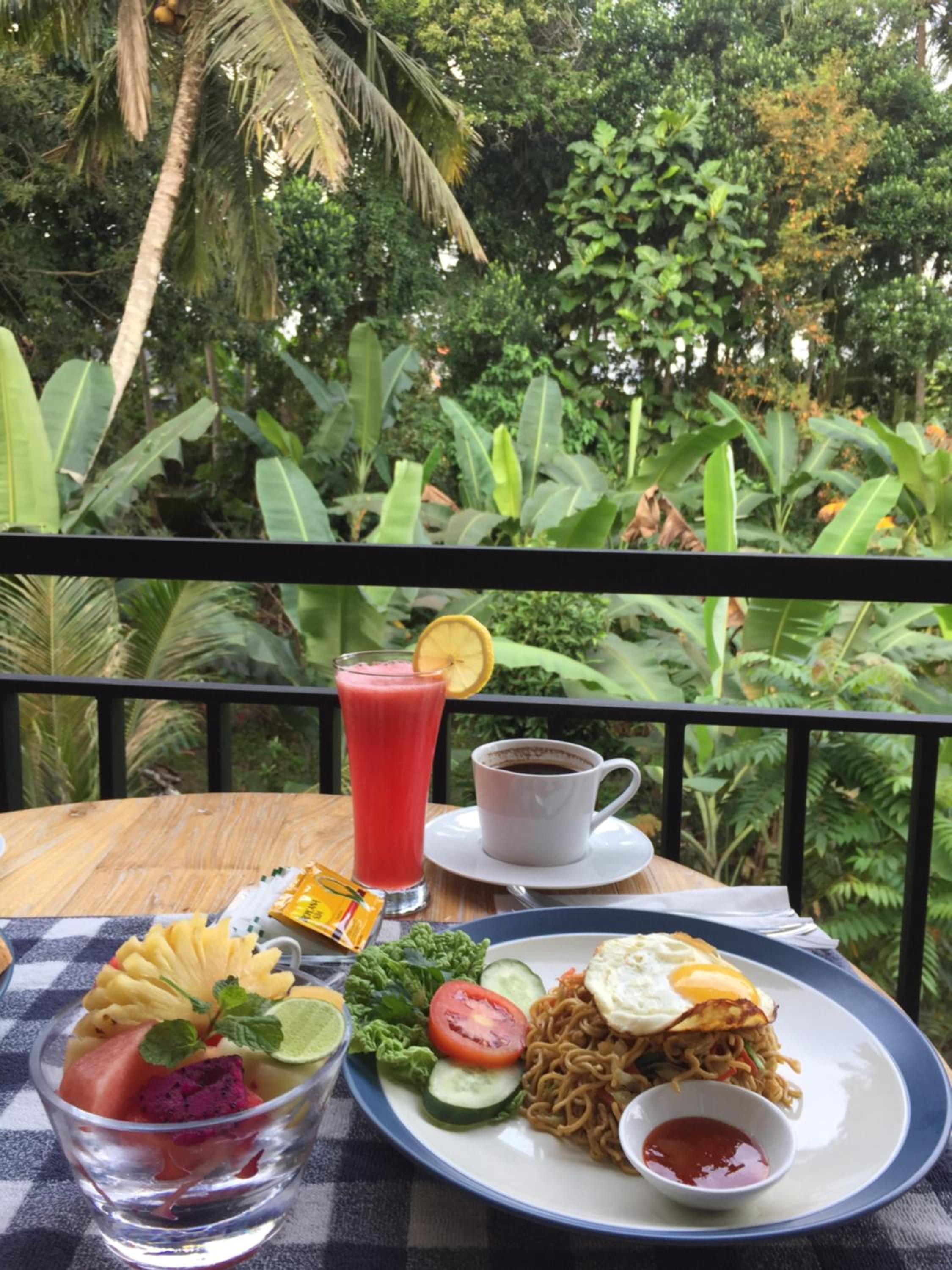 Особенно понравилось, что хозяин Ваян сам связался по WhatsApp, и всегда был на связи. Каждый вечер он спрашивал про завтрак, и на следующий день тот уже был готов к оговоренному времени. При желании можно было позавтракать на террасе с видом на джунгли, а в солнечные дни - занести еду в номер. Бананаблин - пальчики оближешь :)