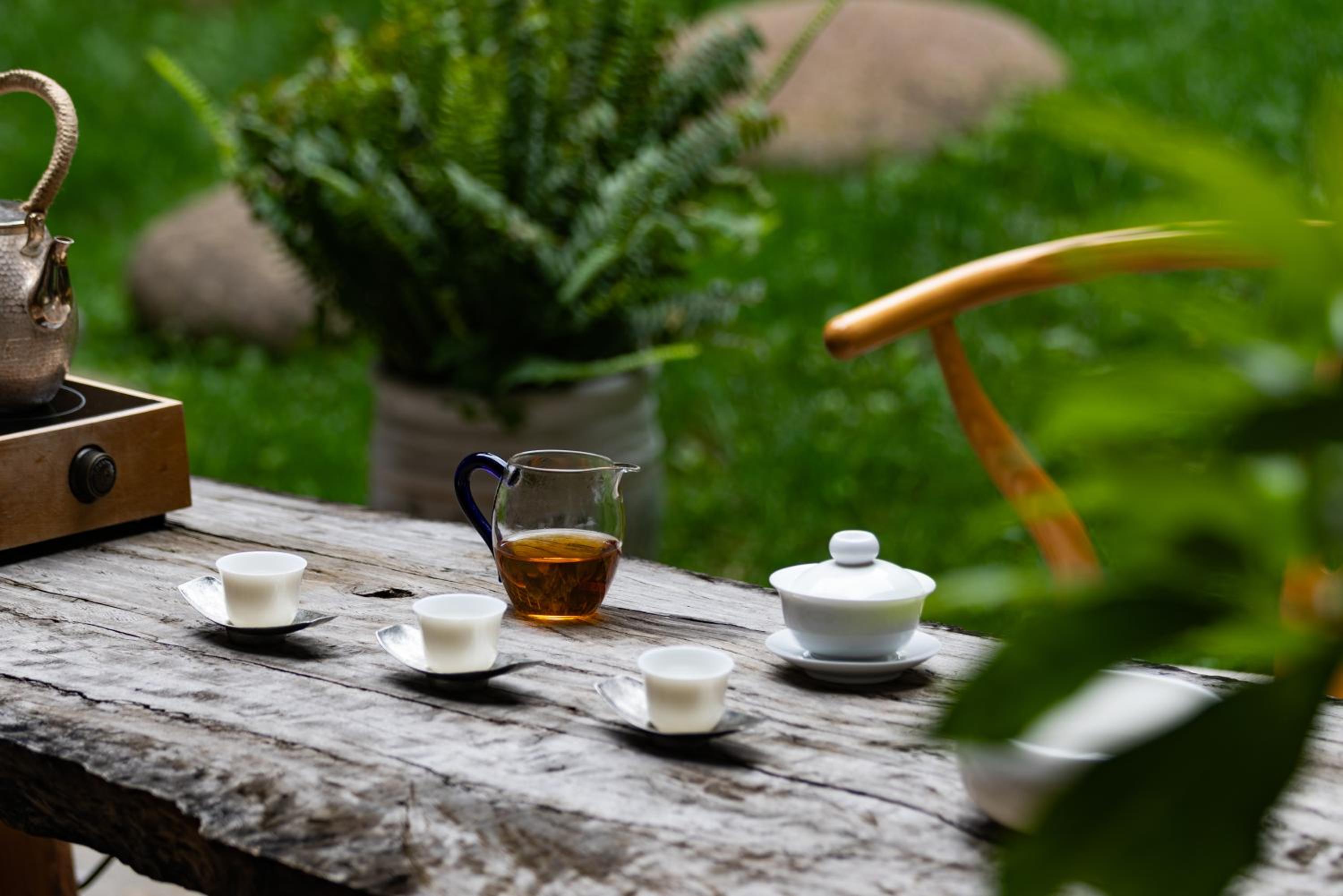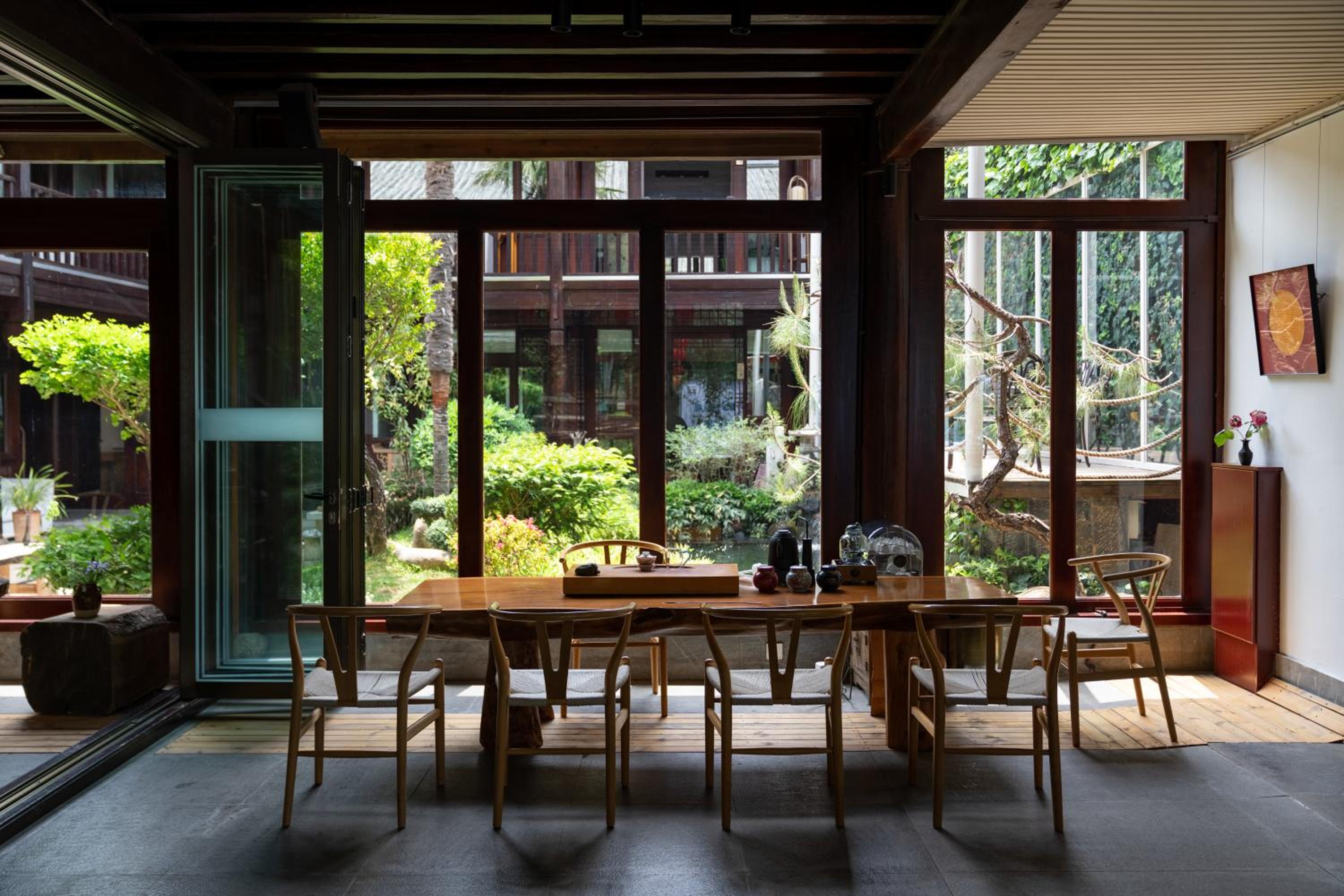 Offenes Haus mit grünem schönen Innenhof, Typische chin. Architektur. Tagüber gibt es guten Tee.