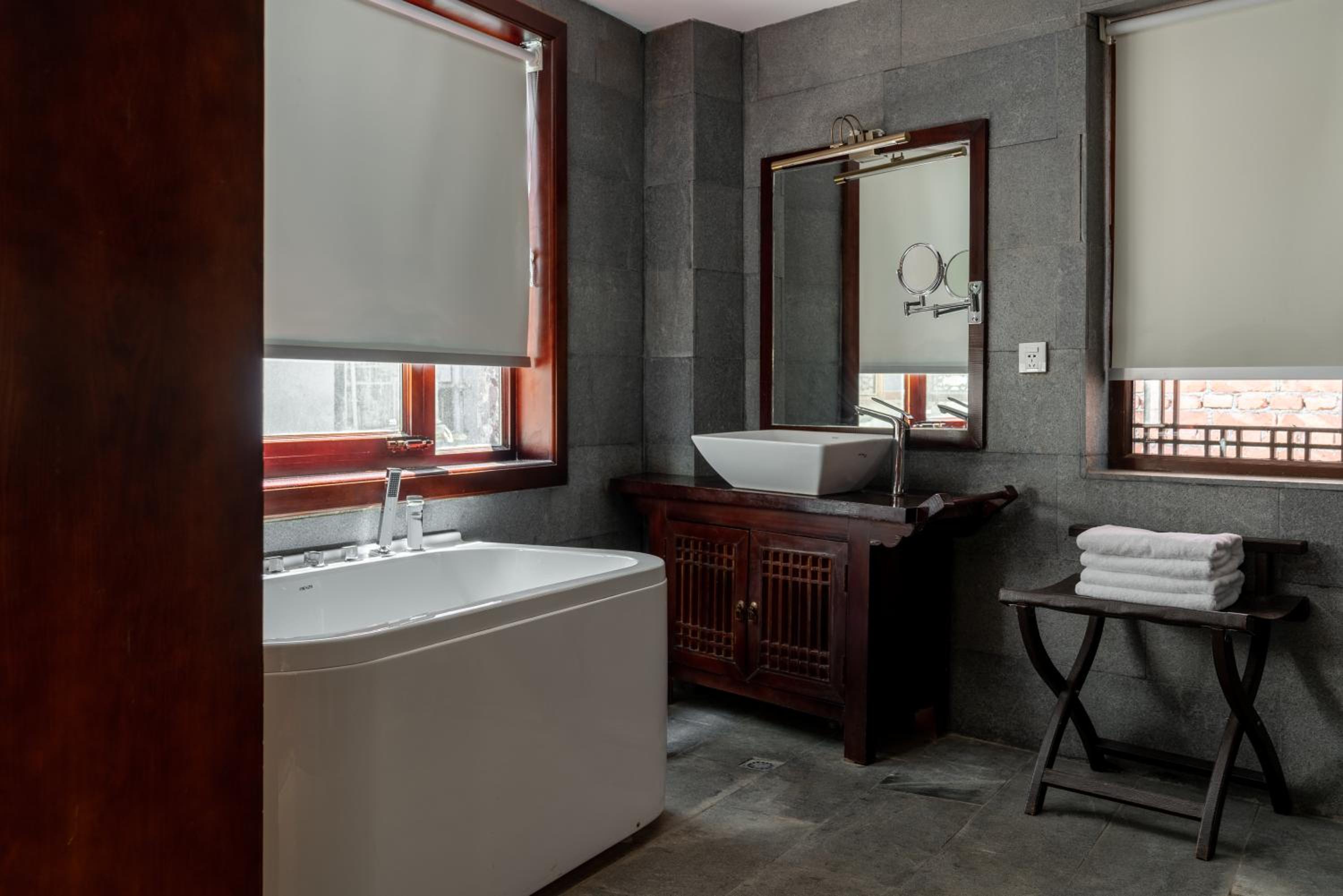 Voorzieningen niet helemaal op het niveau die je bij een kamer in deze categorie en prijs verwacht. Bijvoorbeeld geen koelkast, geen badjassen en karig ontbijt. Geen groot probleem. Maar we kregen voor vergelijkbare prijs vaak een betere kamer in China.