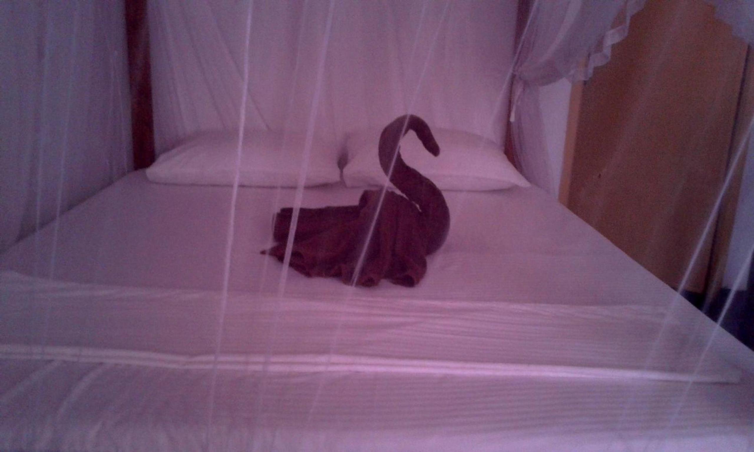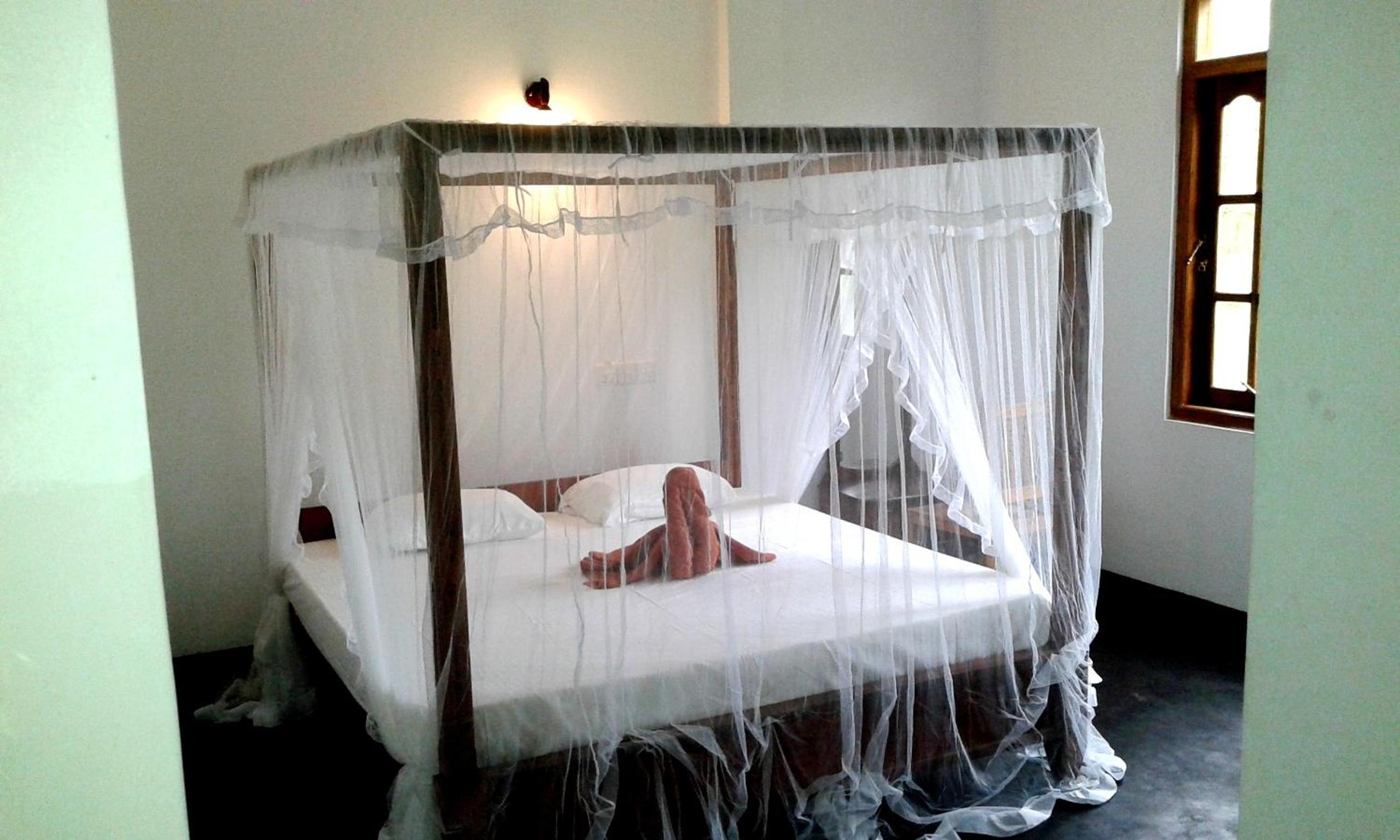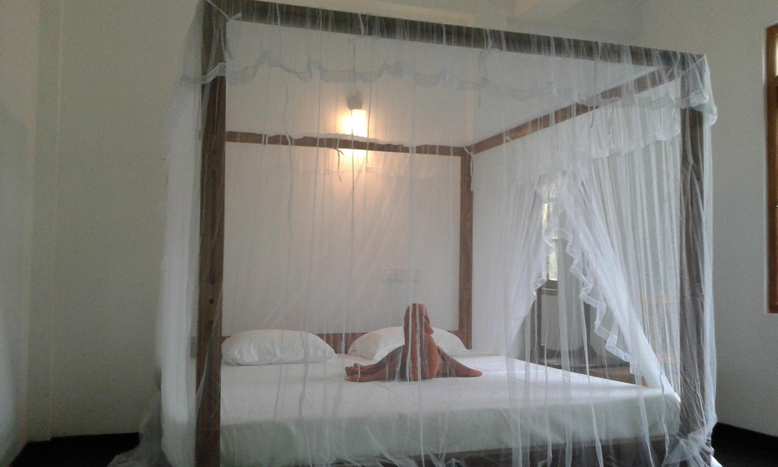 Mosquito net over bed