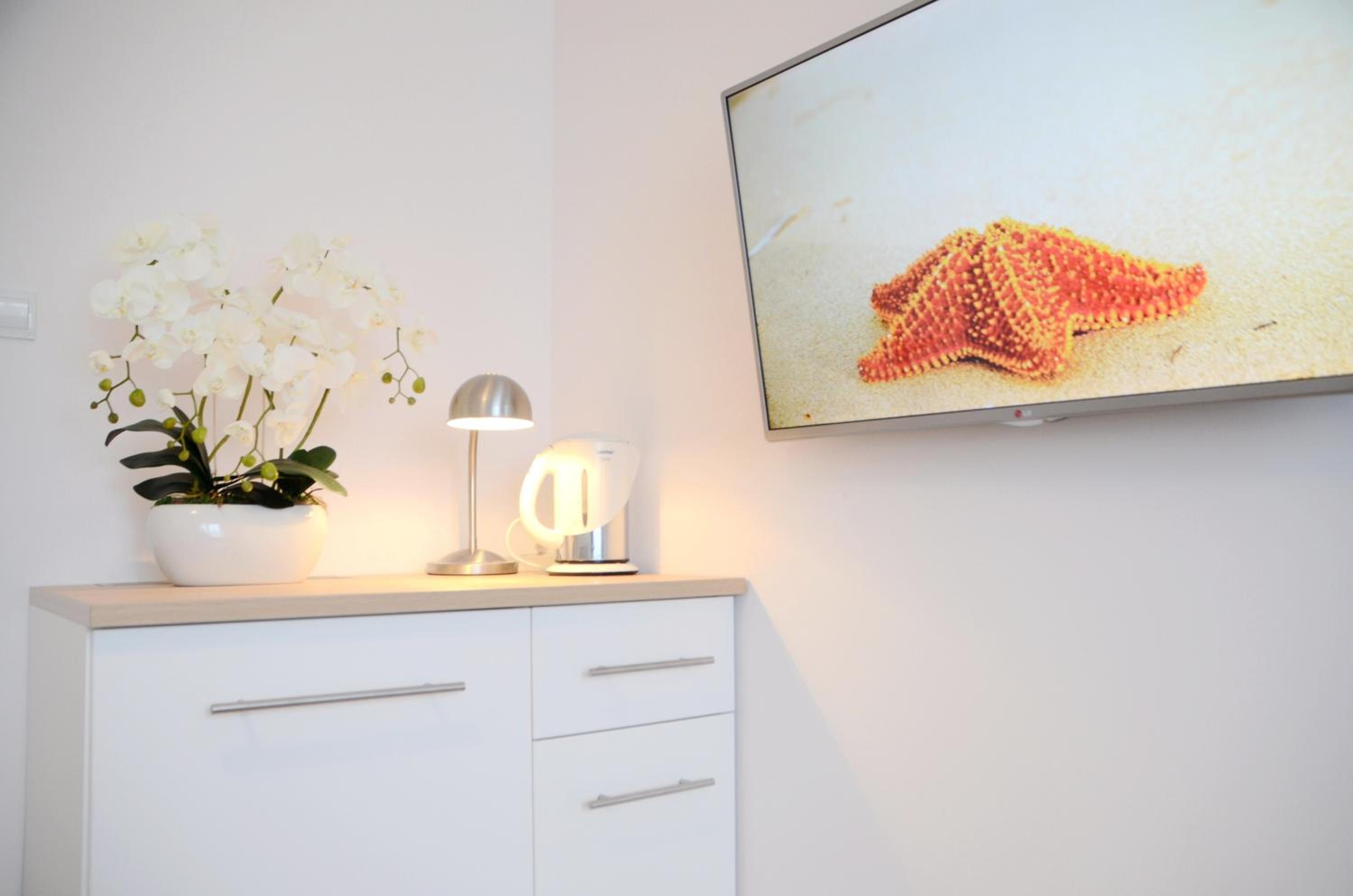 Bałtyckie-Hel offers modern rooms with a flat screen Smart TV, a spacious refrigerator, and a kettle for your convenience. Kitchenware is also provided, ensuring a comfortable stay.