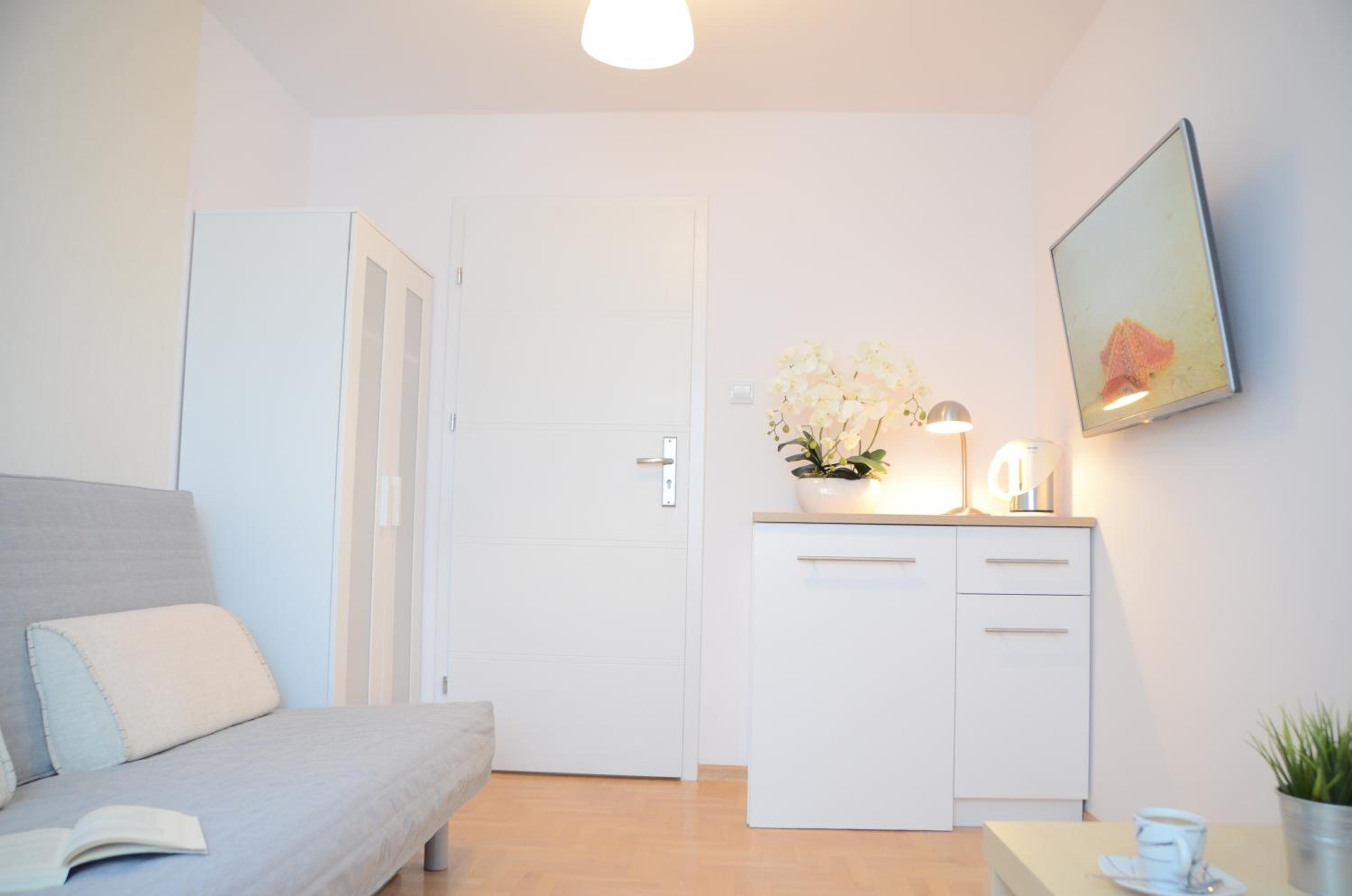 Lokalizacja w cichej okolicy, bardzo blisko głównych atrakcji. Łazienka i aneks kuchenny do dyspozycji dla 2 pokojów więc prawie jak prywatne. Ciepło :)