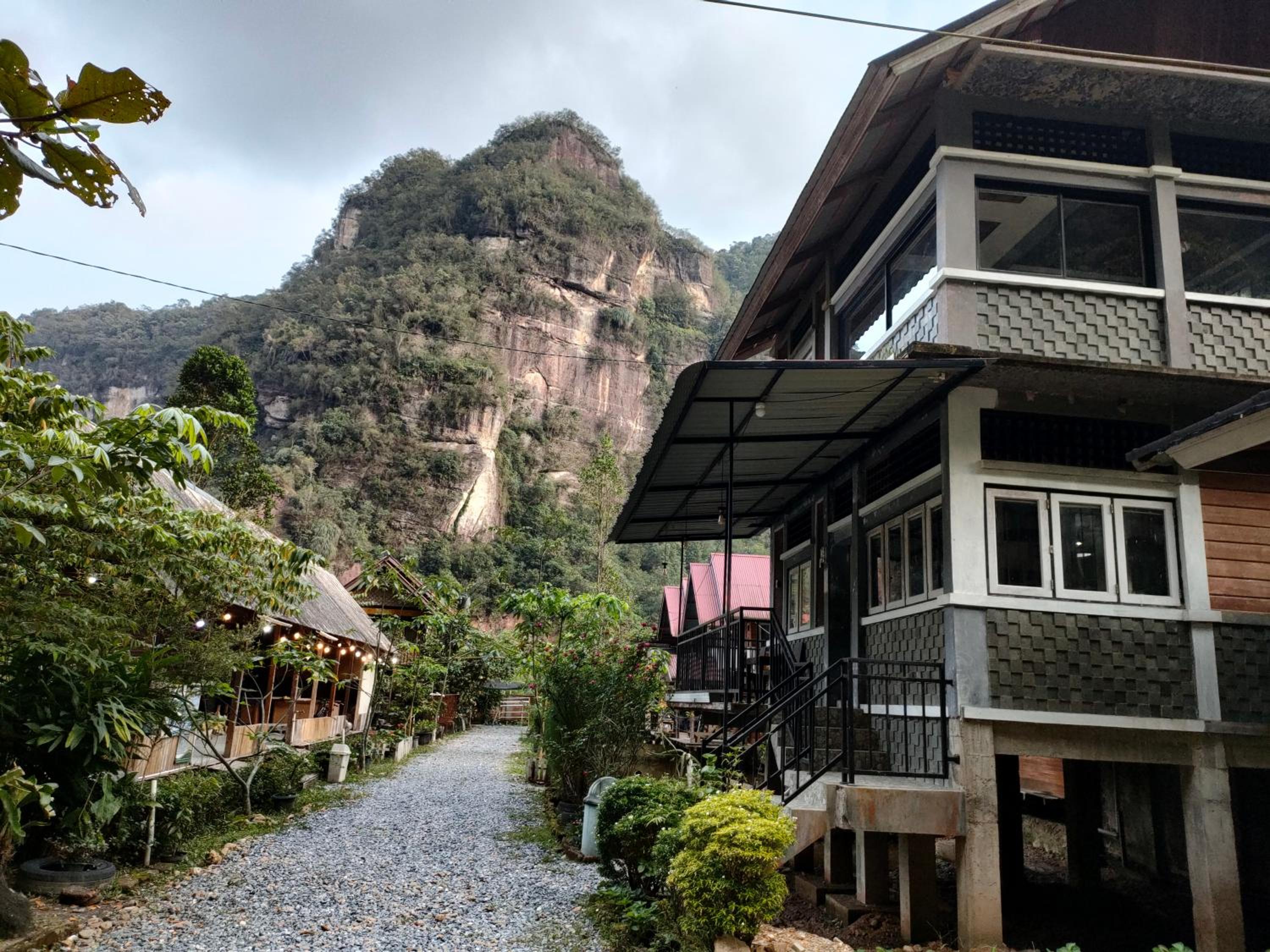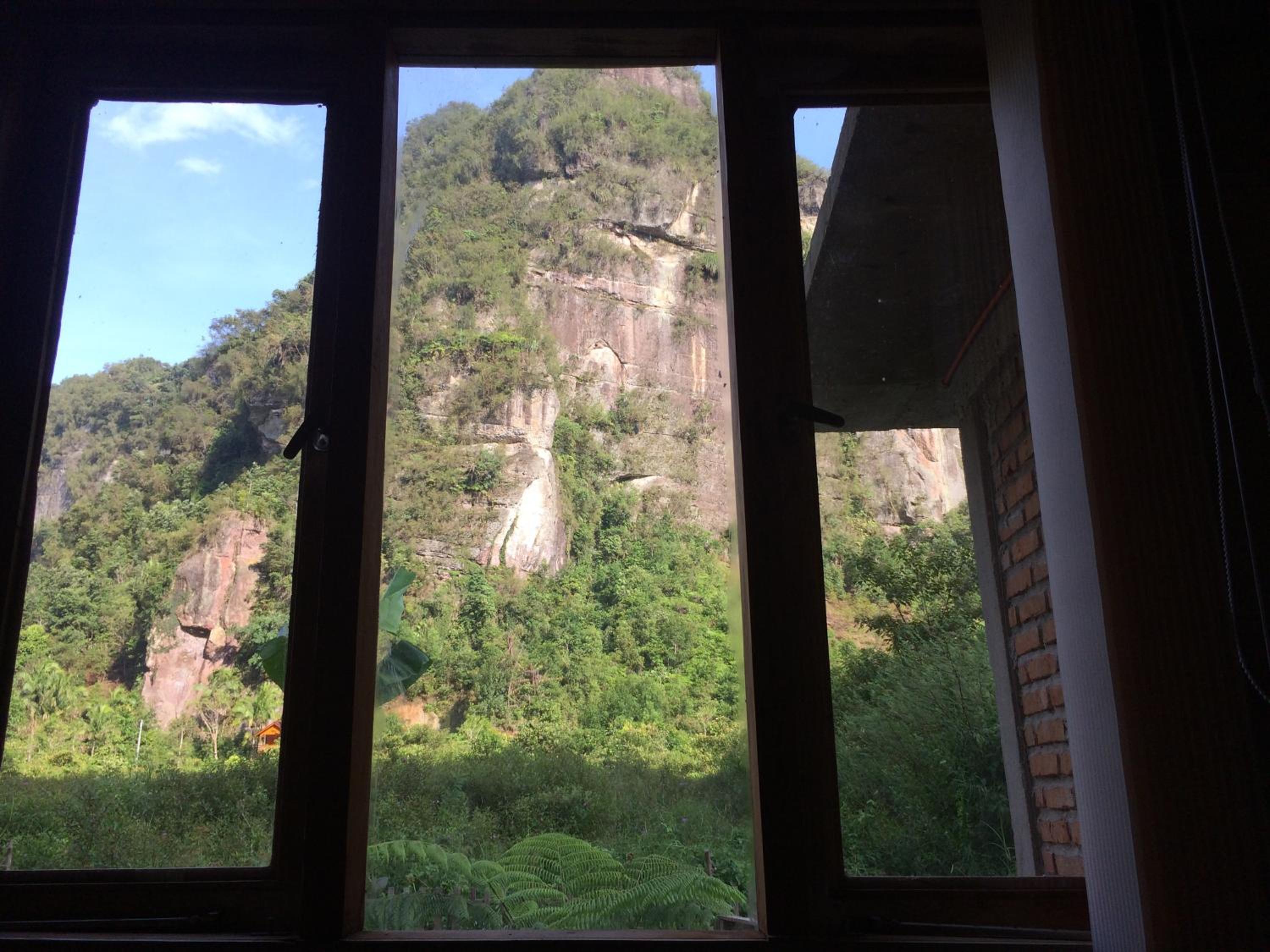 The room was spacious and comfortable, hot water and has an amazing view up to the limestone cliffs.