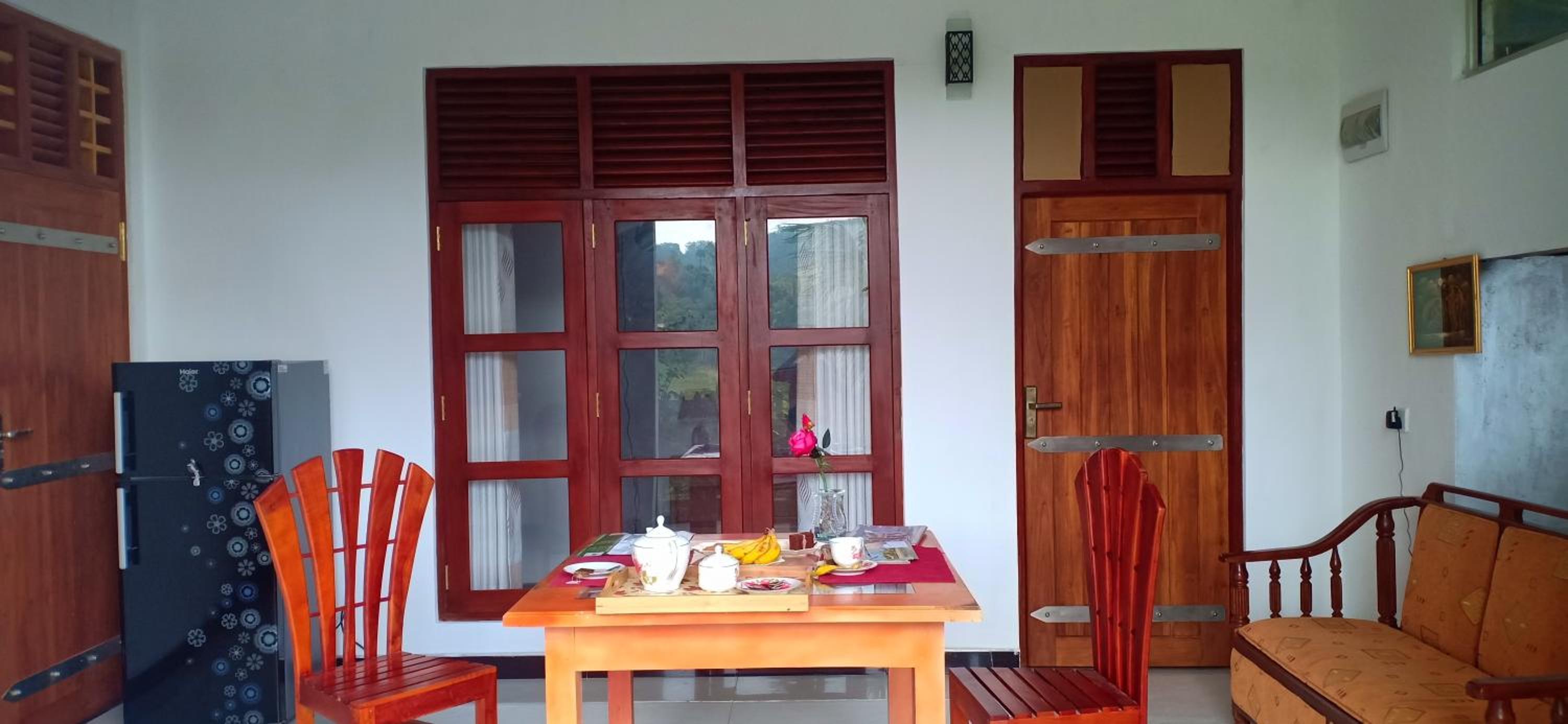 While this property is dislocated from Ella centre, I personally would have the incredible views from the big patio over the hussle and rustle of the town anytime. It’s just a 10mins walk along the rails away, and I even loved adventure in that. You absolutely don’t need A/C in the apartment I’ve stayed at - days are cool with a fan provided and nights are fresh. Bed is comfortable. Homeowners are very nice people, breakfasts are plentiful.