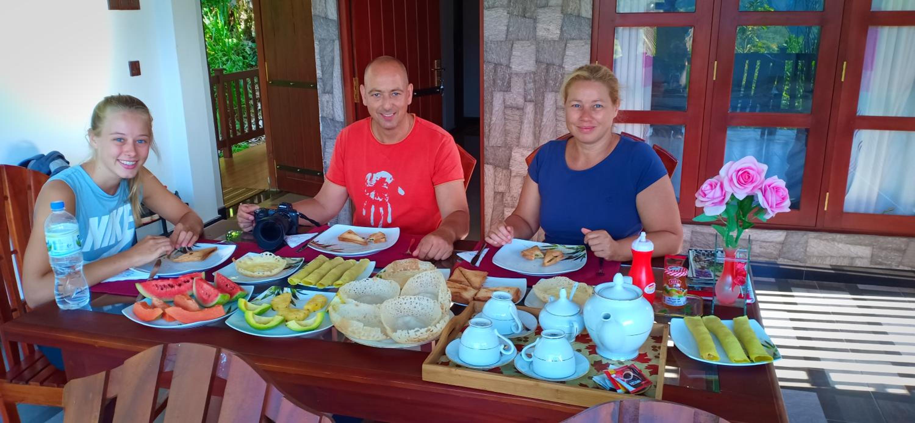 The Family is really nice and helpful! They organised scooters and a tranfer to the next spot. The view from the balcony is amazing! You see a waterfall and the Ella Rock!