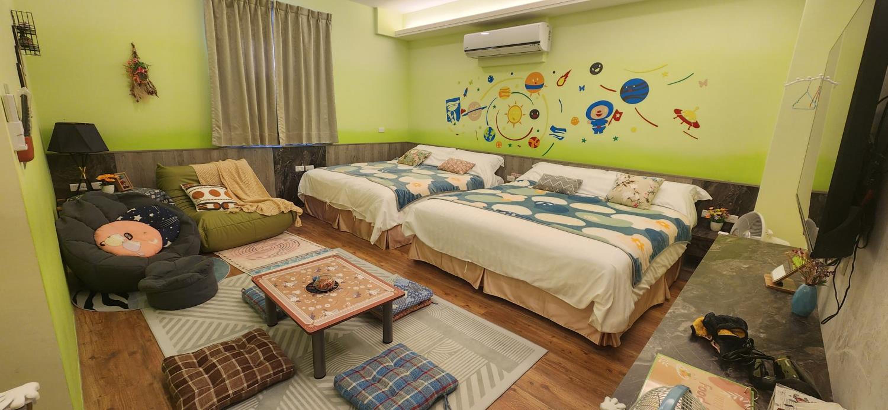 房內整潔,空間舒適,並附有一本附近的美食及景點手冊,很用心地列出各地點的公休時間,以及開車(走路)前往的參考時間,對於規劃行程或是尋找用餐地點十分有幫助