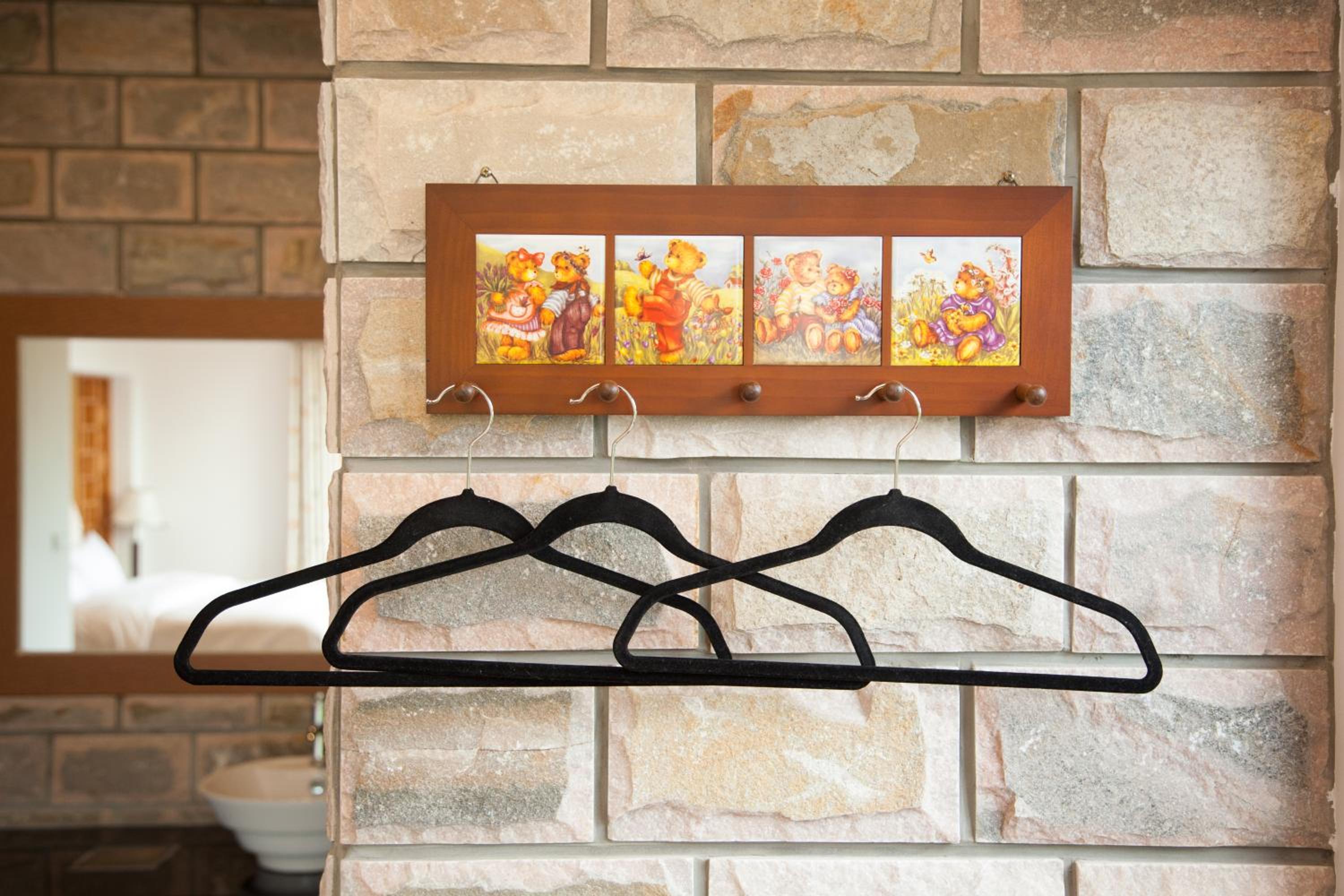 The room is huge, more like an apartment with extra bedding for about 4 more guests (there's a pull-down bed). The balcony upstairs is accessible directly from the bed, and has a view of the (misty) valley where you can hear the sounds of the forest. The huge stone bath was very impressive.