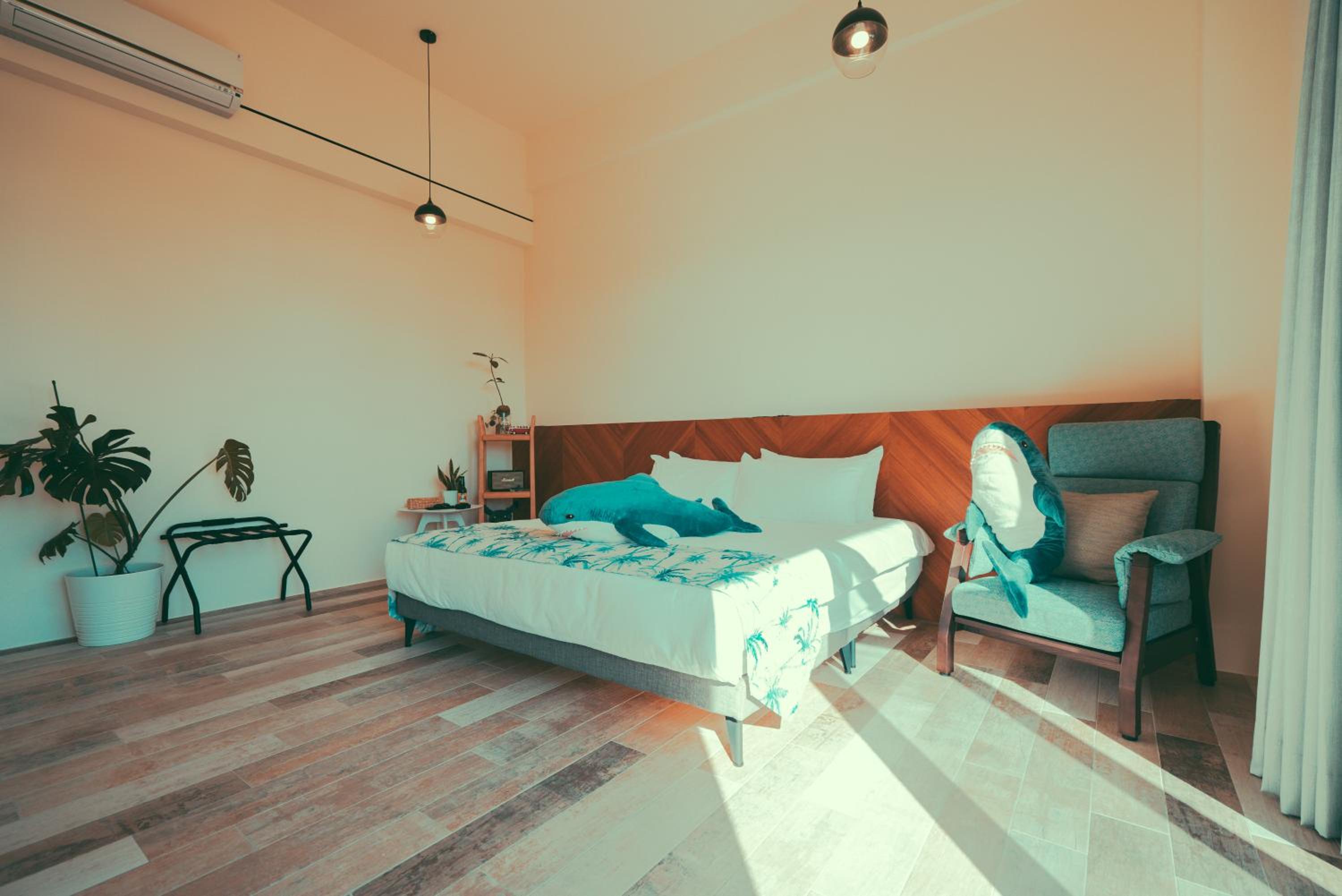 Shark B&B in Hengchun offers cozy accommodation with garden views, a shared lounge, and a relaxing terrace. The units are equipped with modern amenities like air conditioning, flat-screen TV, and a private bathroom, ensuring a comfortable stay for guests.