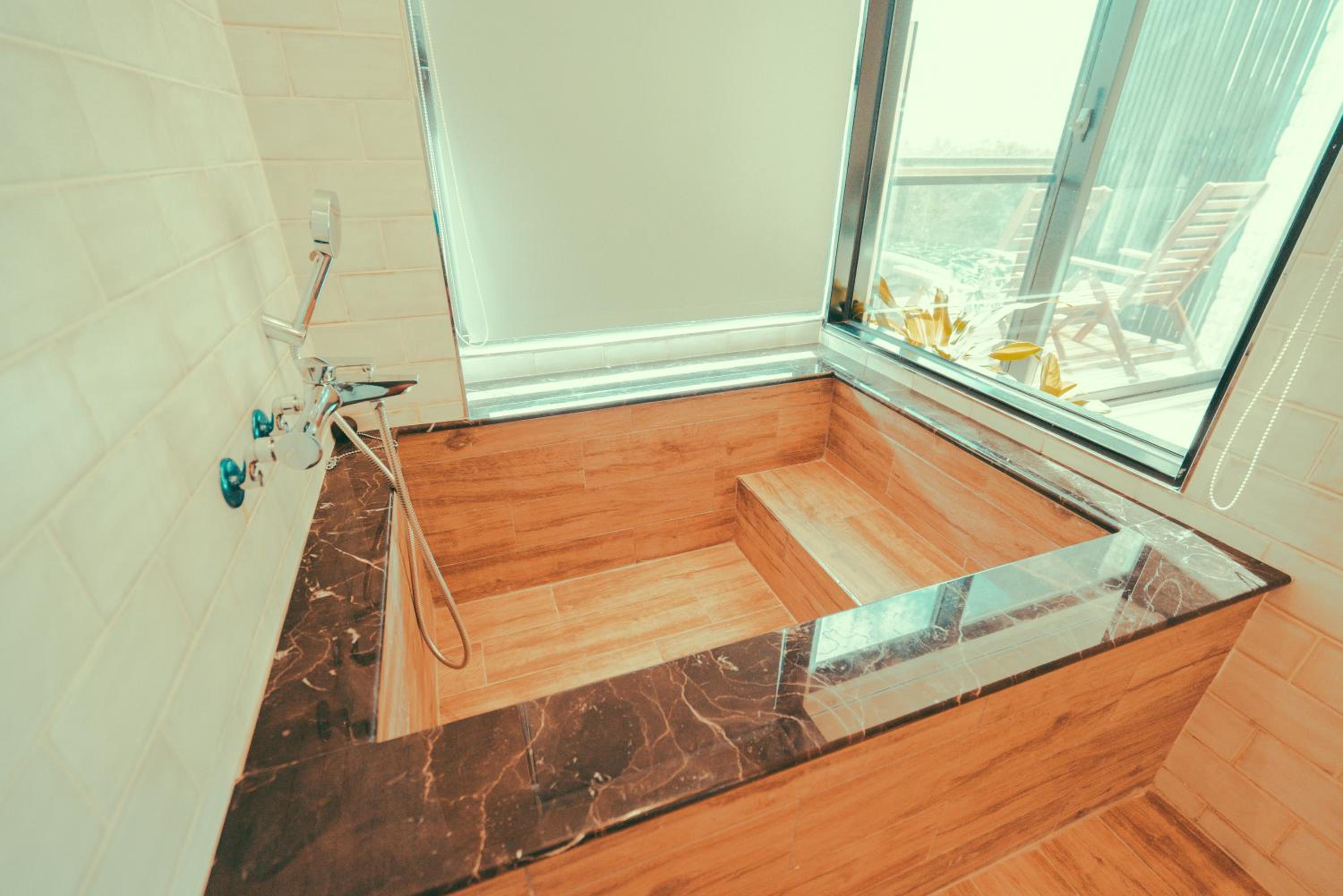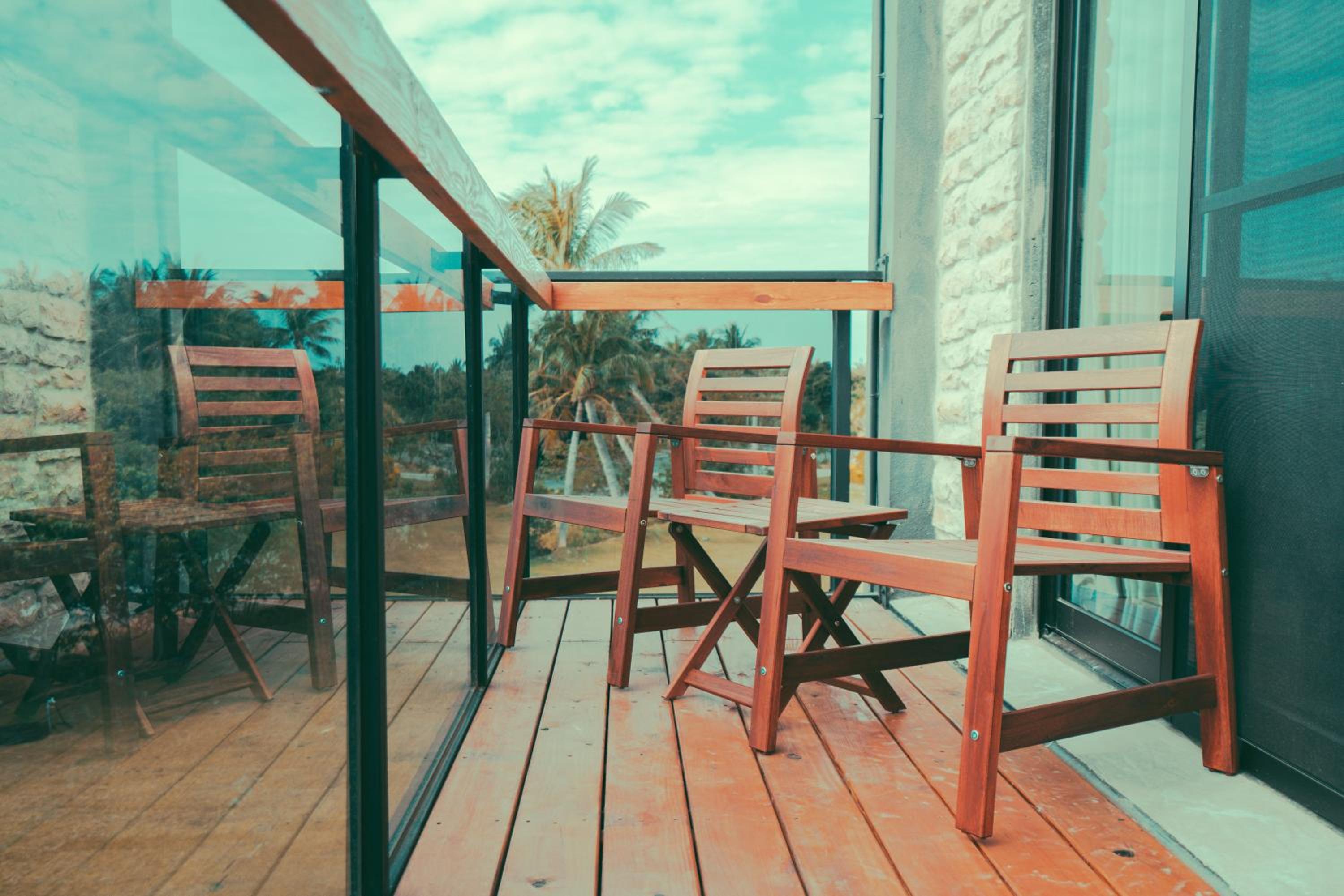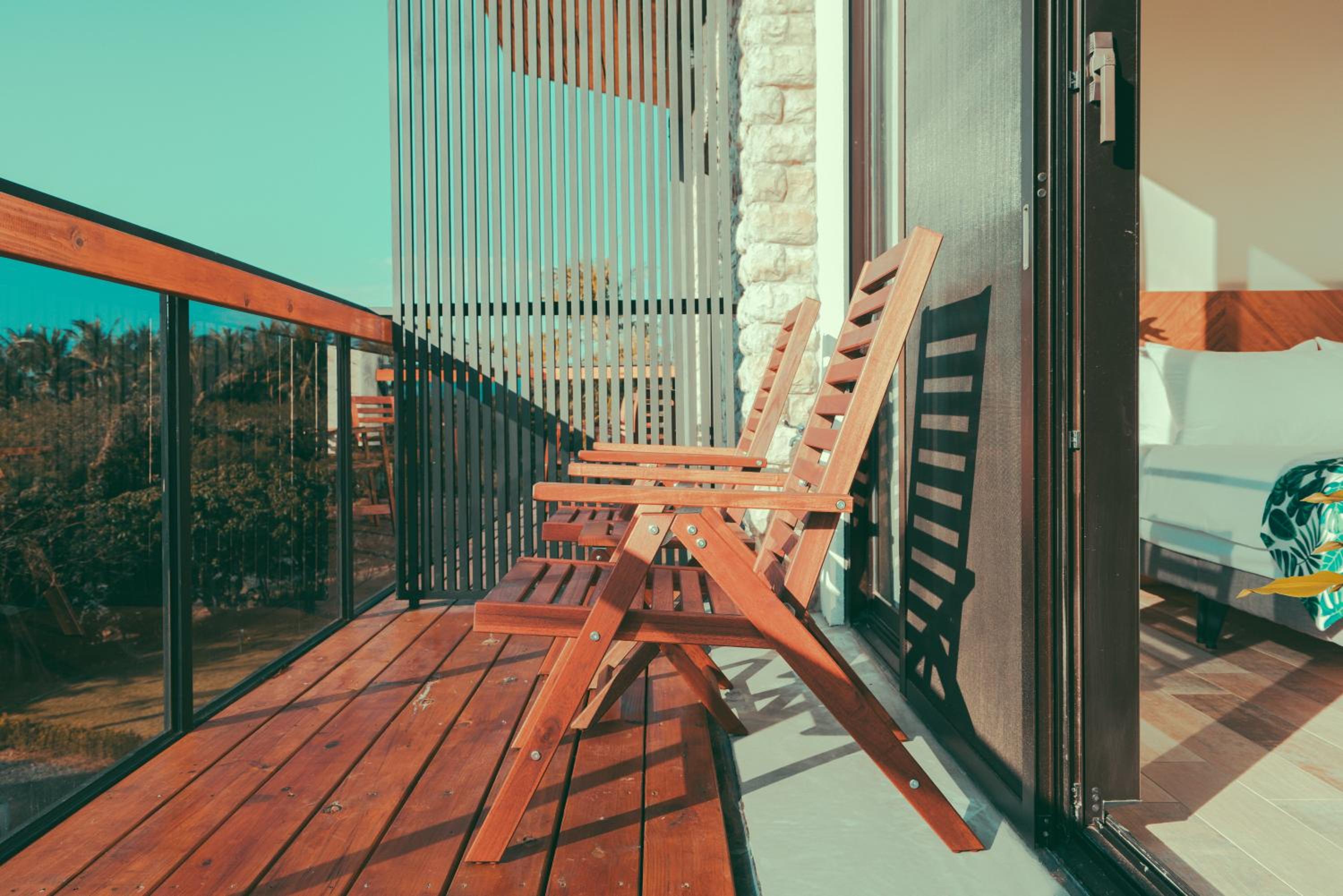 陽台!很舒服!而且離海灘很近!因為那邊沒有開發那麼多,所以人群比較少,很舒服,不會人擠人。早上早起還可以直接走到海邊~早餐好吃!但要開車來比較方便喔!