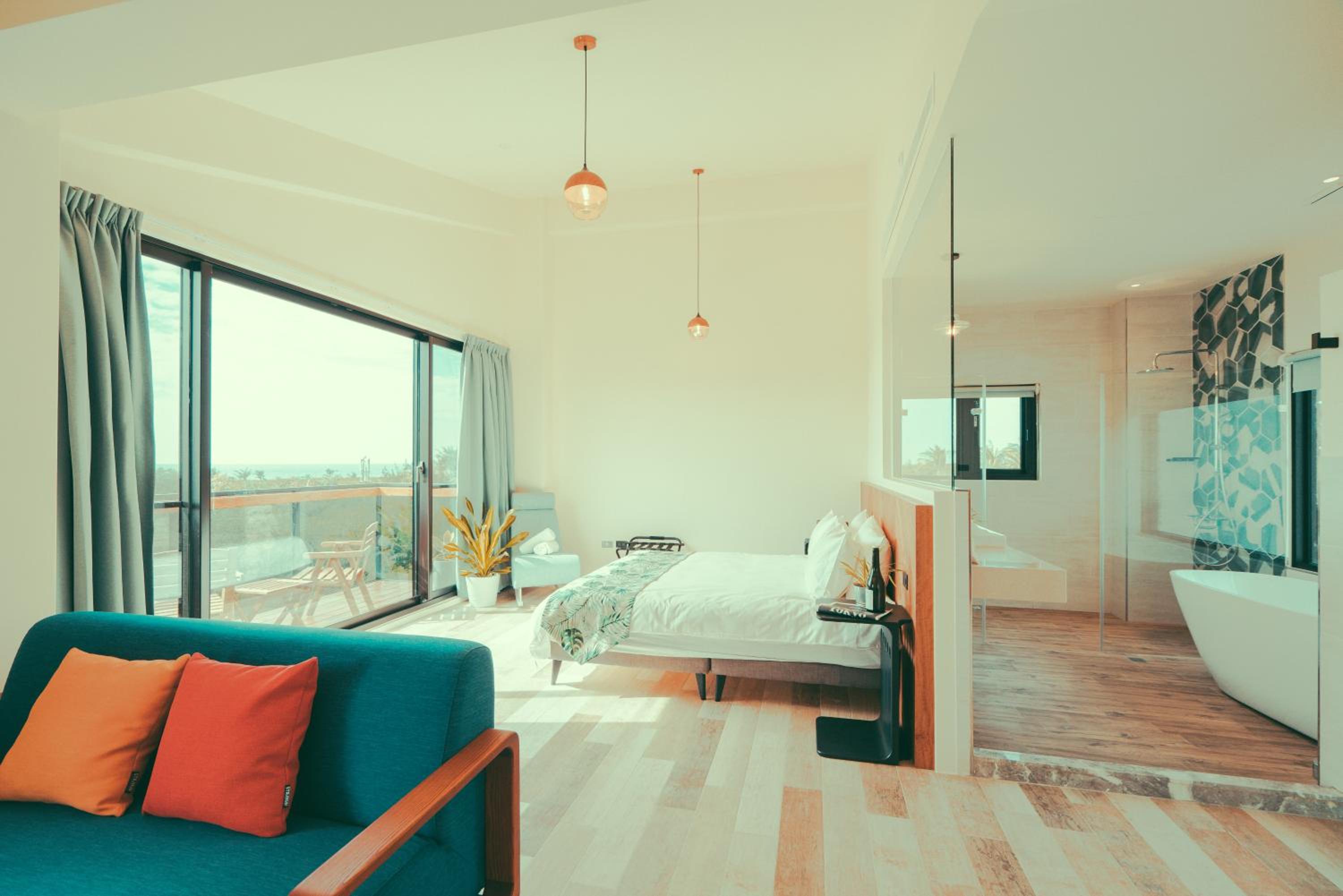 Very clean modern rooms with a view and 2 minute walk from the beach