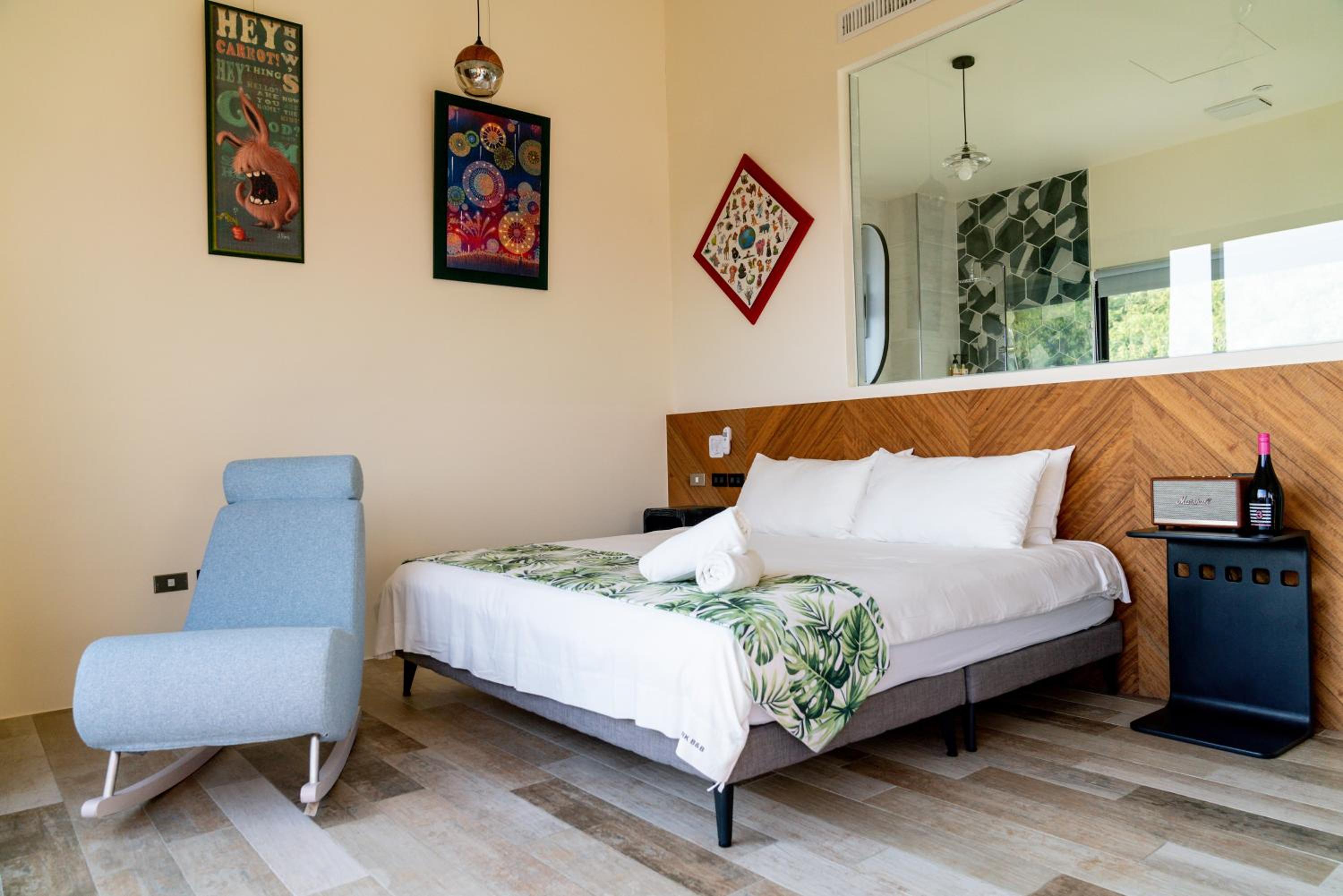 Very nicely designed rooms. Owner very friendly and made extra effort to cater for vegan diet