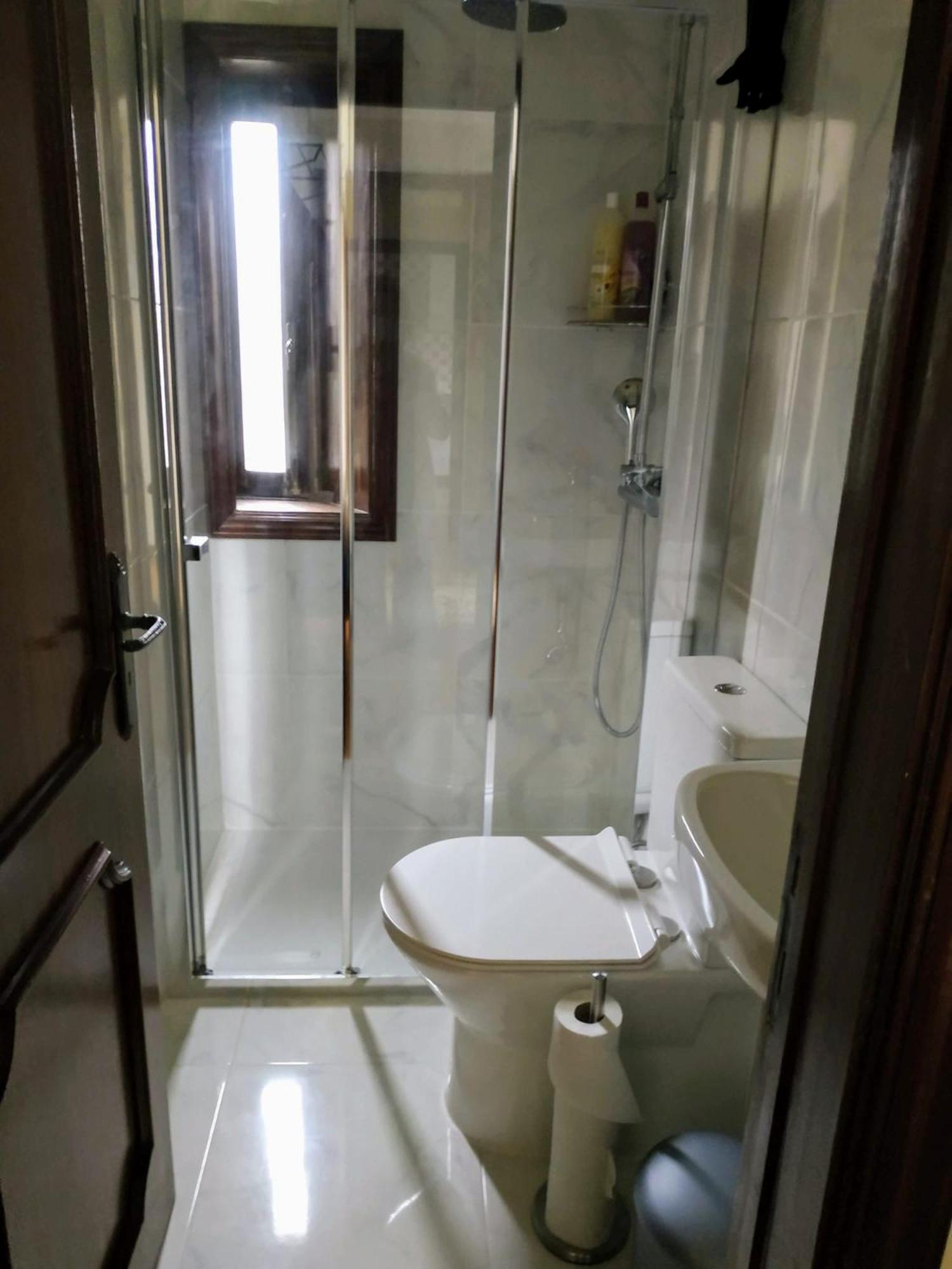 Salle de bain partagée (mais très propre). A ce prix on ne peut pas exiger plus. C'est vraiment très correct.